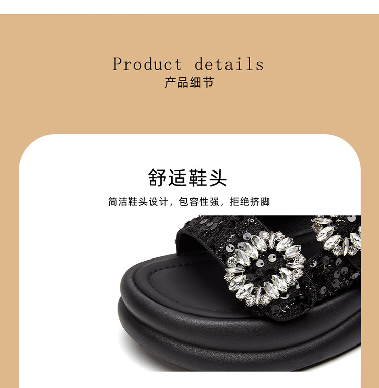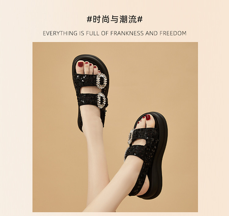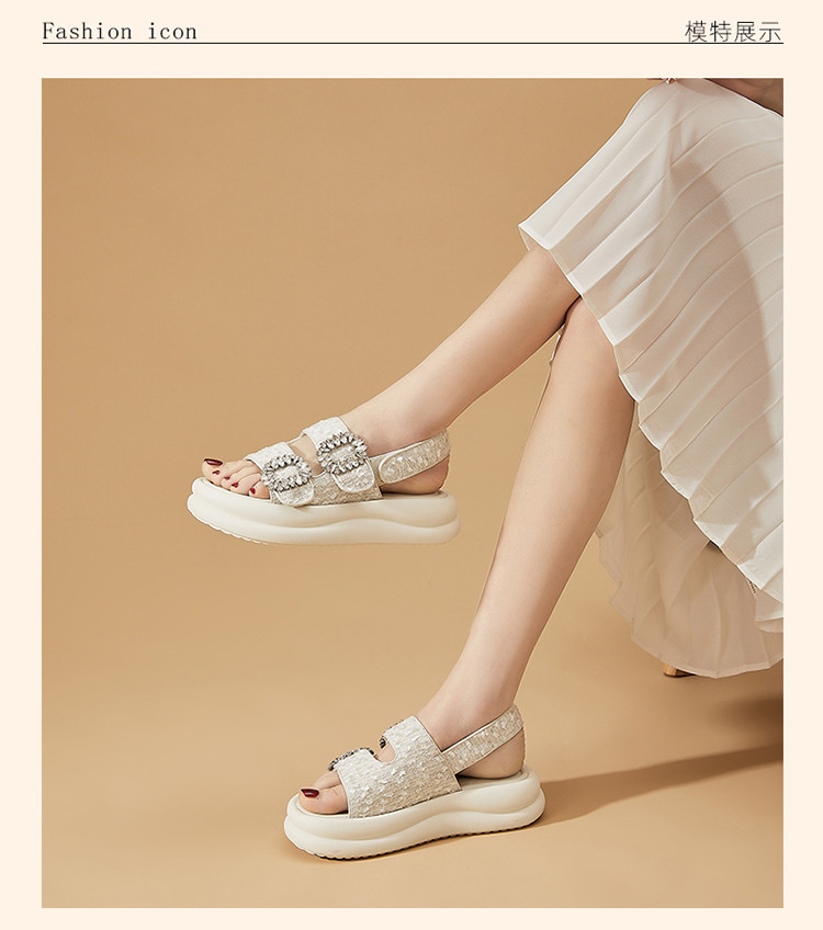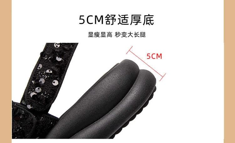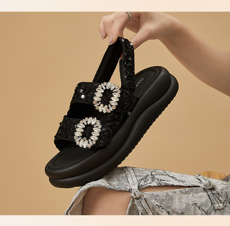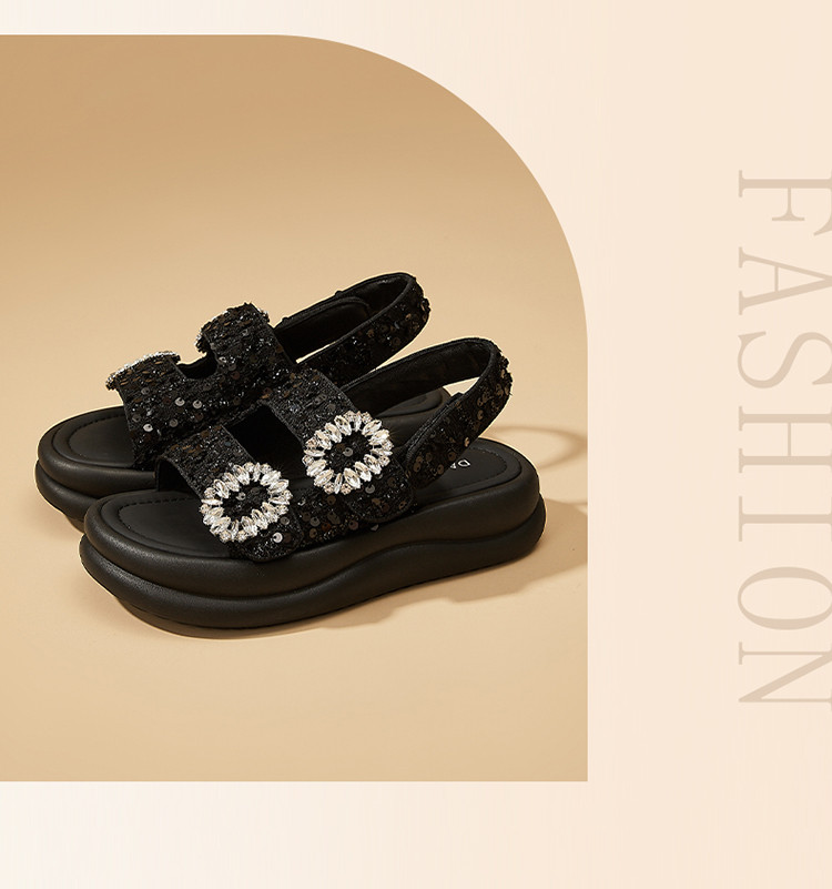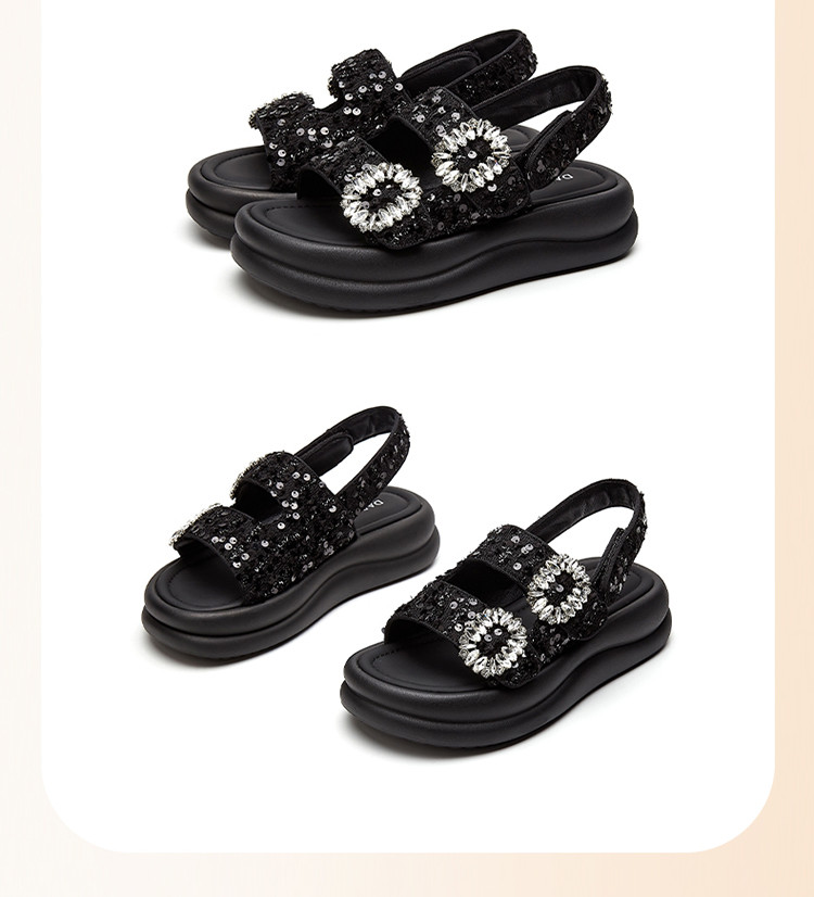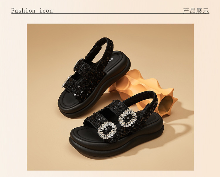 商品名称:2025夏季闪耀水钻亮片设计厚底凉鞋纯色百搭透气魔术贴女鞋 991770