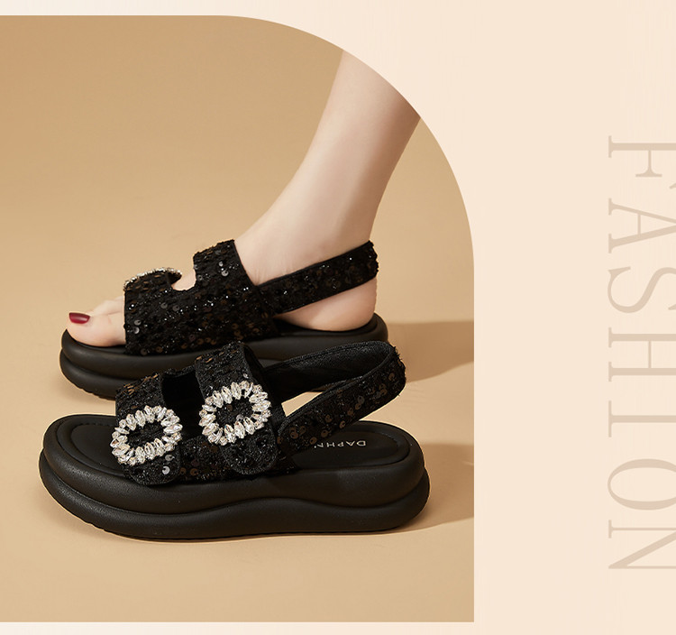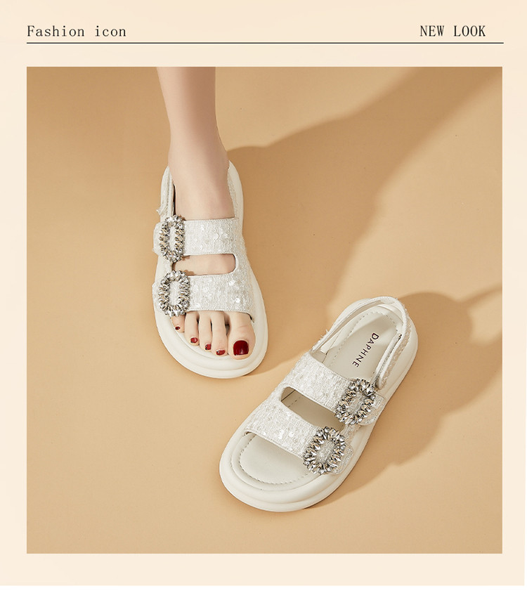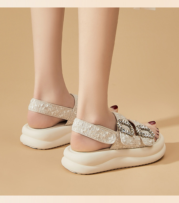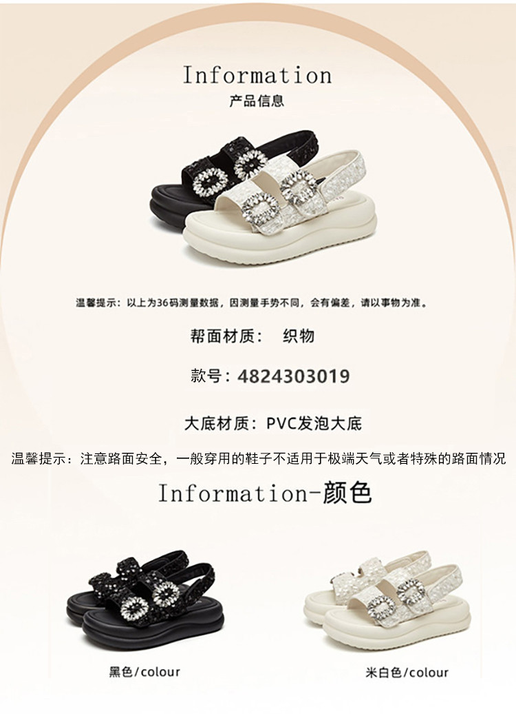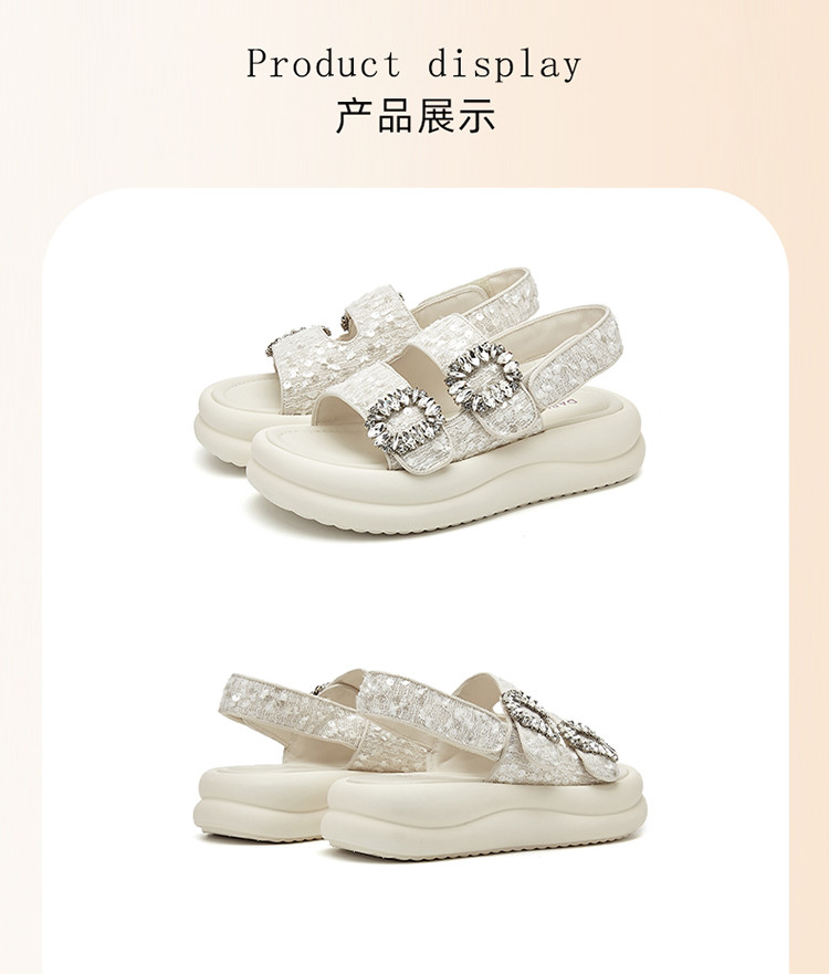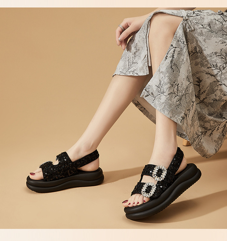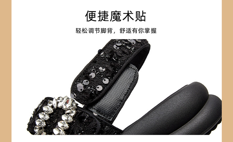 商品名称:2025夏季闪耀水钻亮片设计厚底凉鞋纯色百搭透气魔术贴女鞋 991770