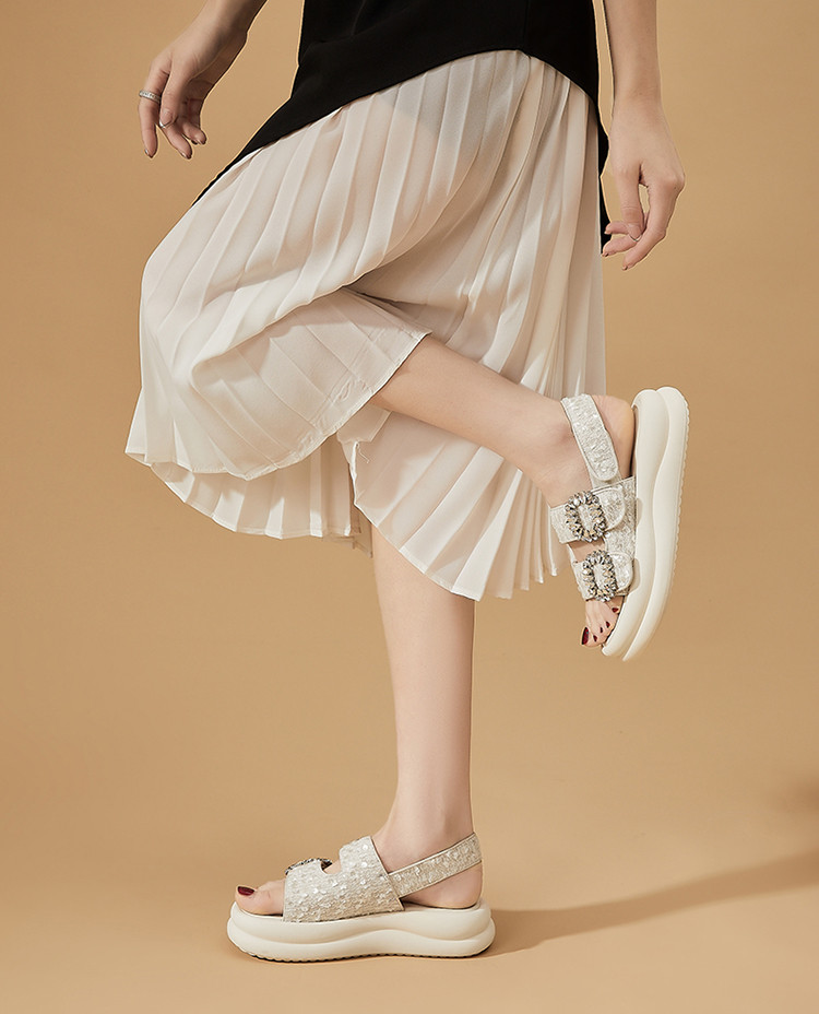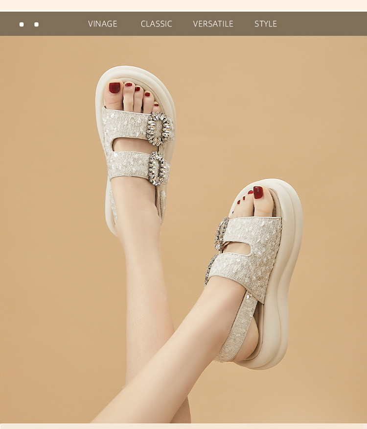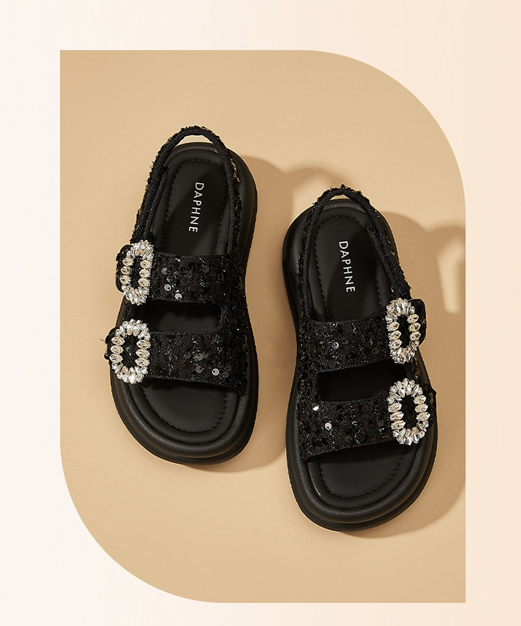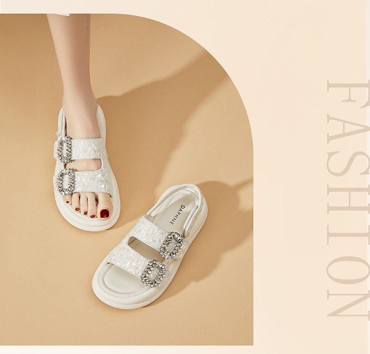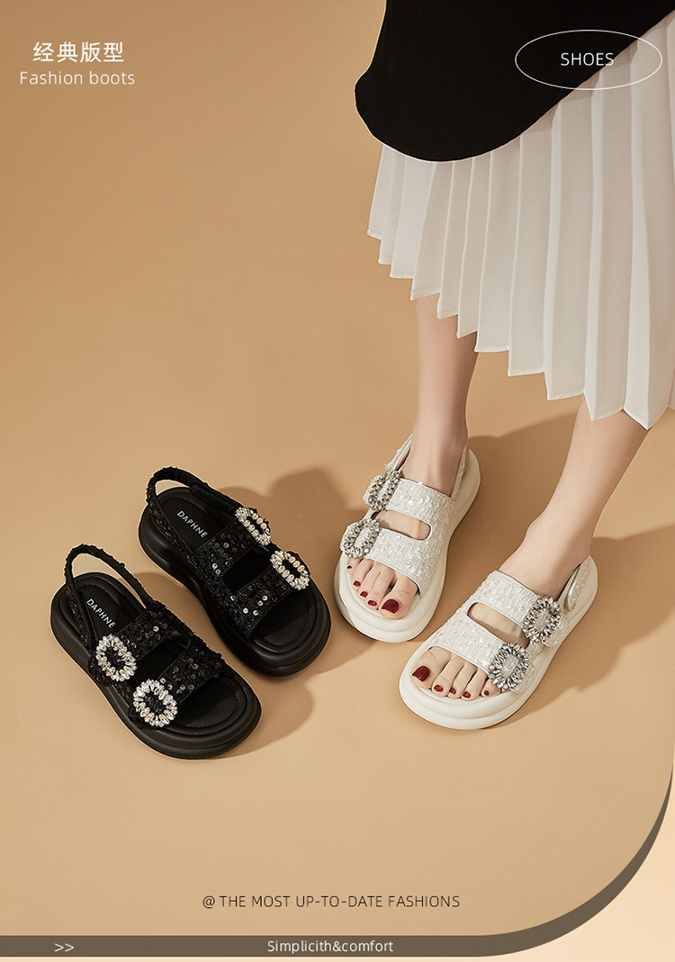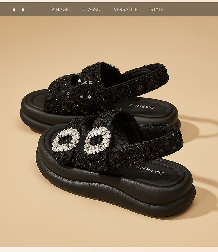 商品名称:2025夏季闪耀水钻亮片设计厚底凉鞋纯色百搭透气魔术贴女鞋 991770