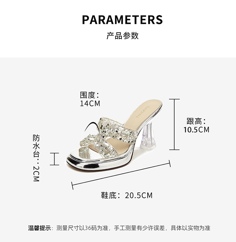 商品名称:【秒增10.5CM】夏季一字拖高跟鞋女款水钻粗跟厚底凉拖鞋子 222167