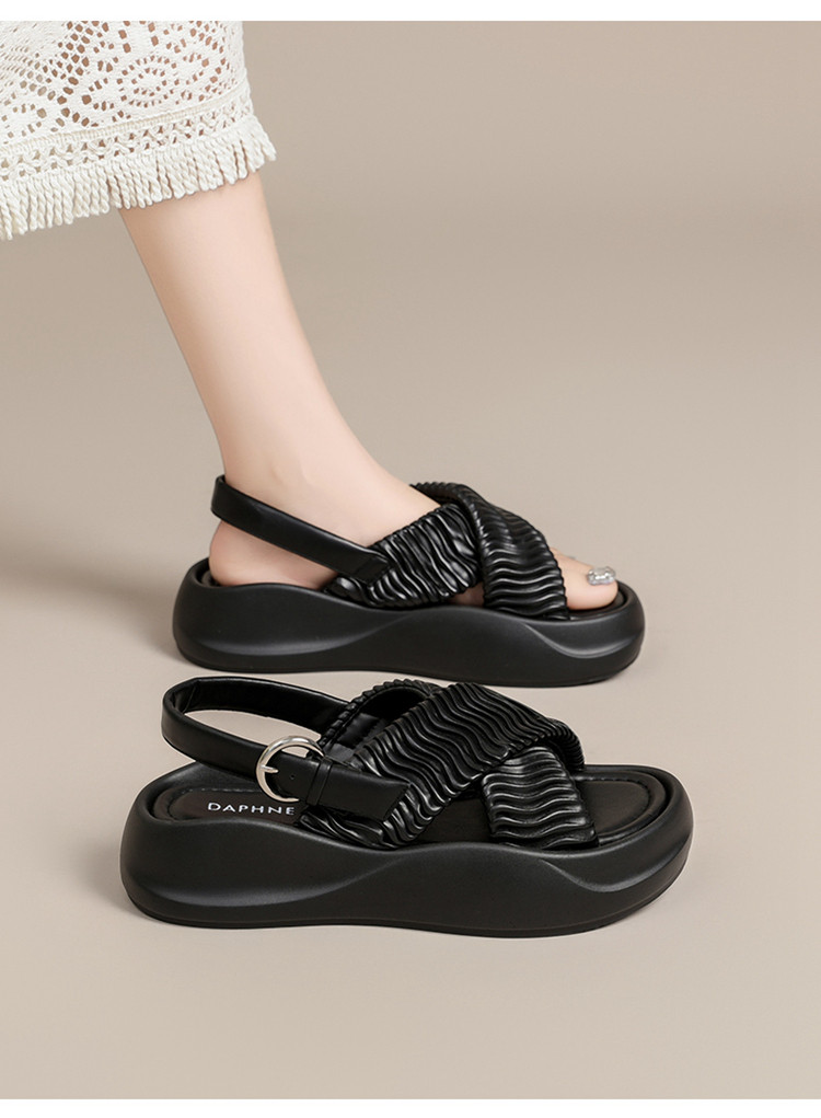 夏季一字带凉鞋女轻便外穿凉拖鞋舒适软底沙滩鞋时装凉鞋厚底鞋 694423