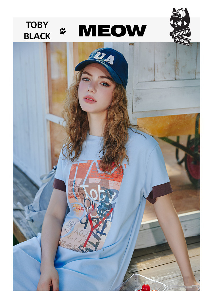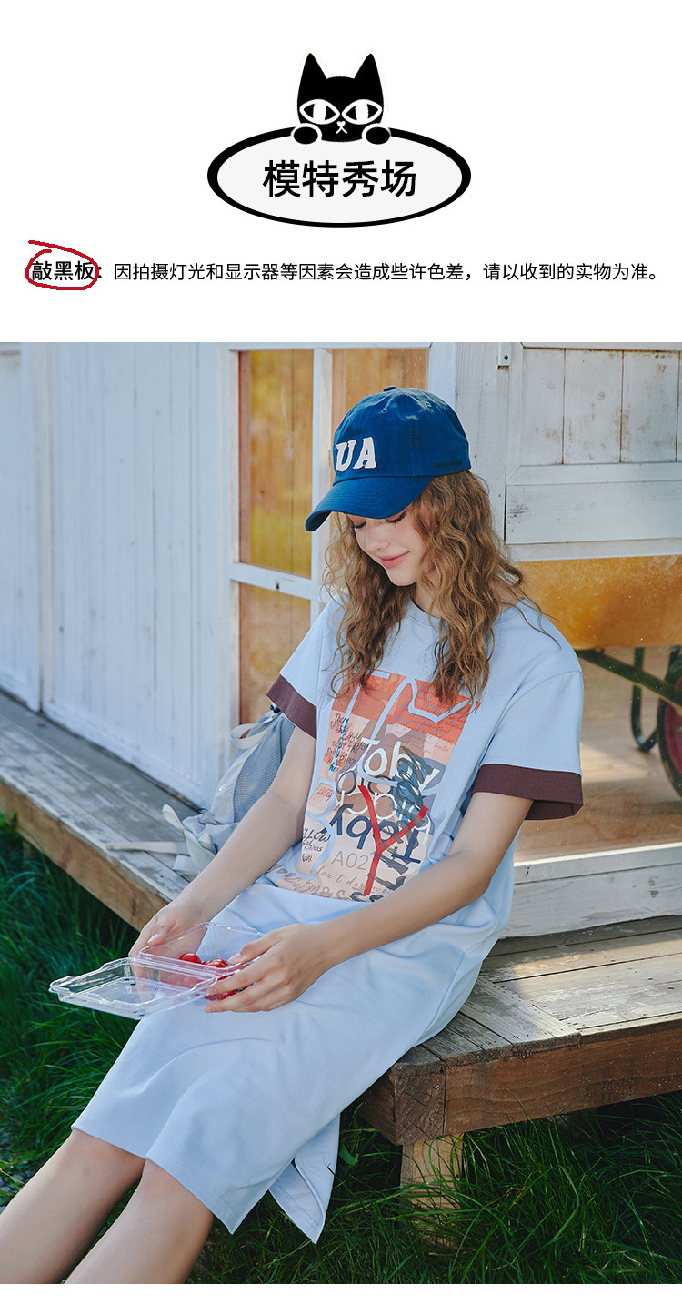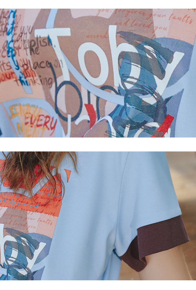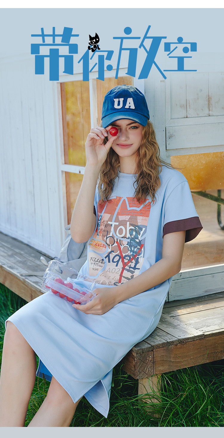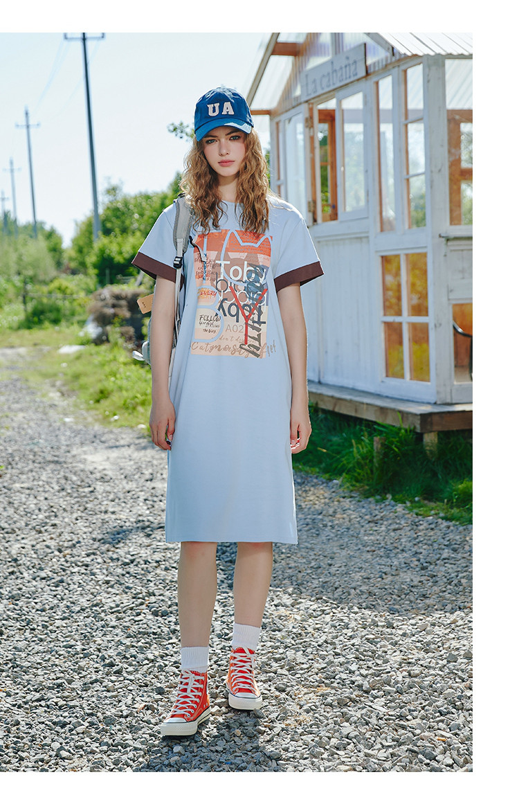 商品名称:美式甜美印花设计短袖宽松T恤裙夏季小清新中款连衣裙 614301