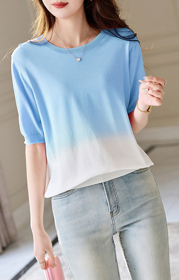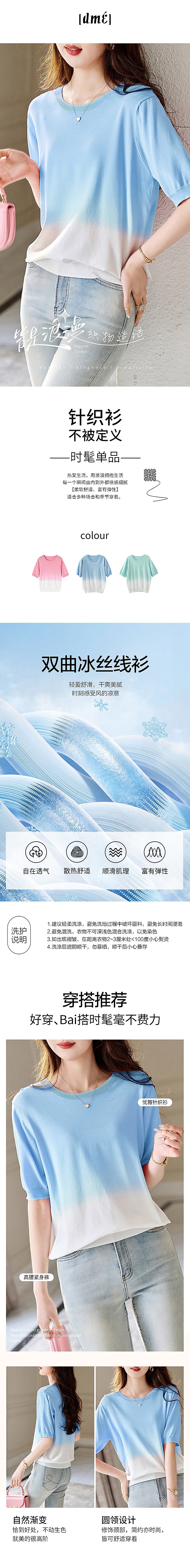 商品名称:【多巴胺少女感】夏季甄选冰麻线衫慵懒自然渐变松弛针织衫女上衣 054977
