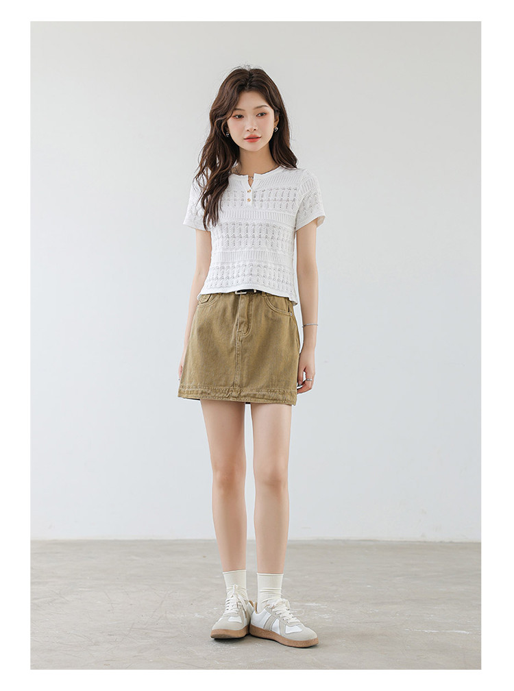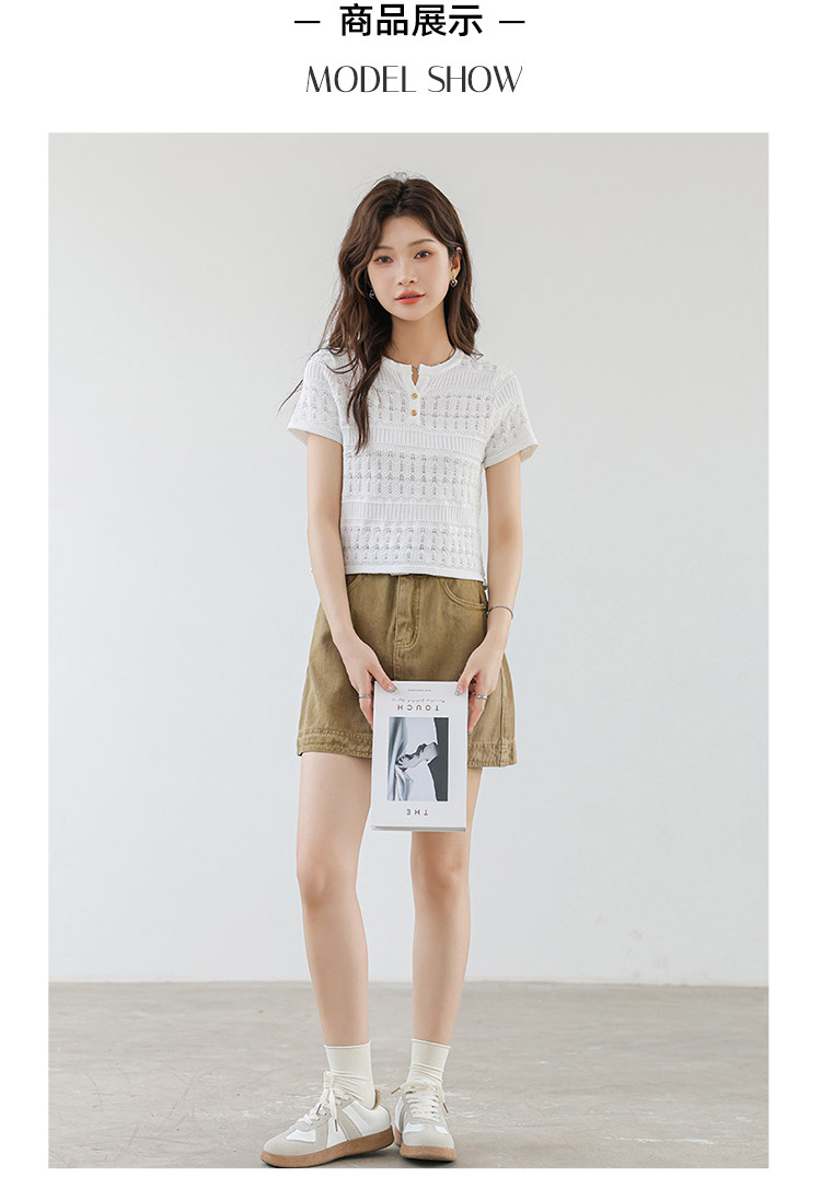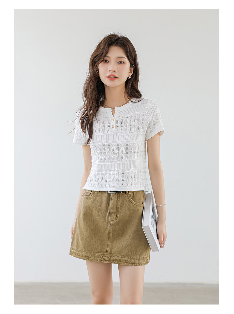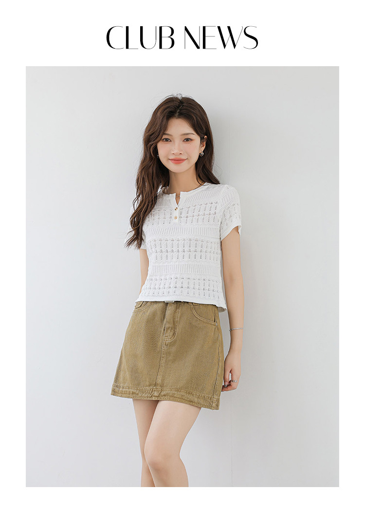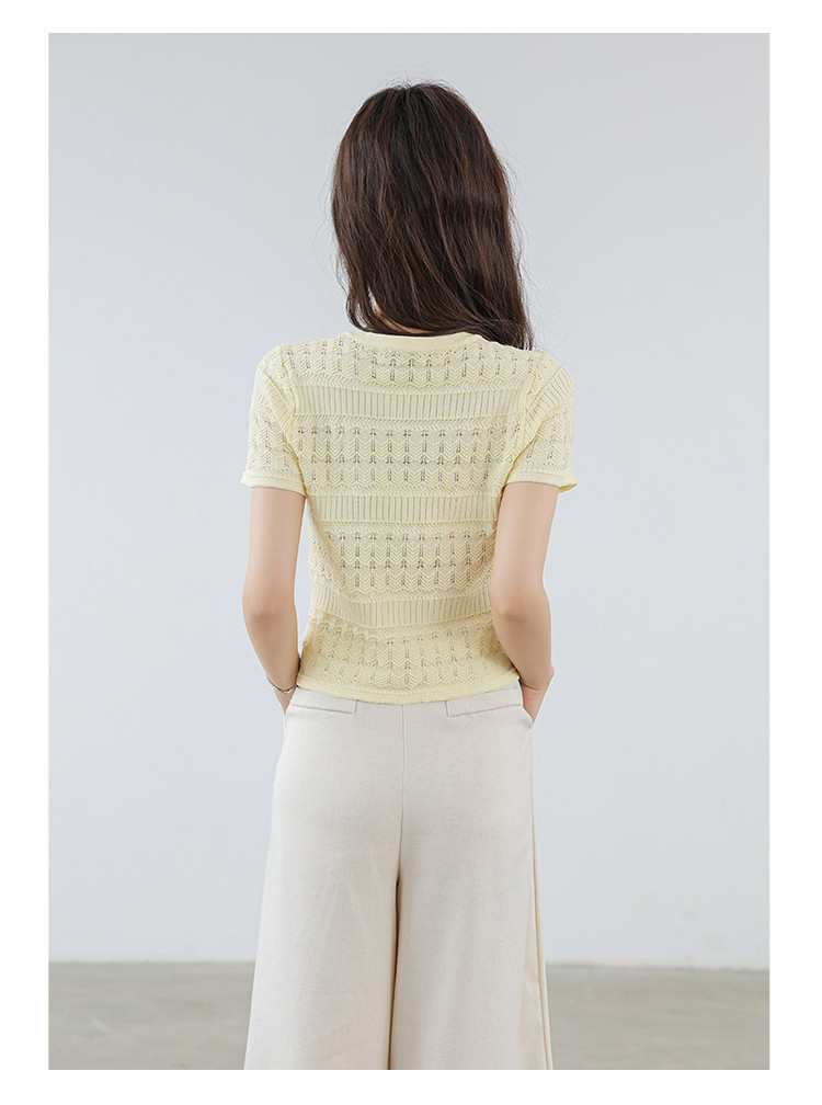 商品名称:法式镂空冰丝针织短袖法式高级小众设计款小金扣上衣女 191811