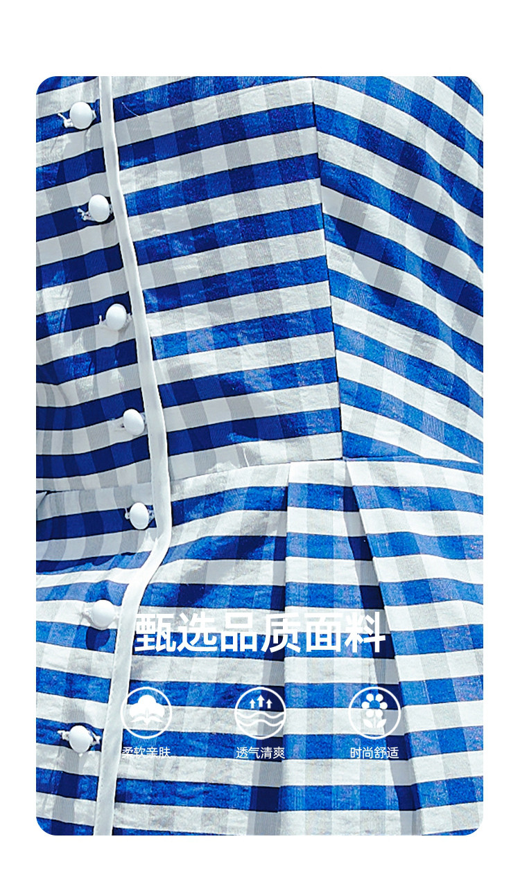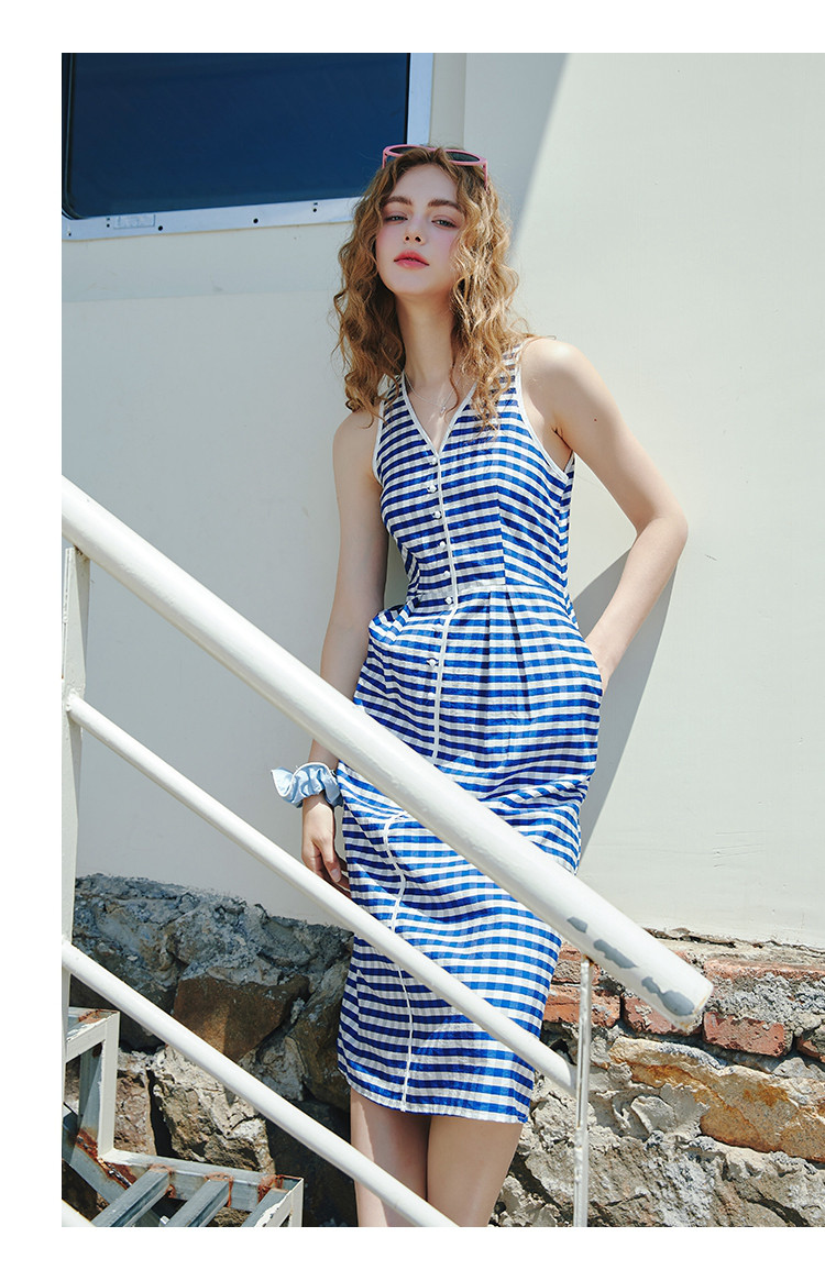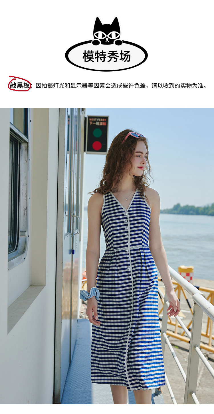 商品名称:时髦复古度假撞色格子气质V领背心裙夏季休闲无袖连衣裙 290589