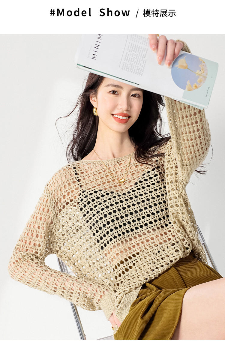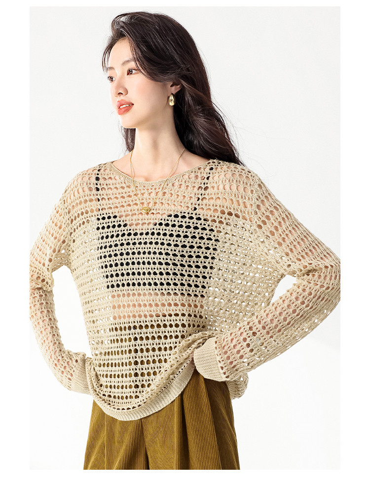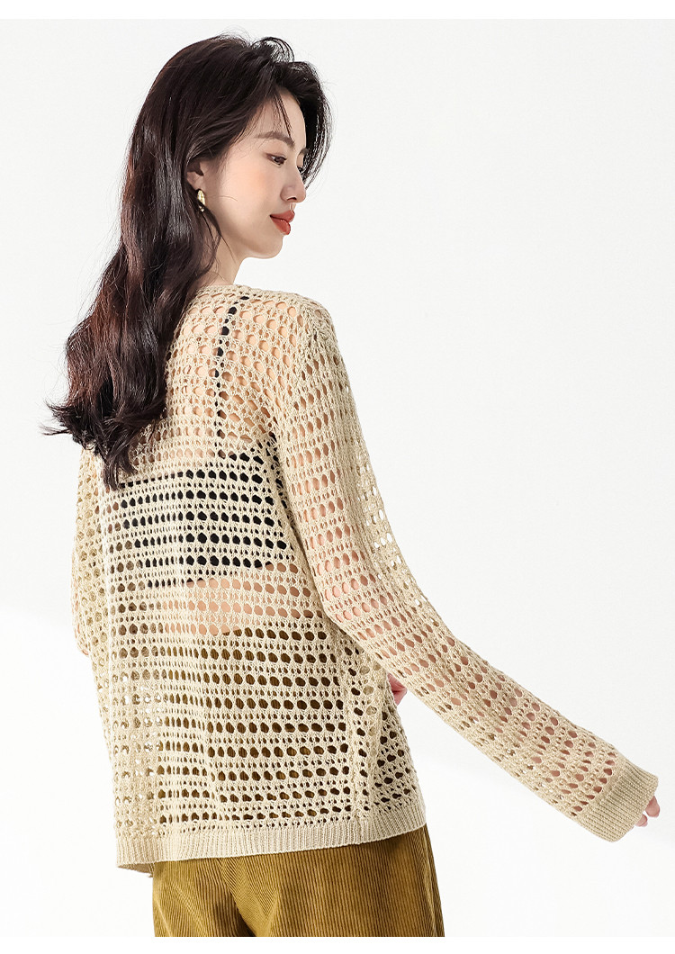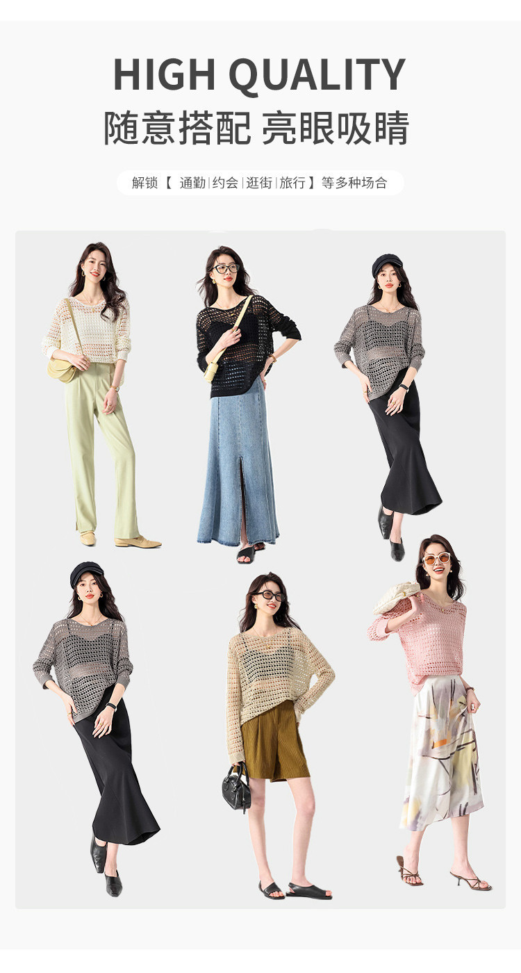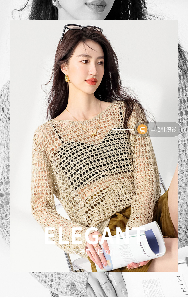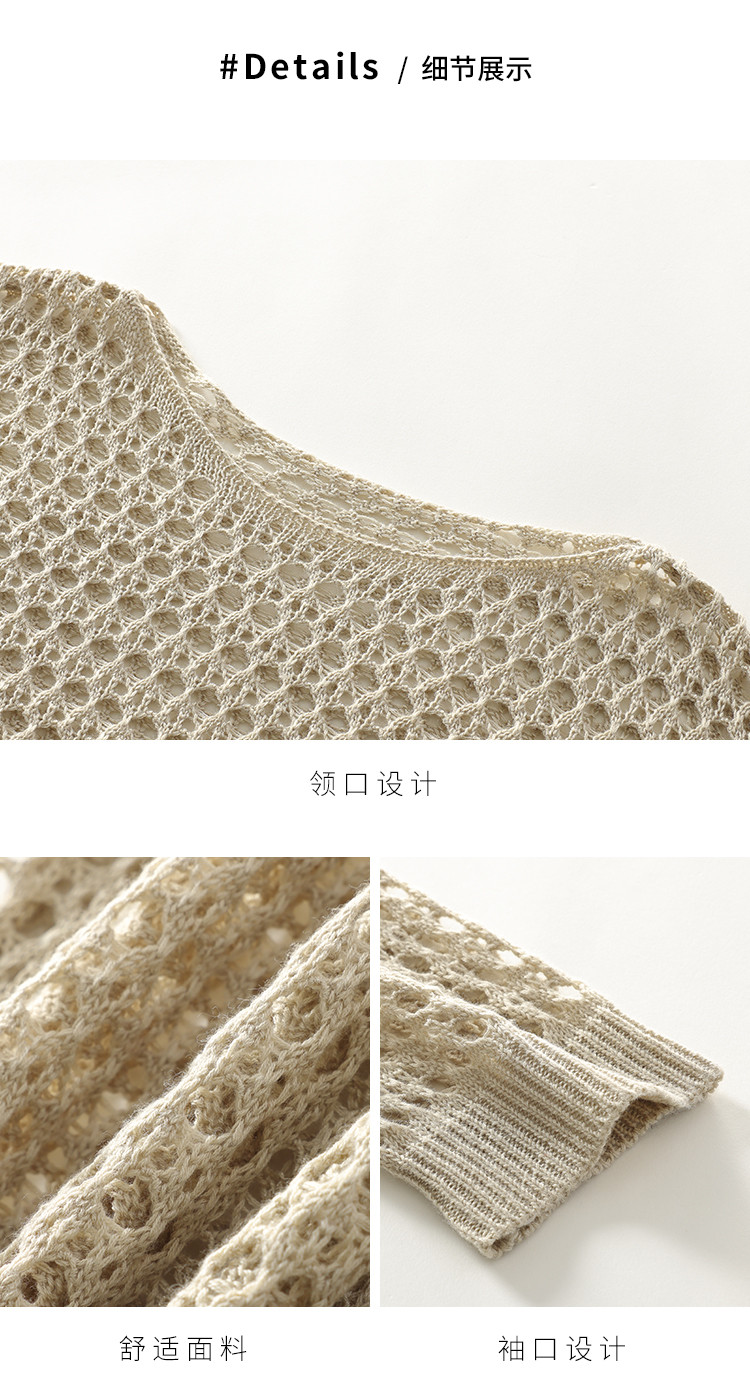 商品名称:轻薄透气网眼镂空纯色圆领长袖羊毛针织衫毛衣罩衫空调衫夏款T恤 706195