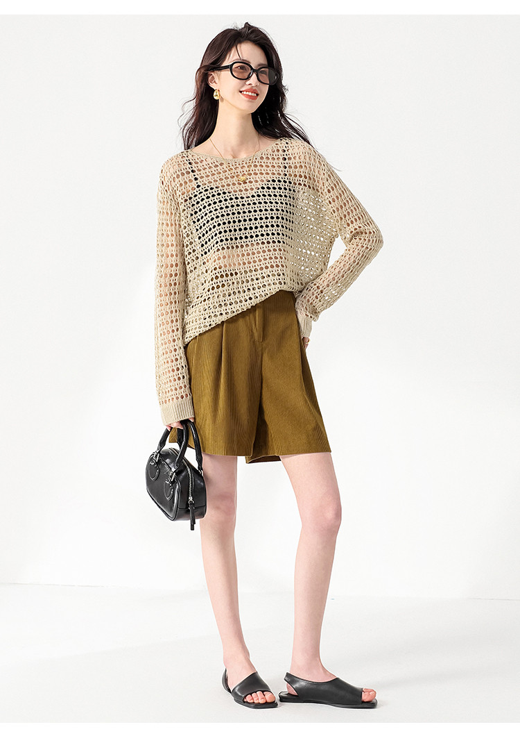 轻薄透气网眼镂空纯色圆领长袖羊毛针织衫毛衣罩衫空调衫夏款T恤 706195