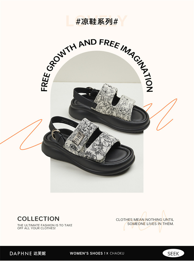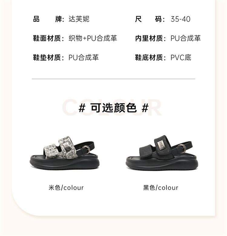 商品名称:【舒适透气】夏季厚底运动凉鞋沙滩凉鞋百搭复古踩屎感女鞋 176410