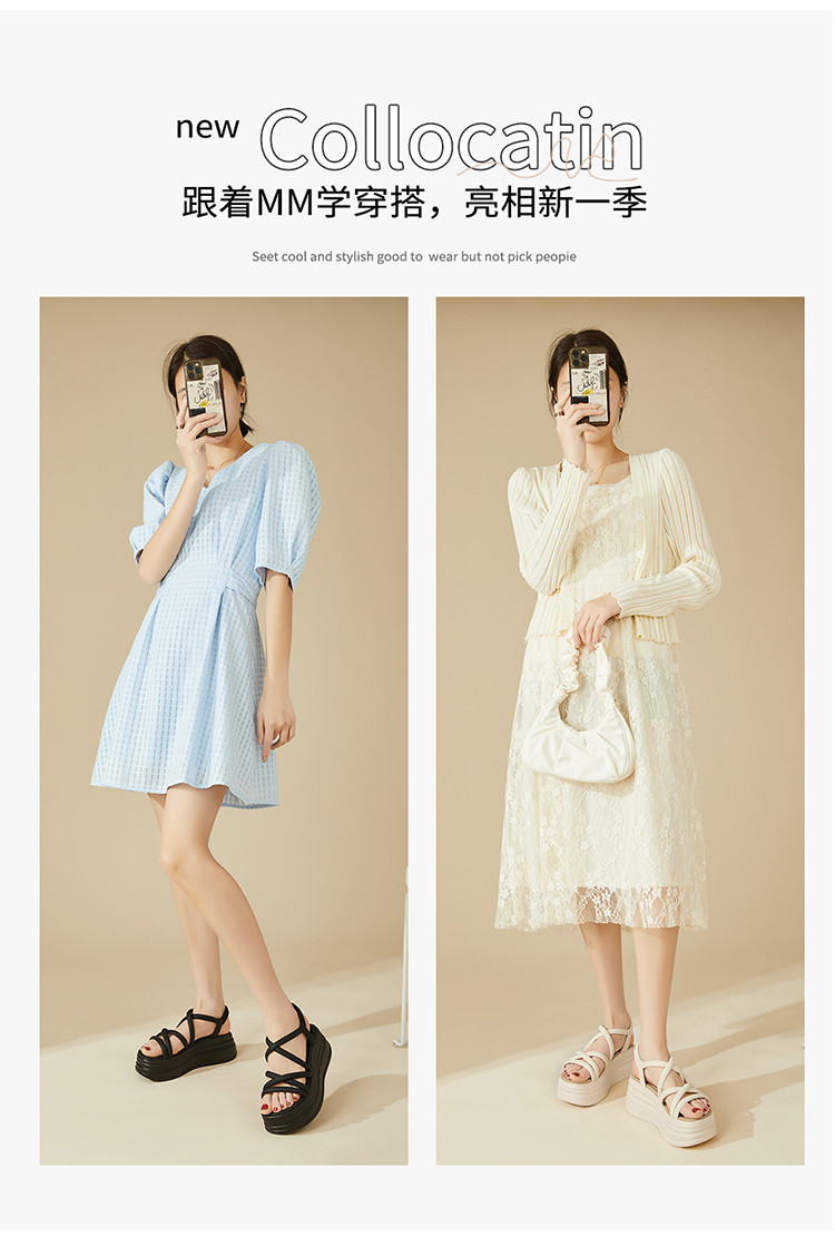 【秒增7.2CM】夏季一字带凉鞋女罗马凉鞋轻便沙滩凉鞋女鞋 630039