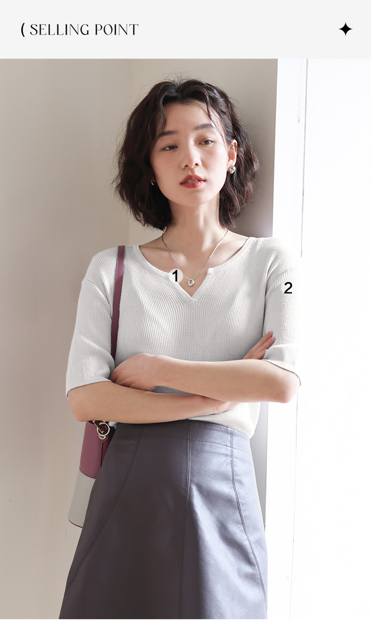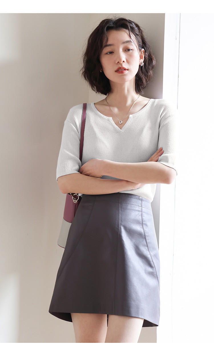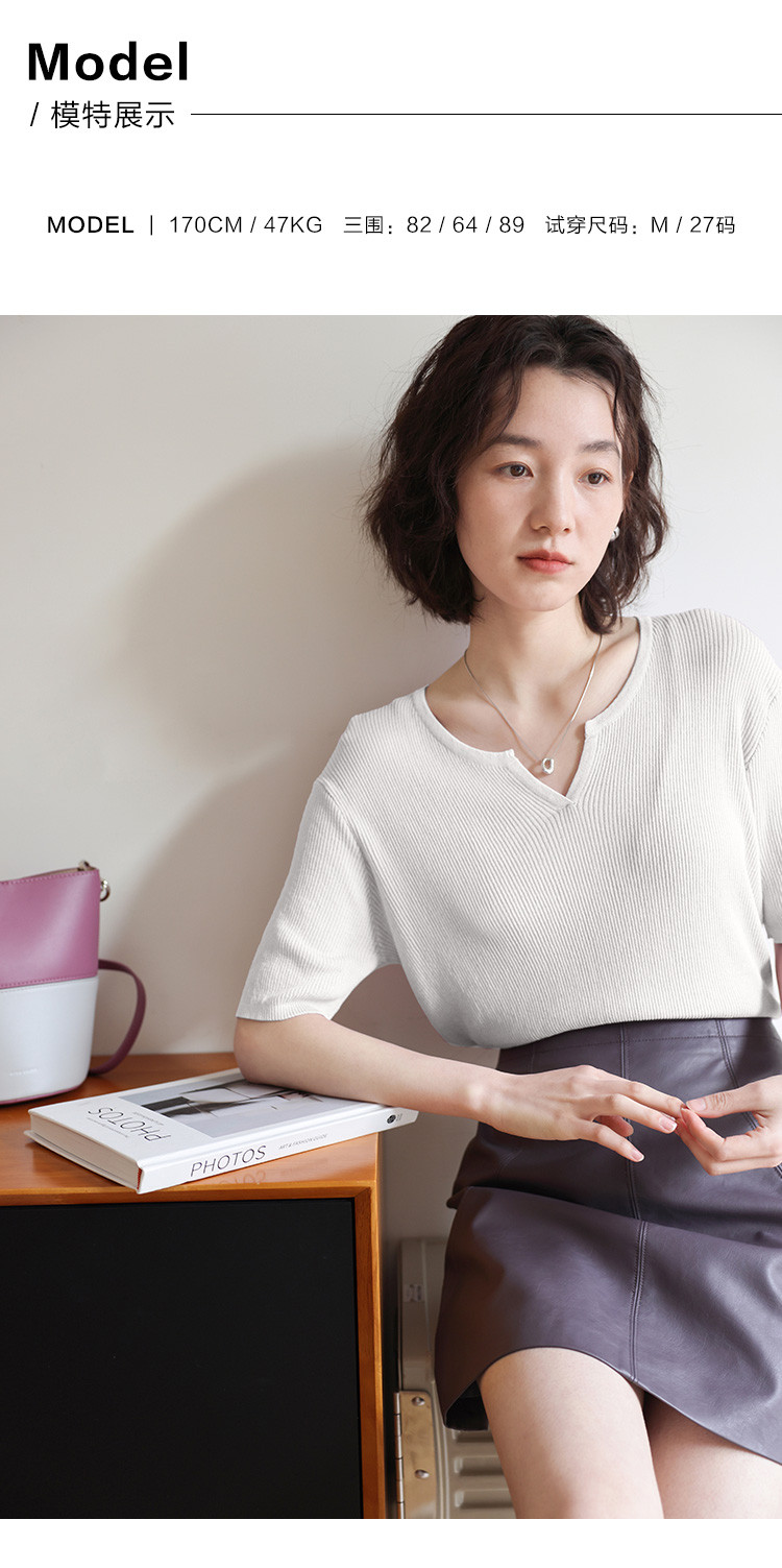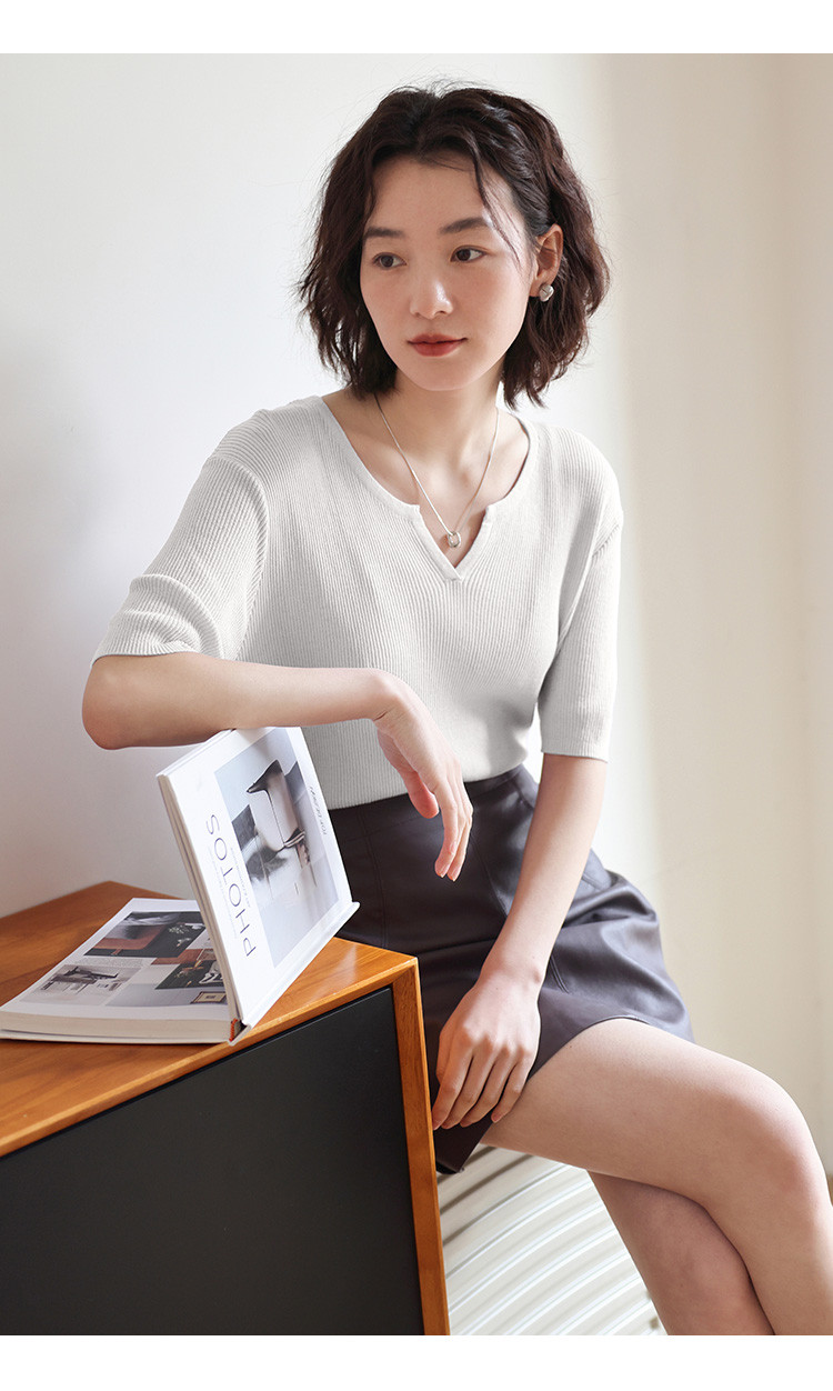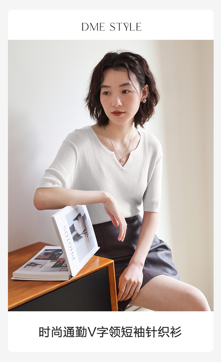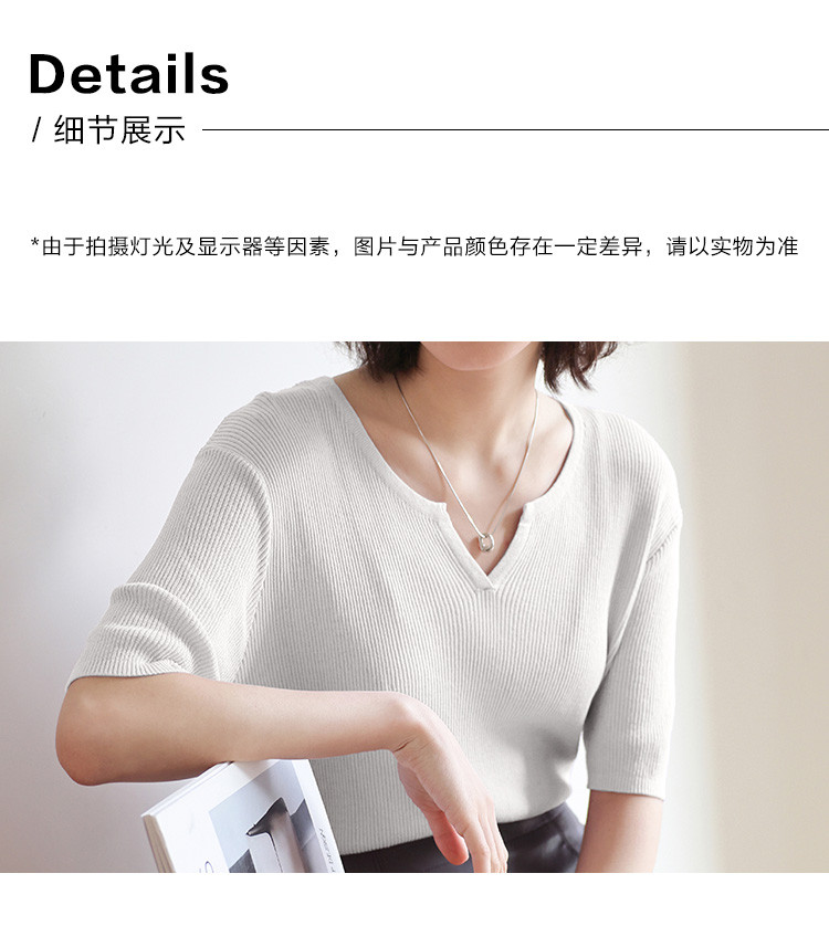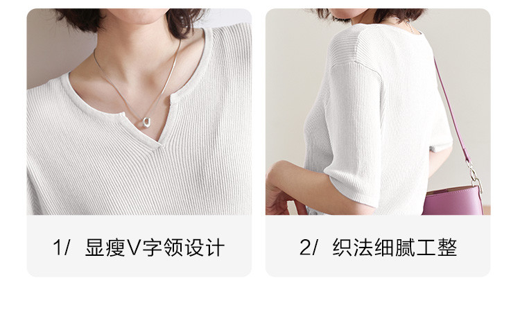商品名称:【优雅气质针织衫】夏款基础V领短袖套头针织衫女 076354