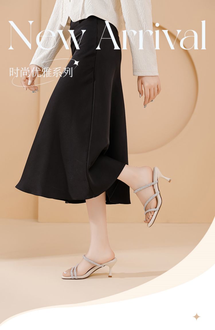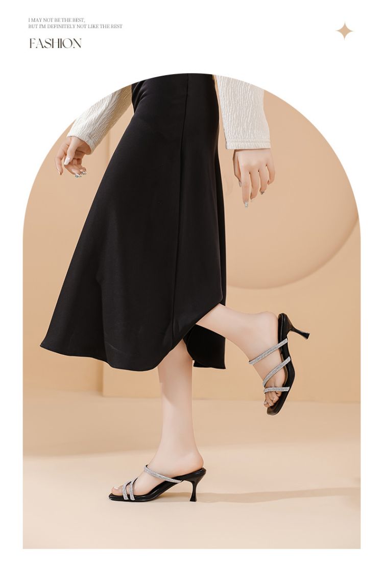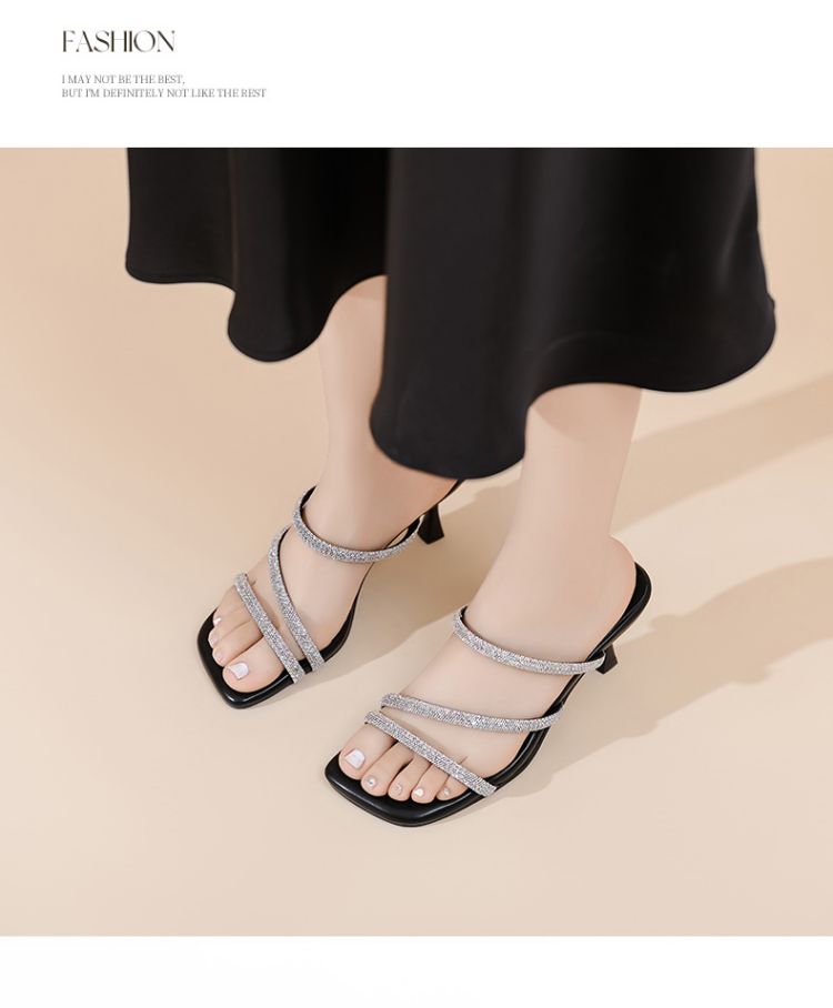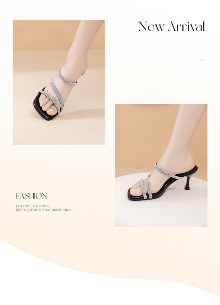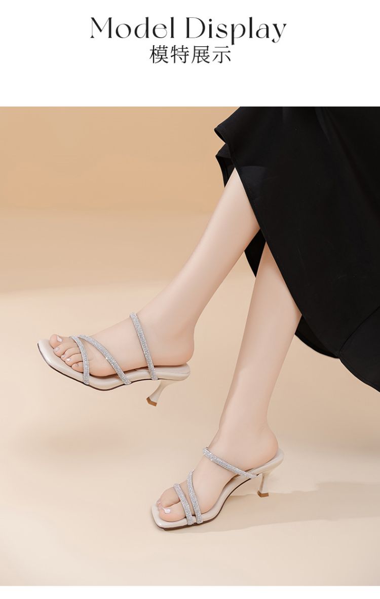 水钻高跟拖鞋女外穿高跟凉鞋女细闪带钻增高显瘦女鞋 835930