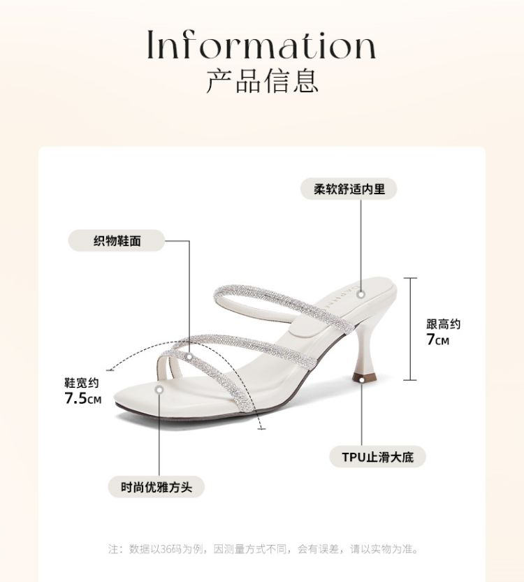 商品名称:水钻高跟拖鞋女外穿高跟凉鞋女细闪带钻增高显瘦女鞋 835930