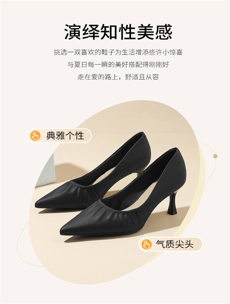 夏季气质高跟鞋女一脚蹬细跟时尚单鞋职场通勤鞋深口百搭时装鞋 685335