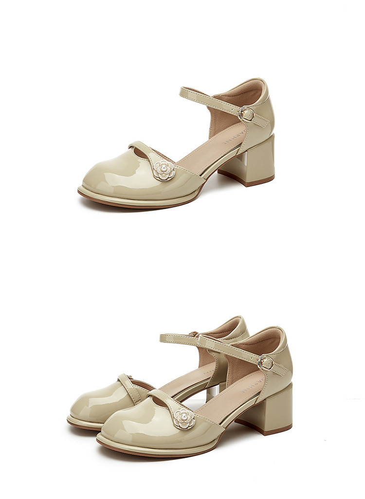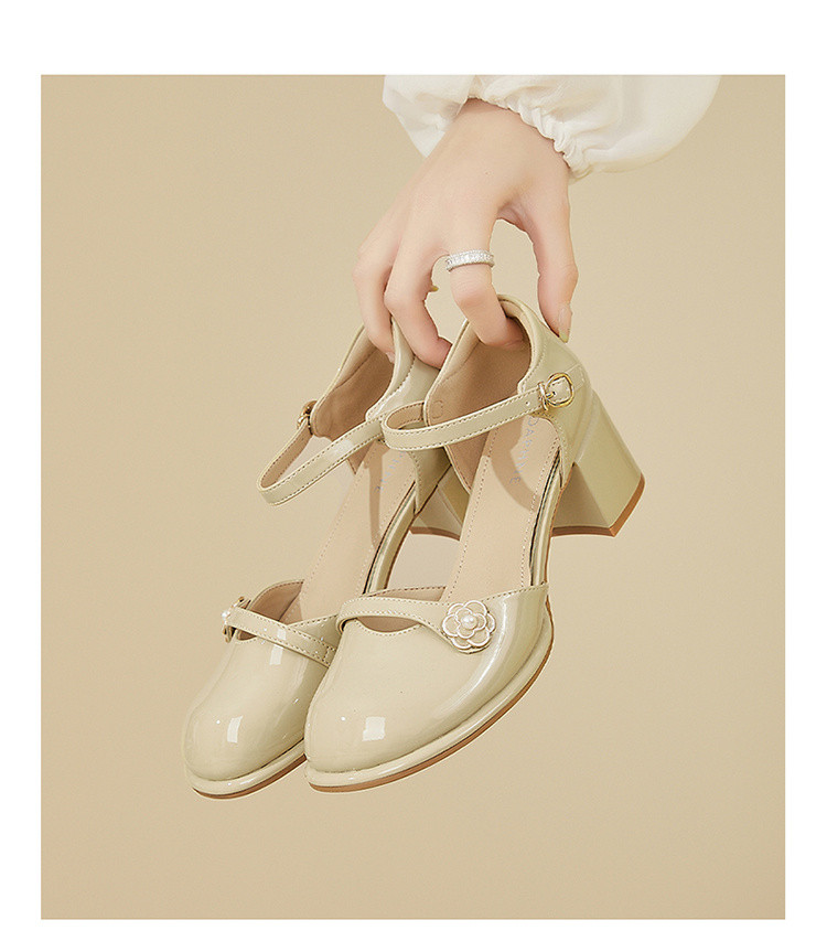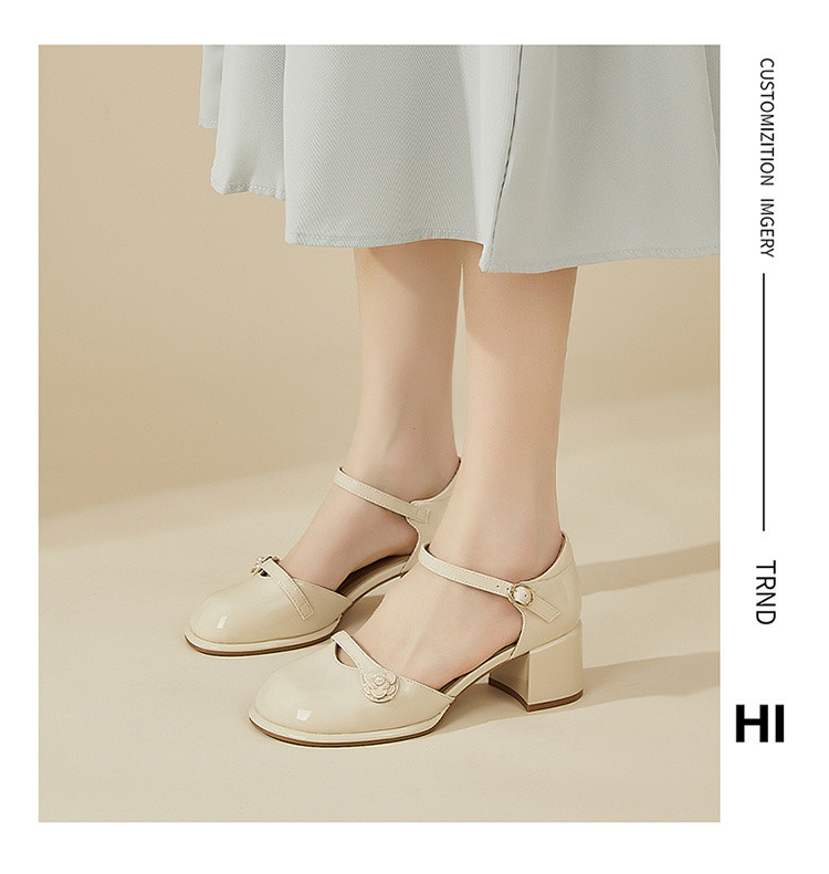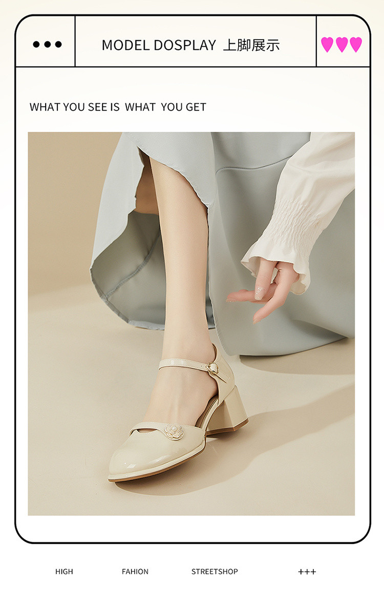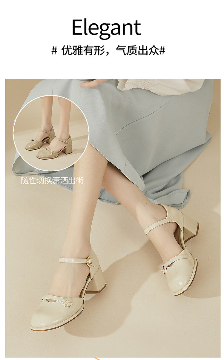 【秒增5CM】春夏凉鞋女粗跟圆头单鞋一字带中空女士单鞋女鞋 199386