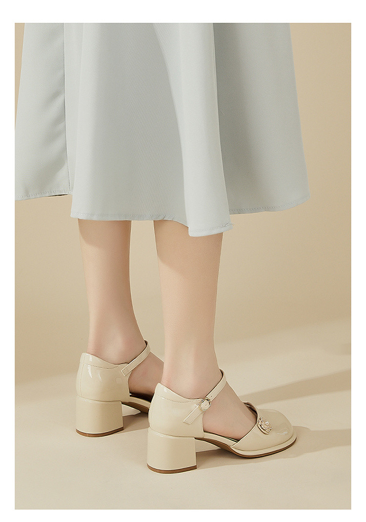 商品名称:【秒增5CM】春夏凉鞋女粗跟圆头单鞋一字带中空女士单鞋女鞋 199386