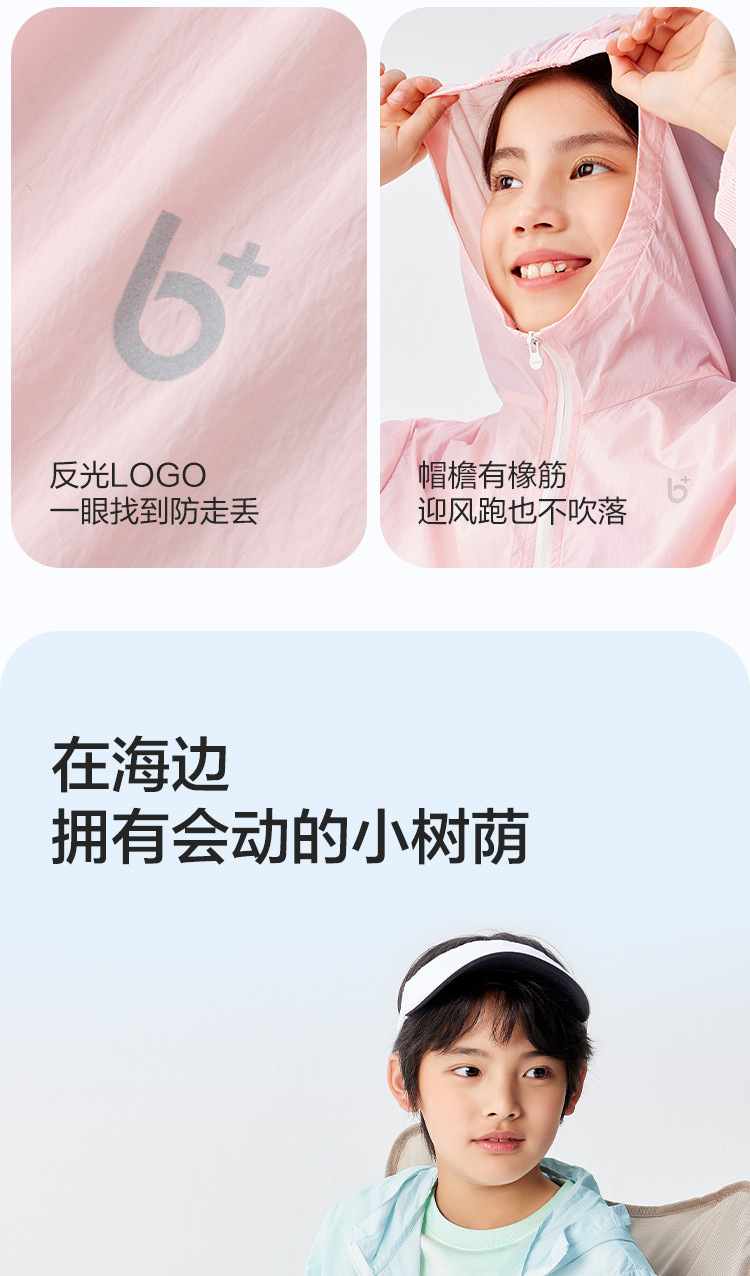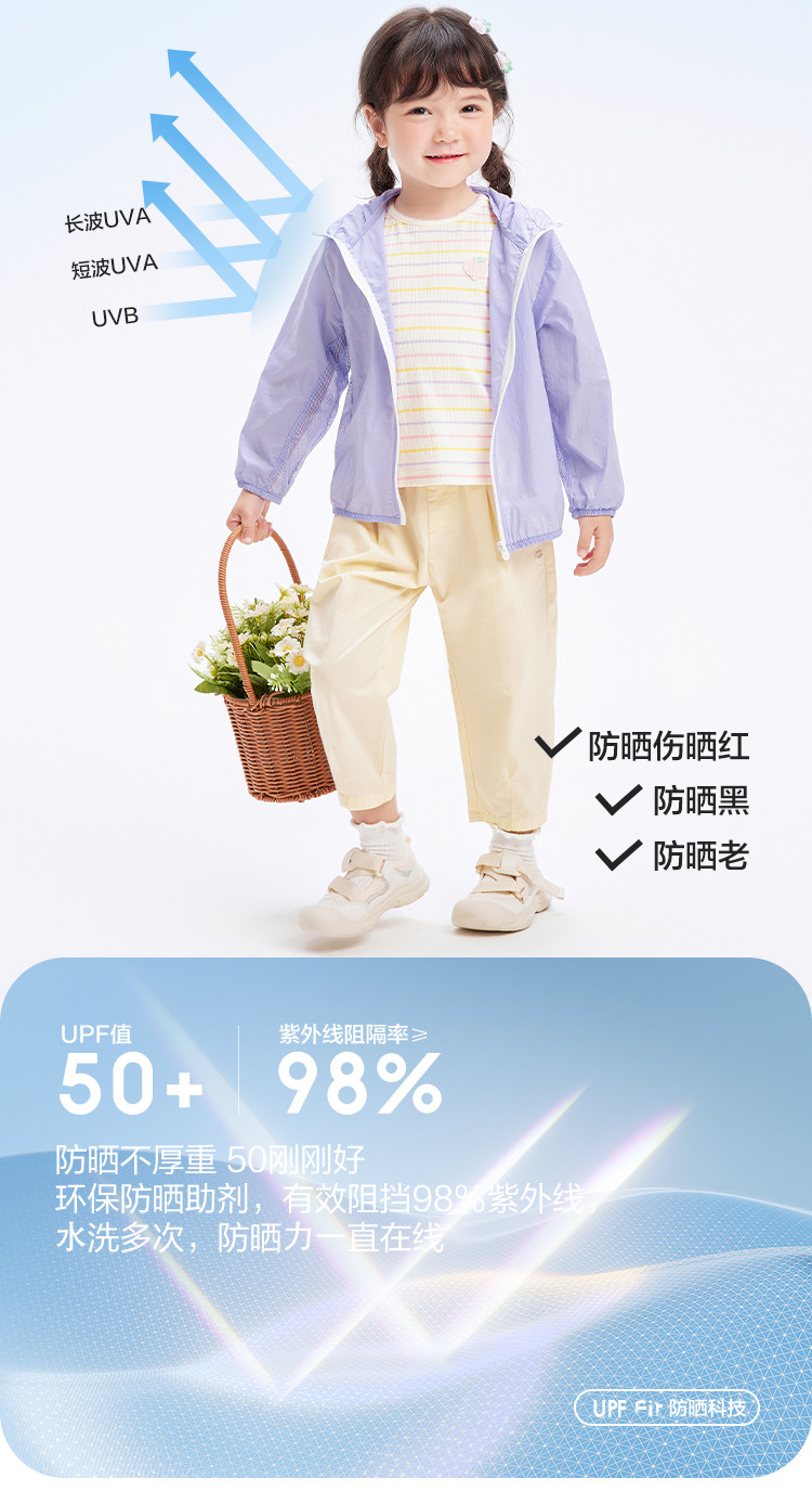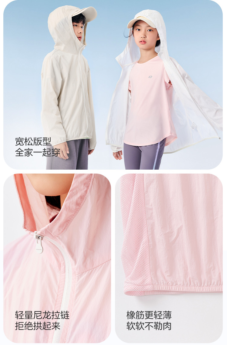 UPF50+亲子款儿童防晒服男童女童夏装连帽外套简约百搭舒适 901253