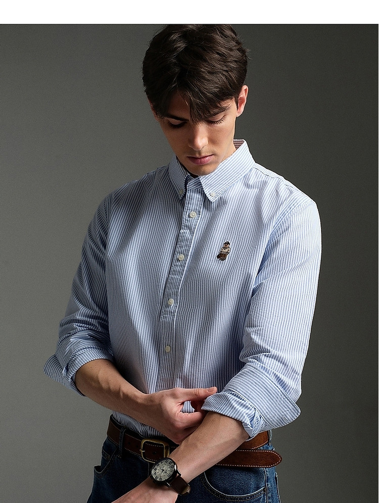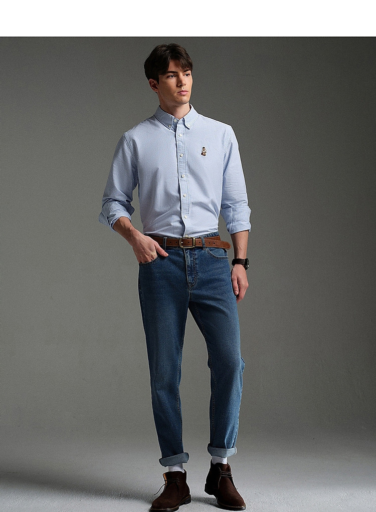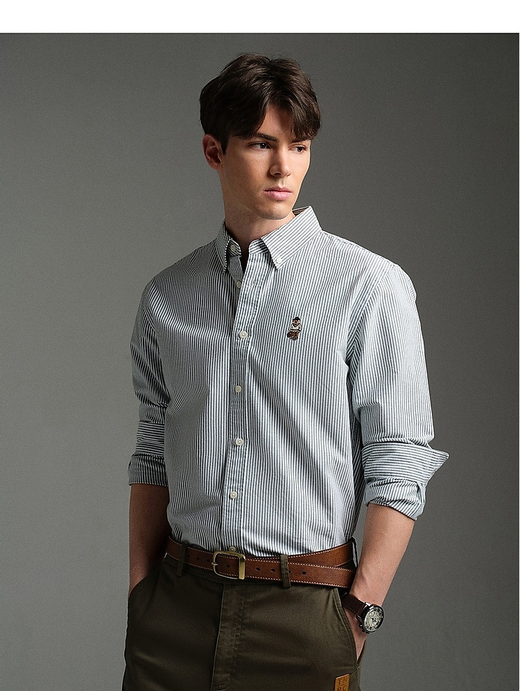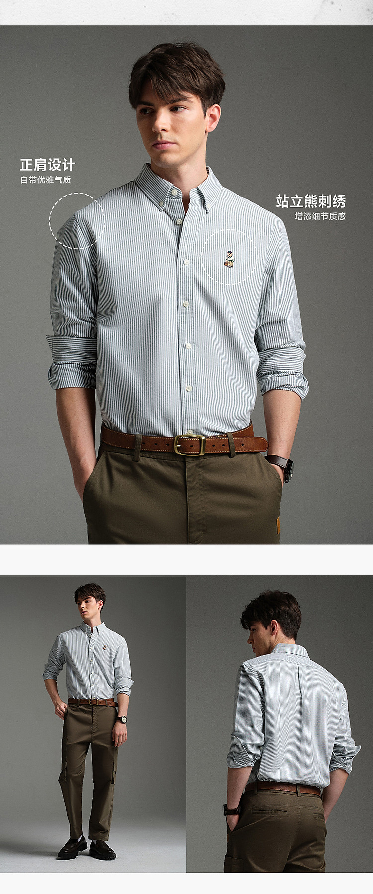 【牛津纺】衬衣男长袖衬衫春秋款文艺复古卡通刺绣衬衫男式衬衫 970049