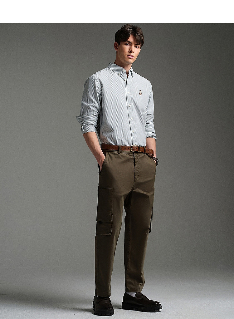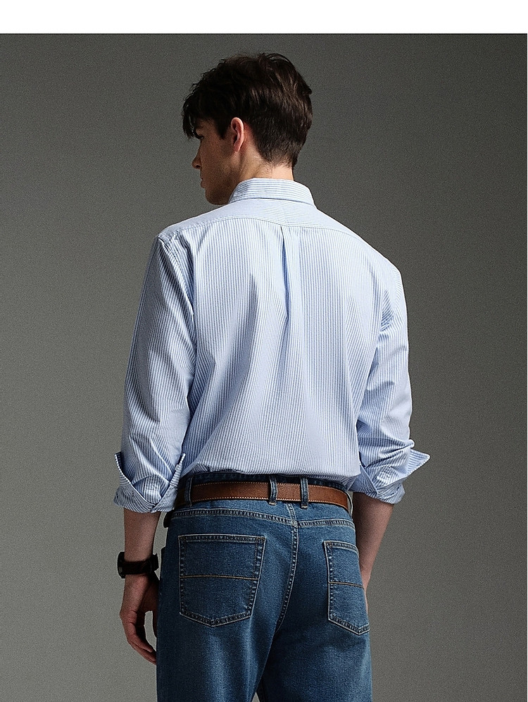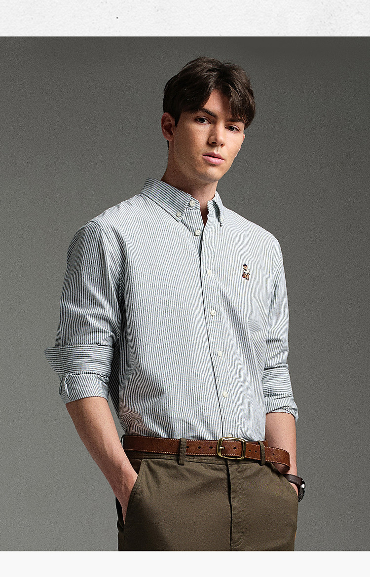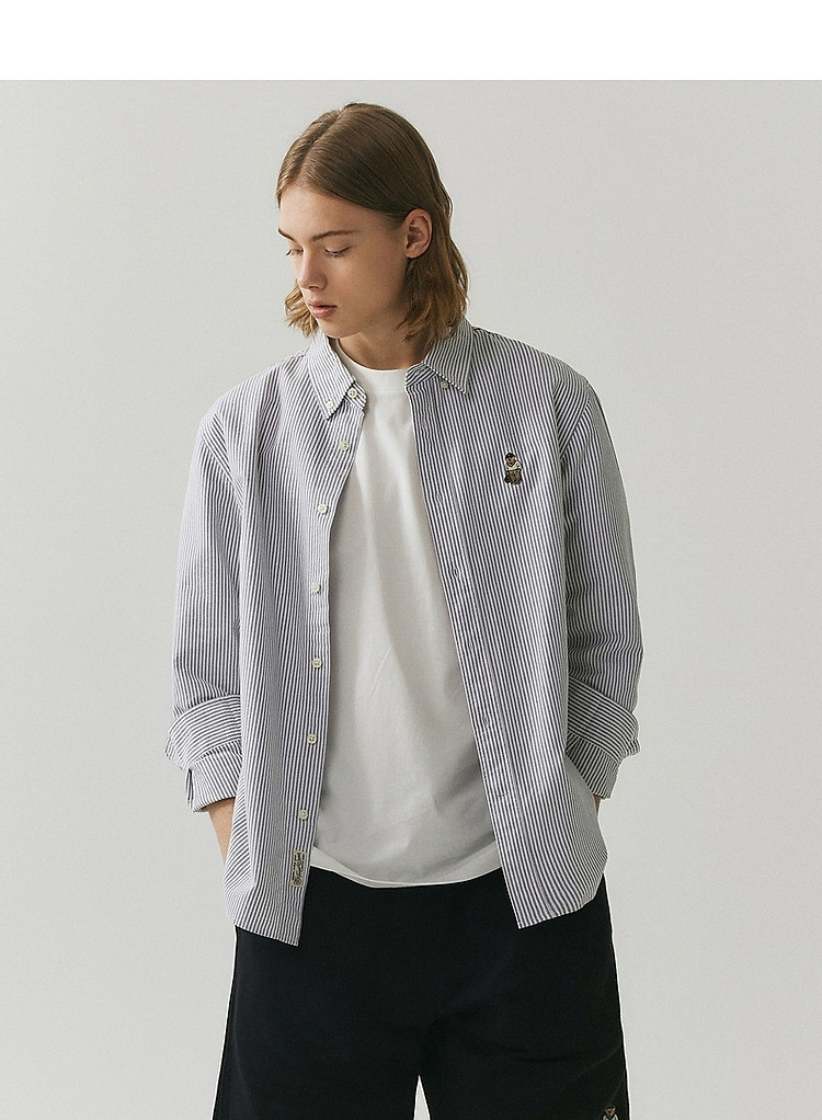 【牛津纺】衬衣男长袖衬衫春秋款文艺复古卡通刺绣衬衫男式衬衫 970049