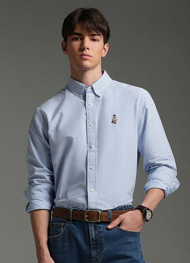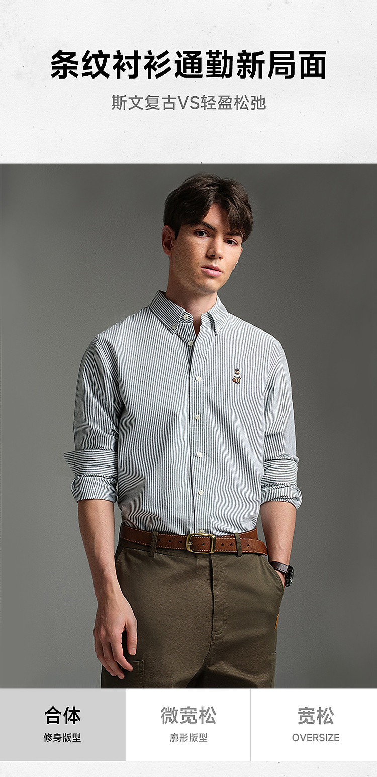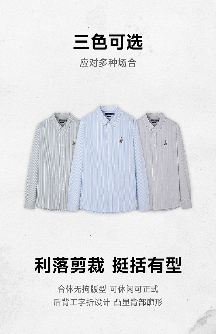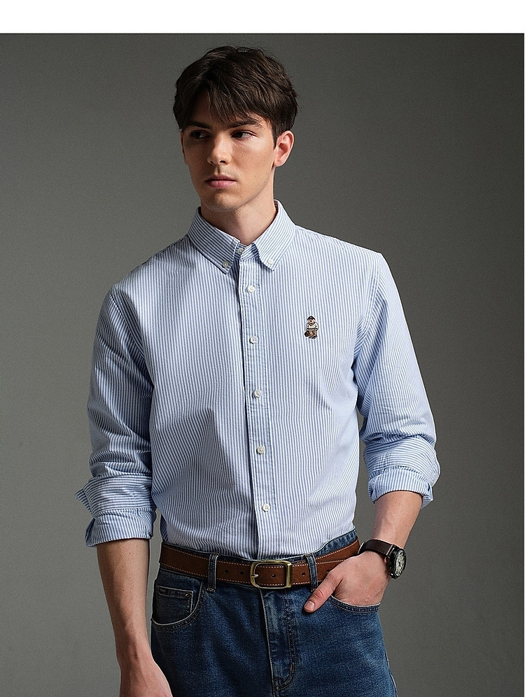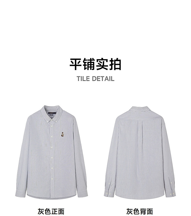 商品名称:【牛津纺】衬衣男长袖衬衫春秋款文艺复古卡通刺绣衬衫男式衬衫 970049