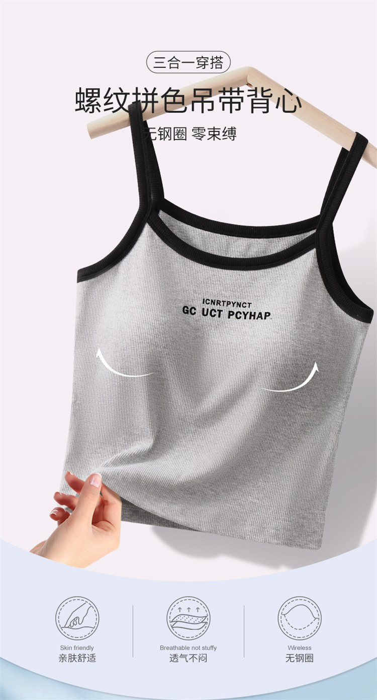 【钜惠捡漏】自带文胸垫时尚显瘦高弹休闲女士吊带打底背心可外穿 675614