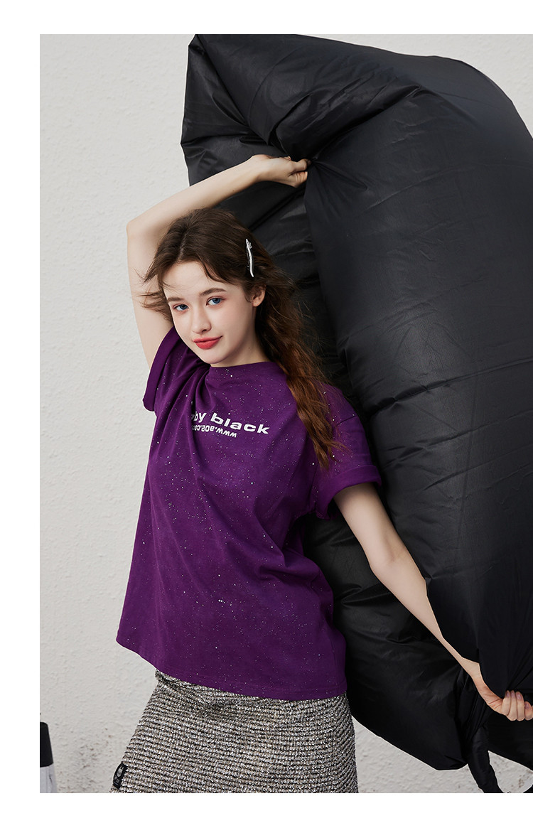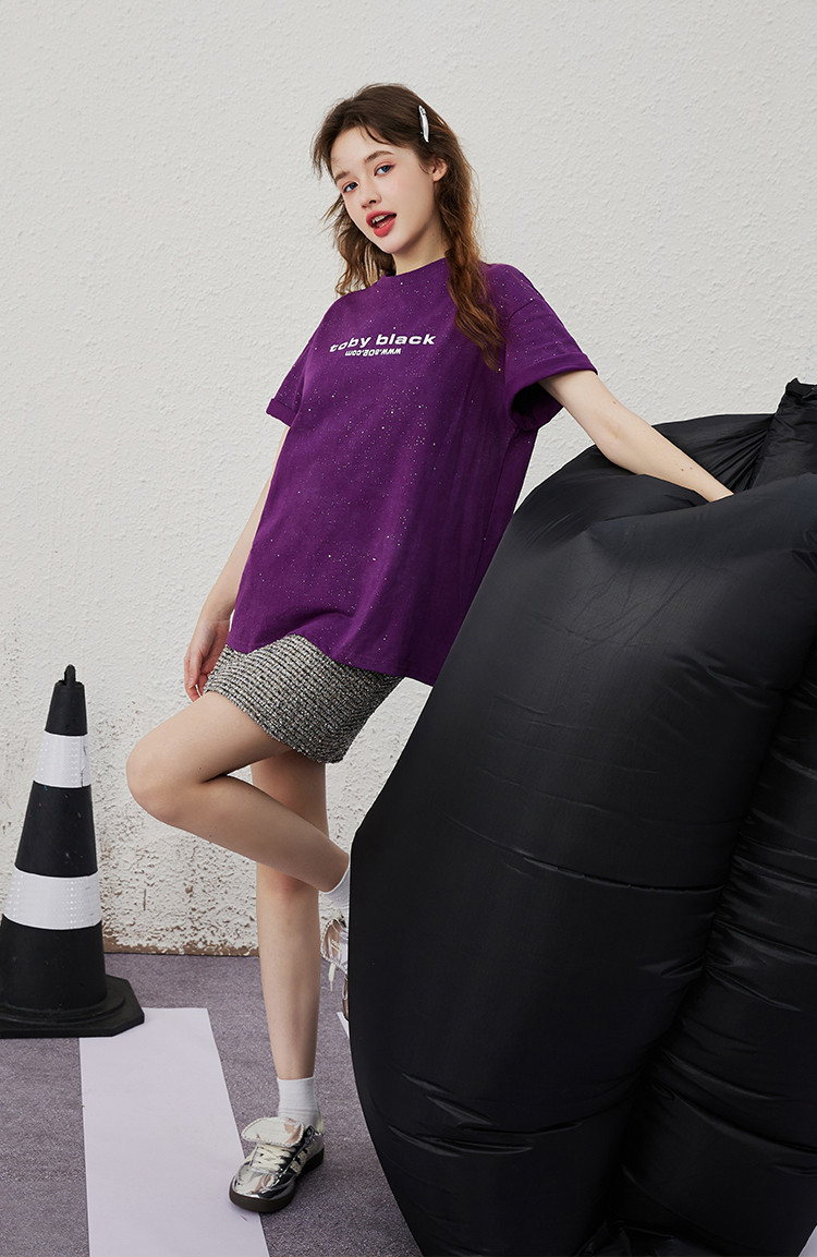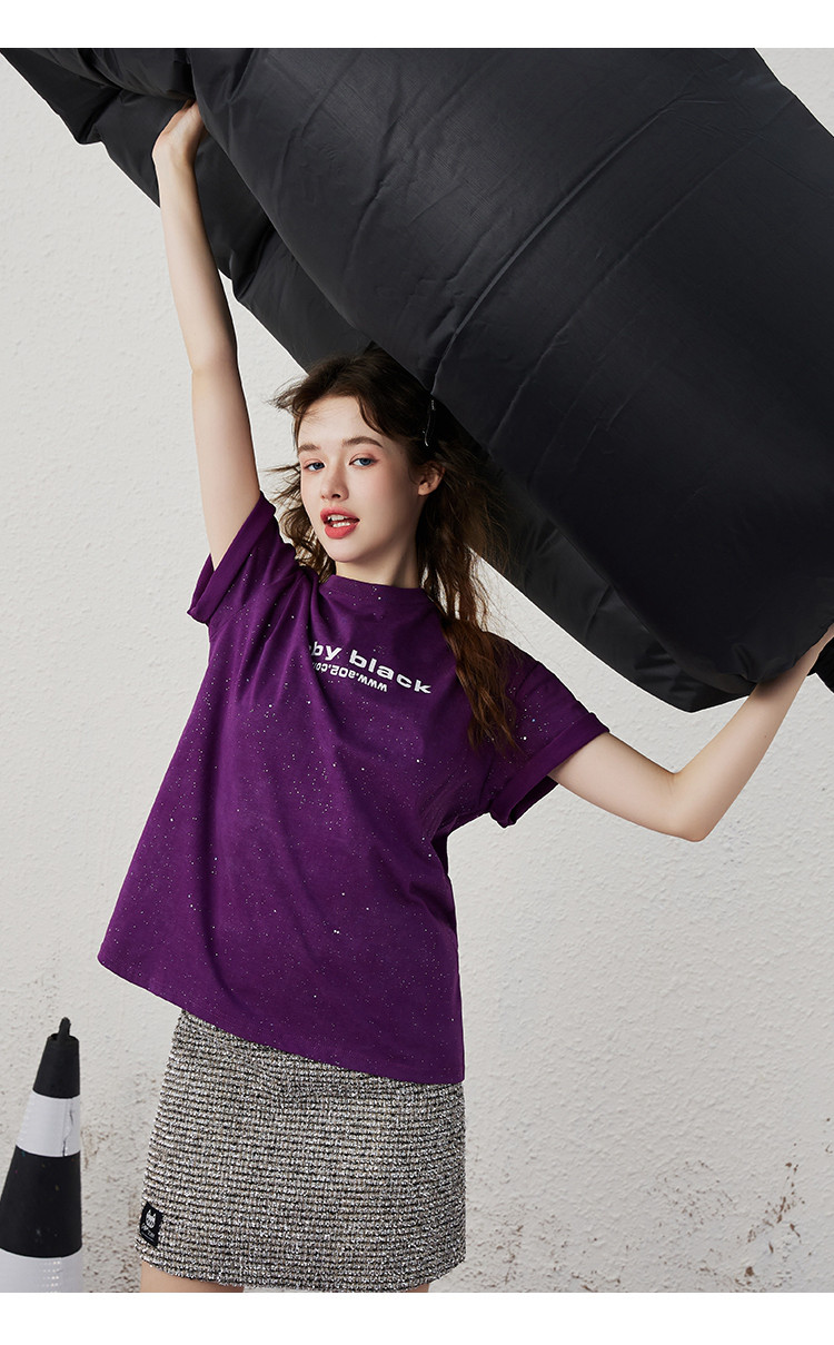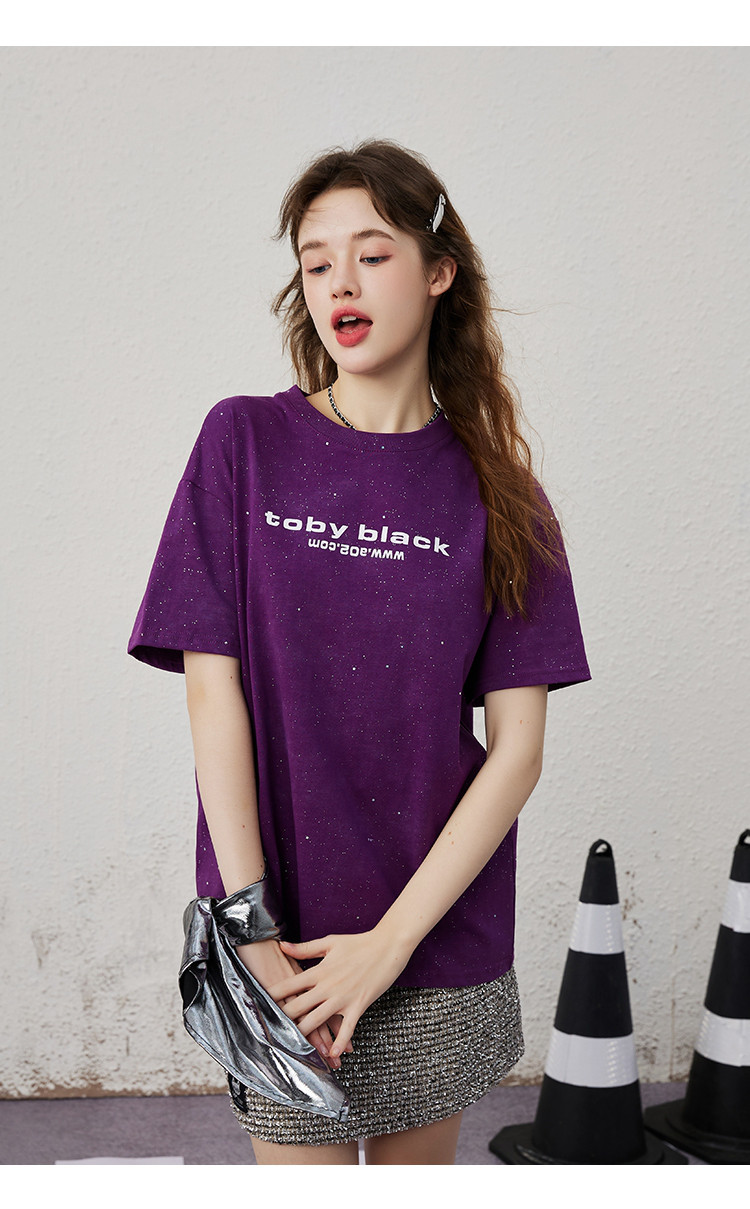 商品名称:个性星空字母印花宽松女式T恤夏季圆领休闲百搭短袖小衫 422237