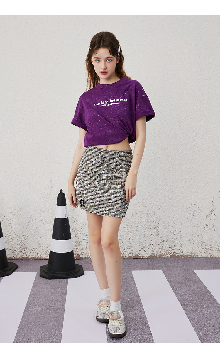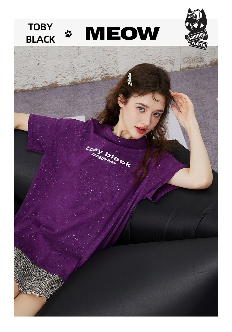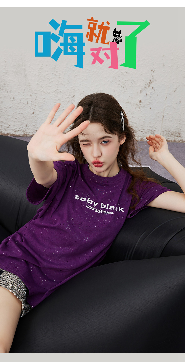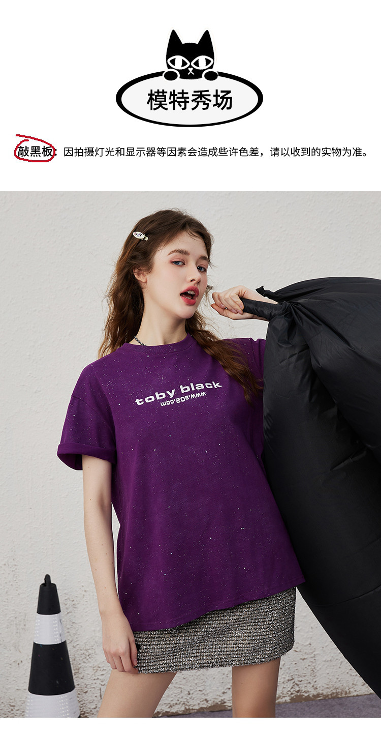 商品名称:个性星空字母印花宽松女式T恤夏季圆领休闲百搭短袖小衫 422237