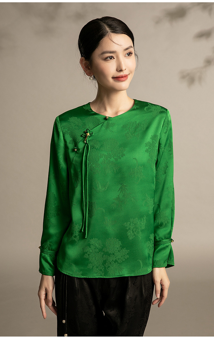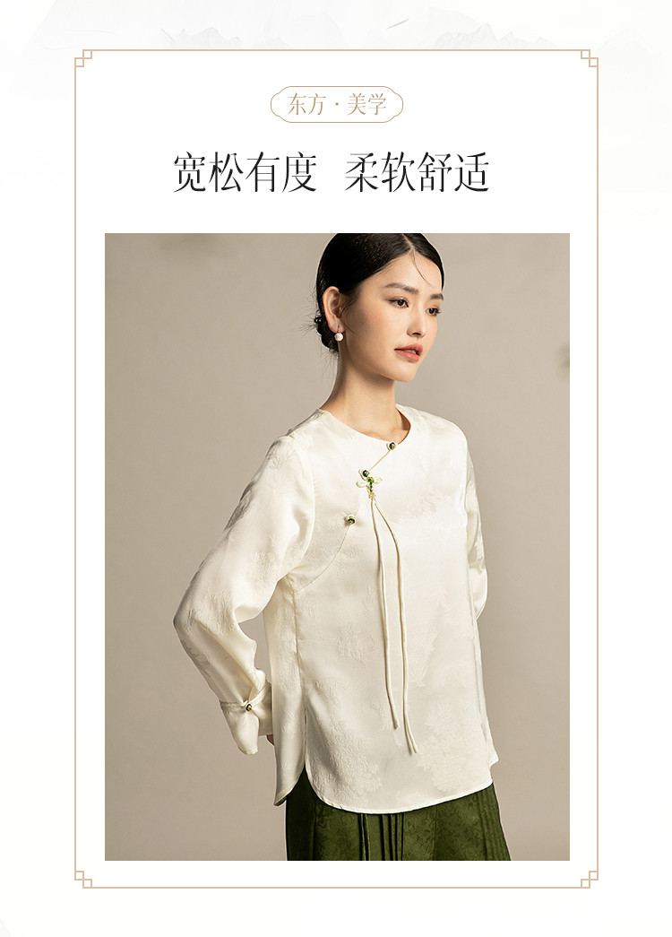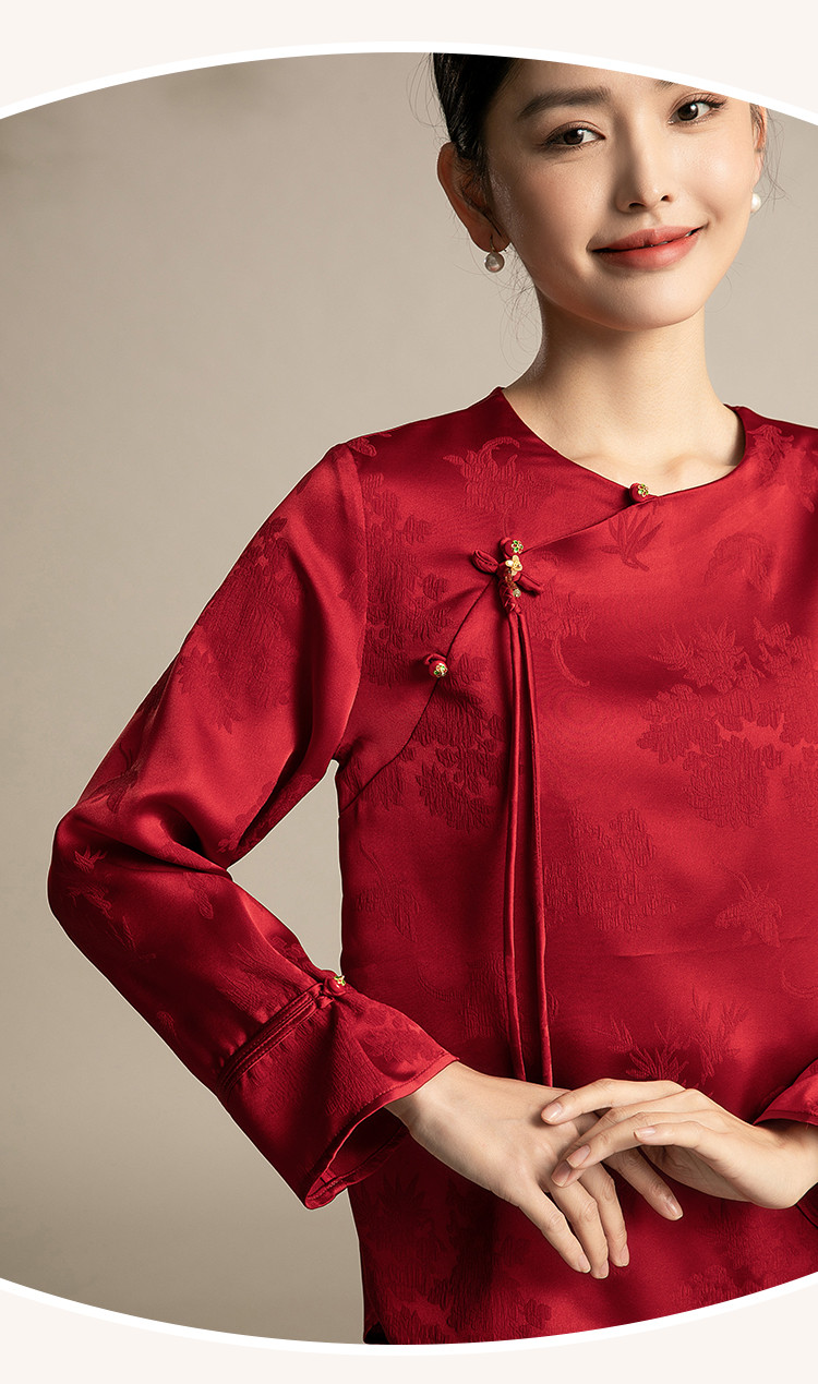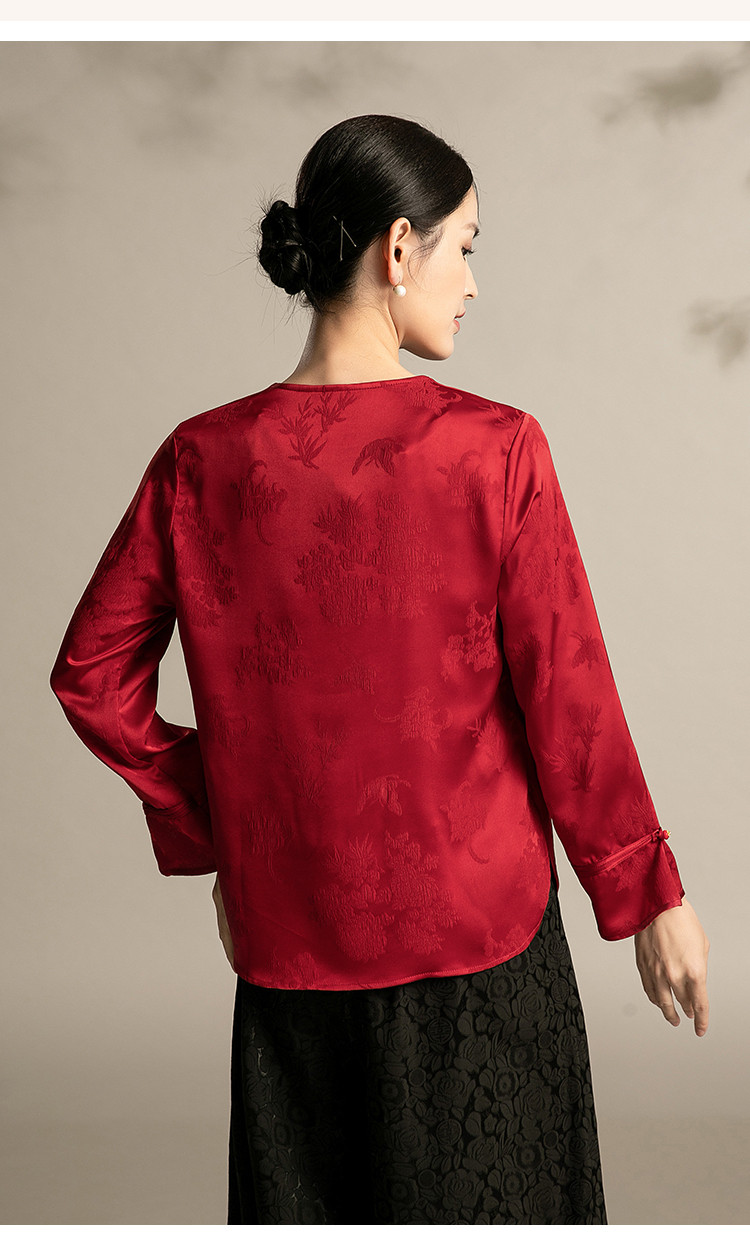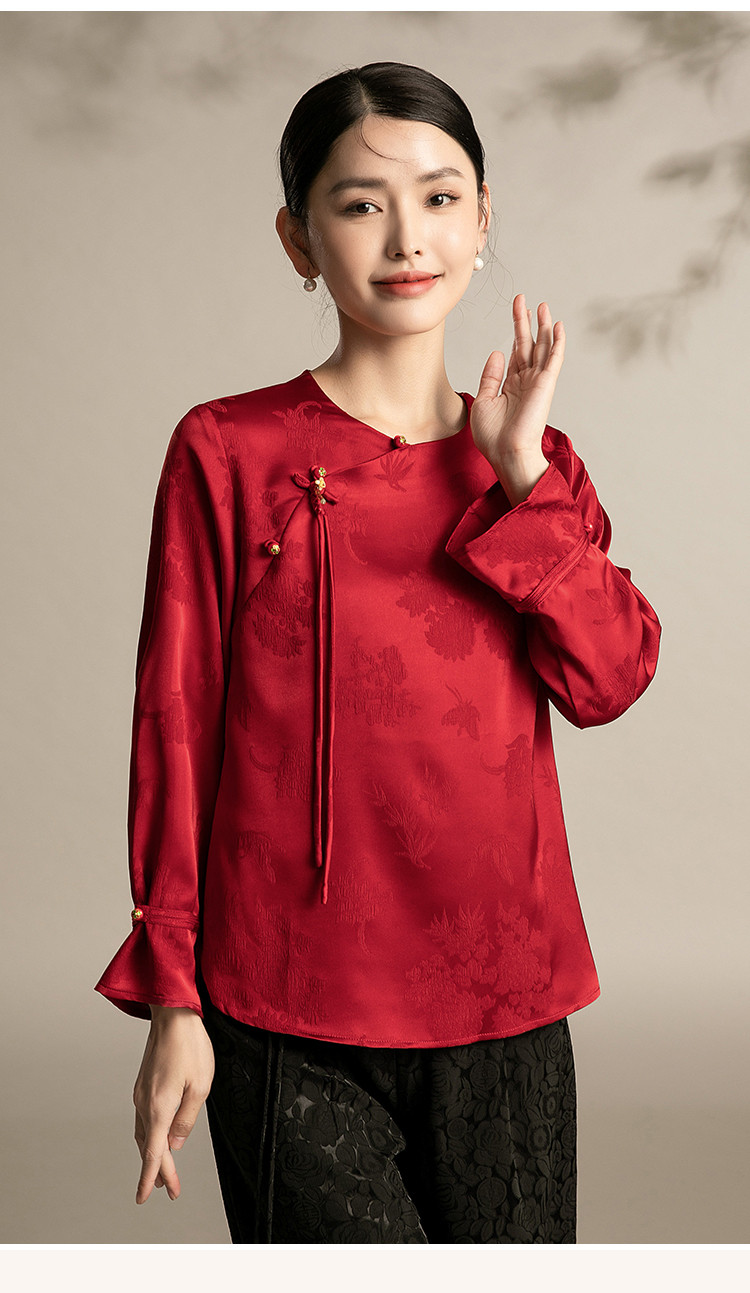商品名称:春季红色喜庆提花新中式国风通勤减龄时尚百搭衬衫女 762335