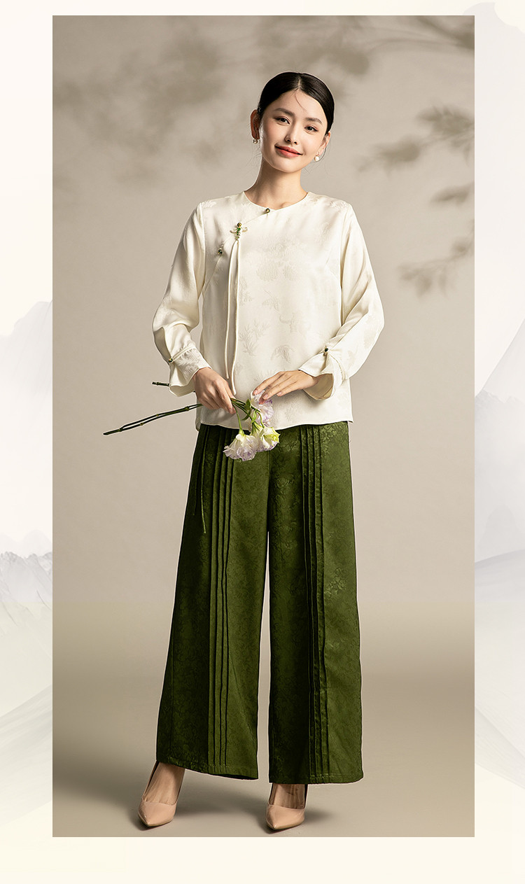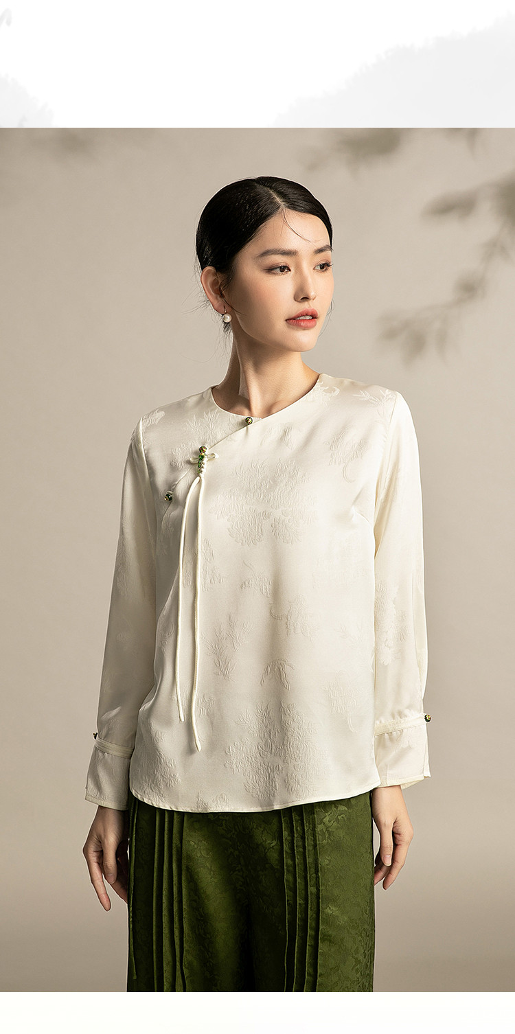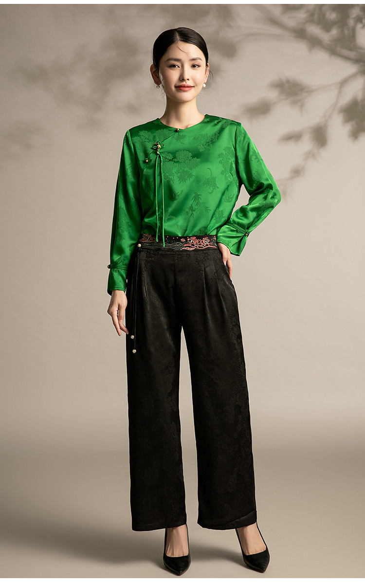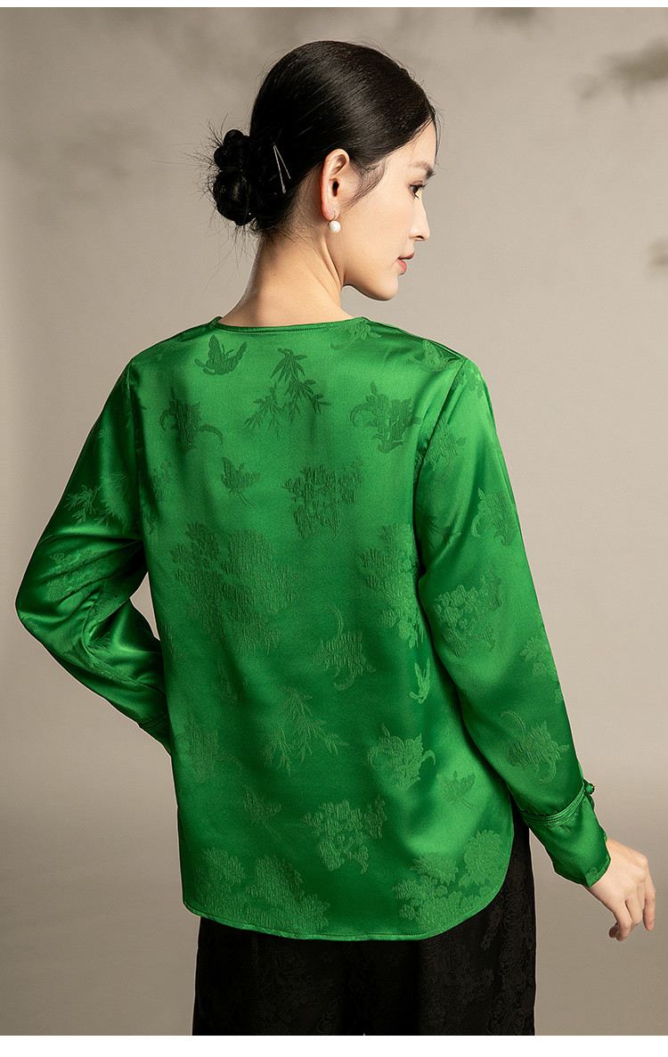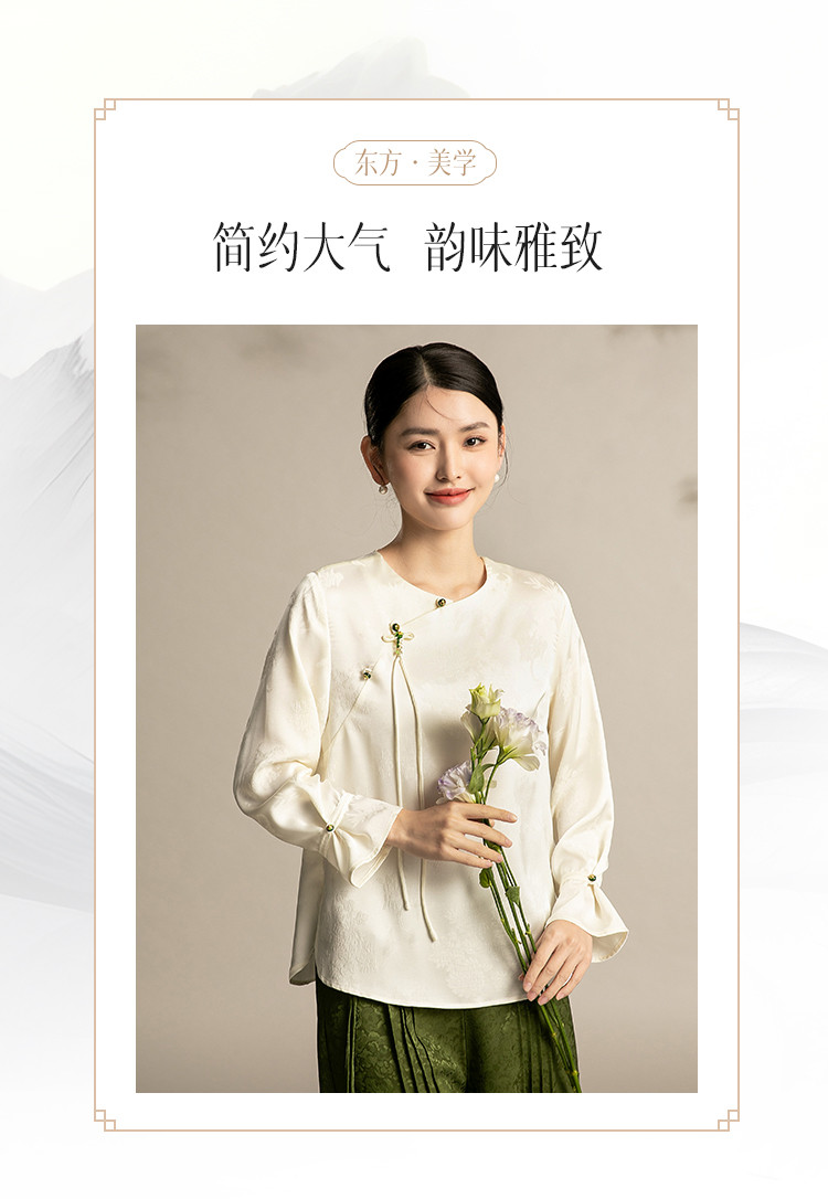 商品名称:春季红色喜庆提花新中式国风通勤减龄时尚百搭衬衫女 762335