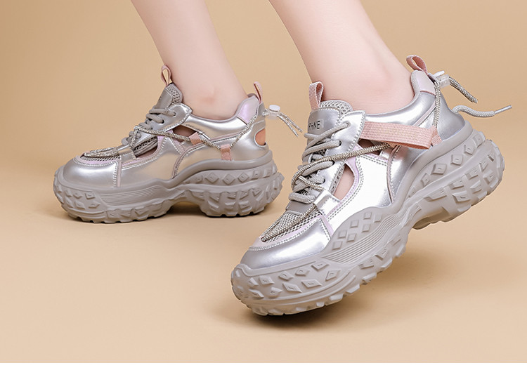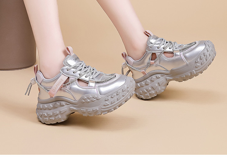 商品名称:春夏透气网面薄款老爹鞋女镂空运动休闲鞋显脚小轻便厚底鞋小白鞋 350935