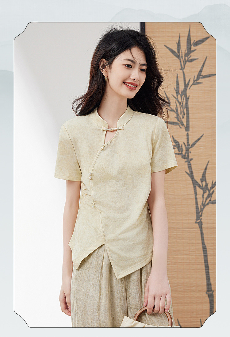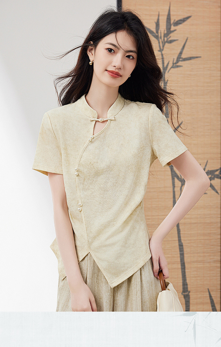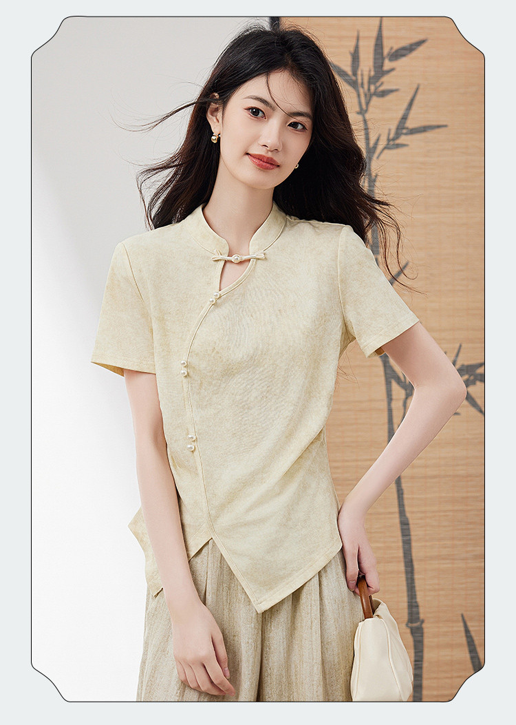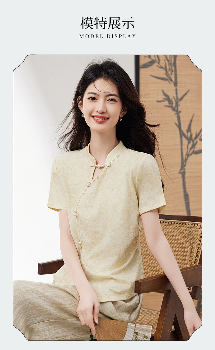 商品名称:新中式t裇女短袖2025夏季时尚国风正肩修身显瘦百搭针织上衣 273944