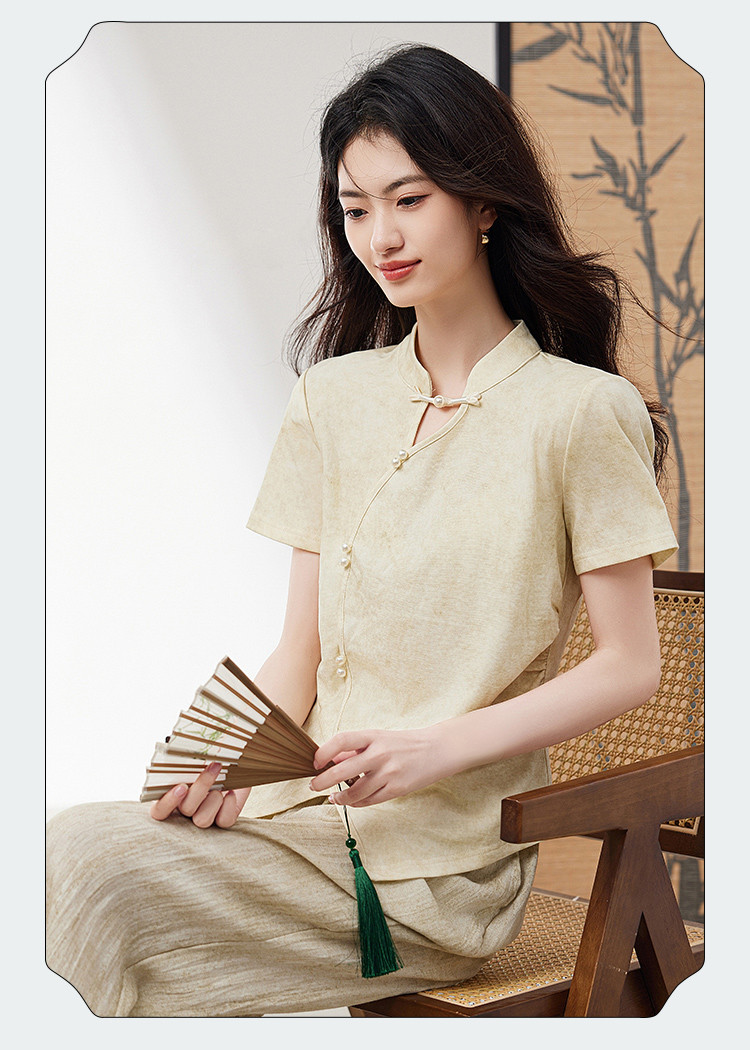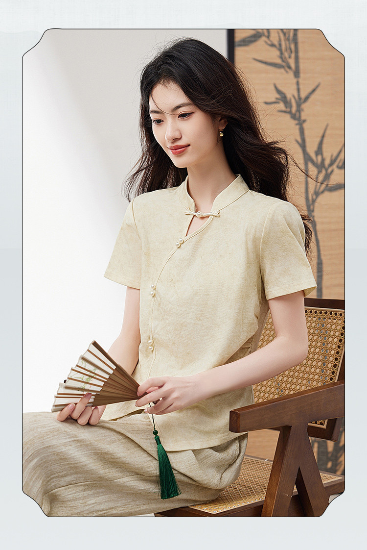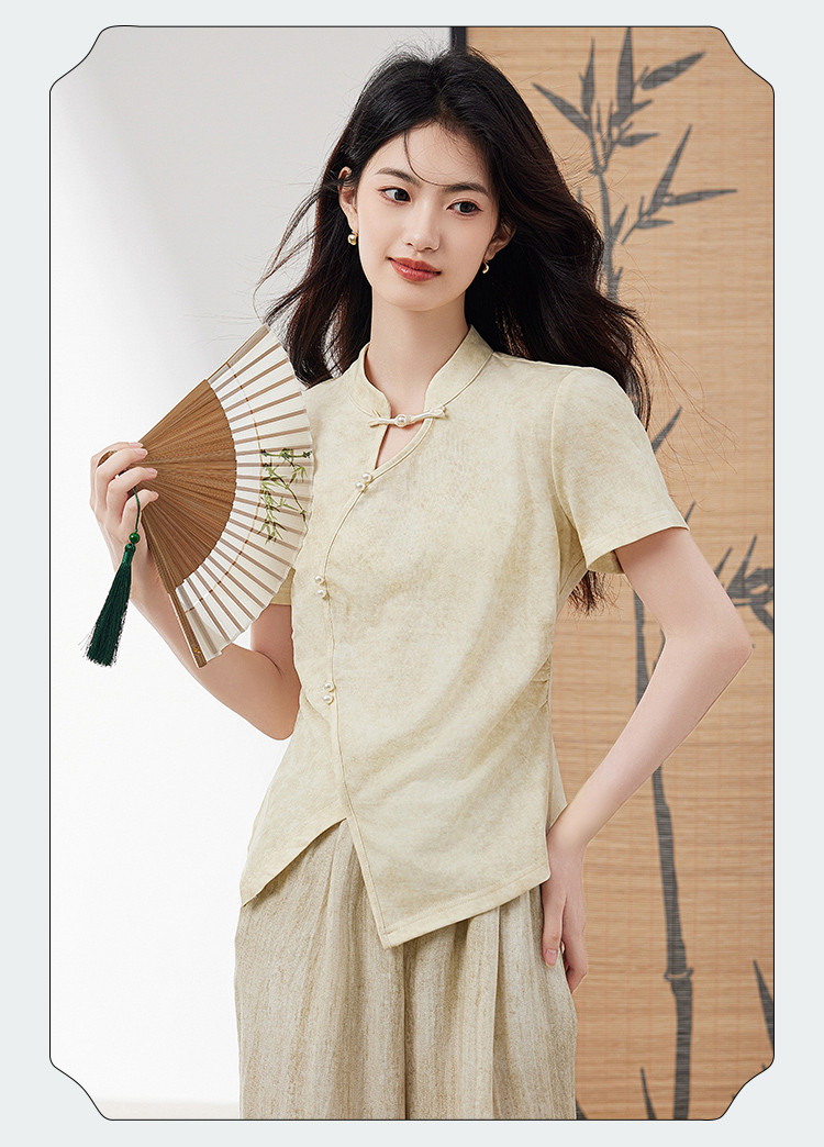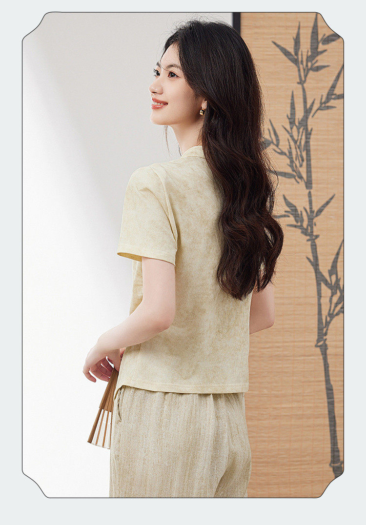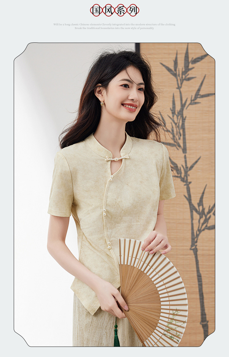 商品名称:新中式t裇女短袖2025夏季时尚国风正肩修身显瘦百搭针织上衣 273944