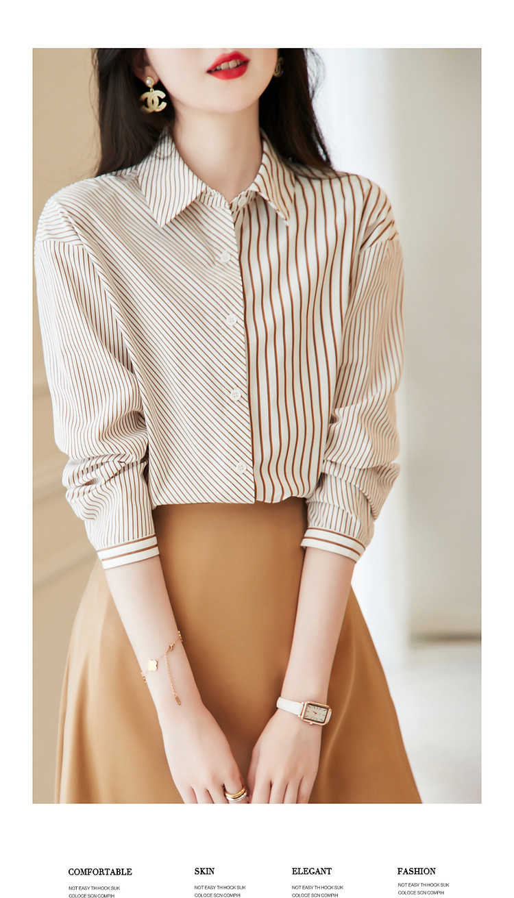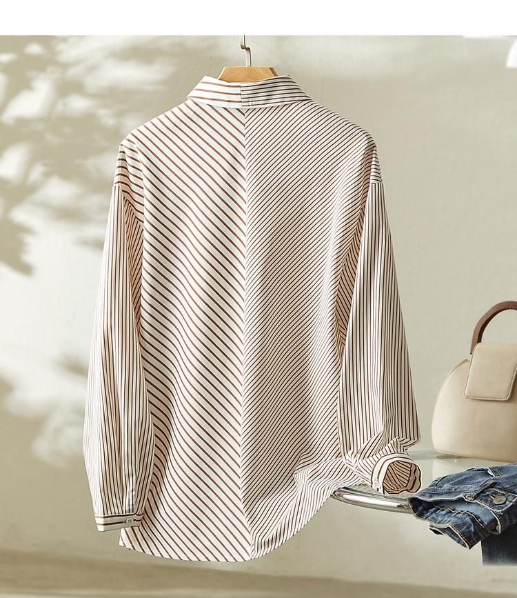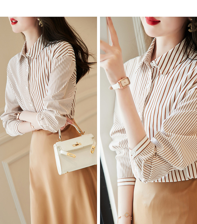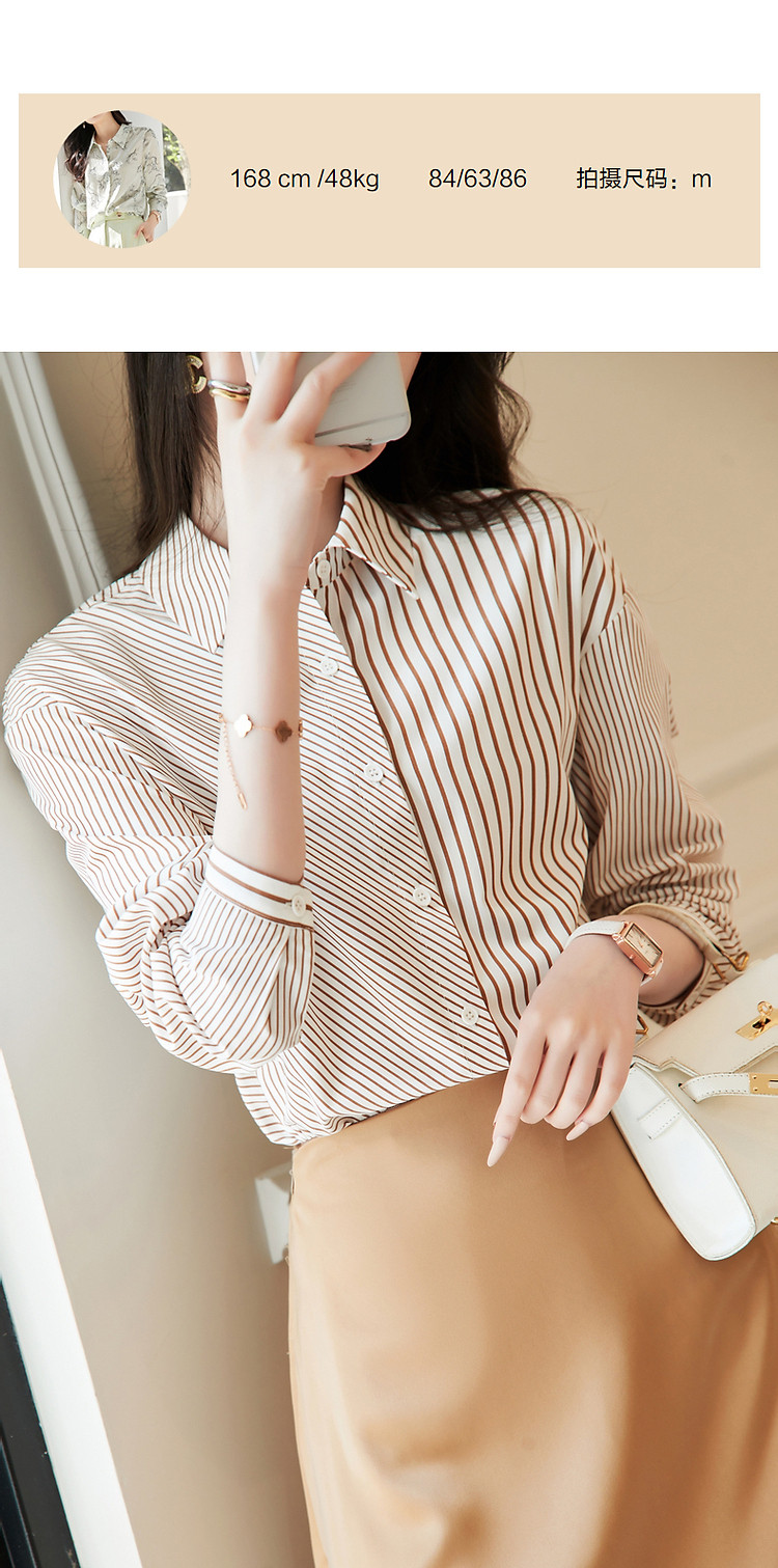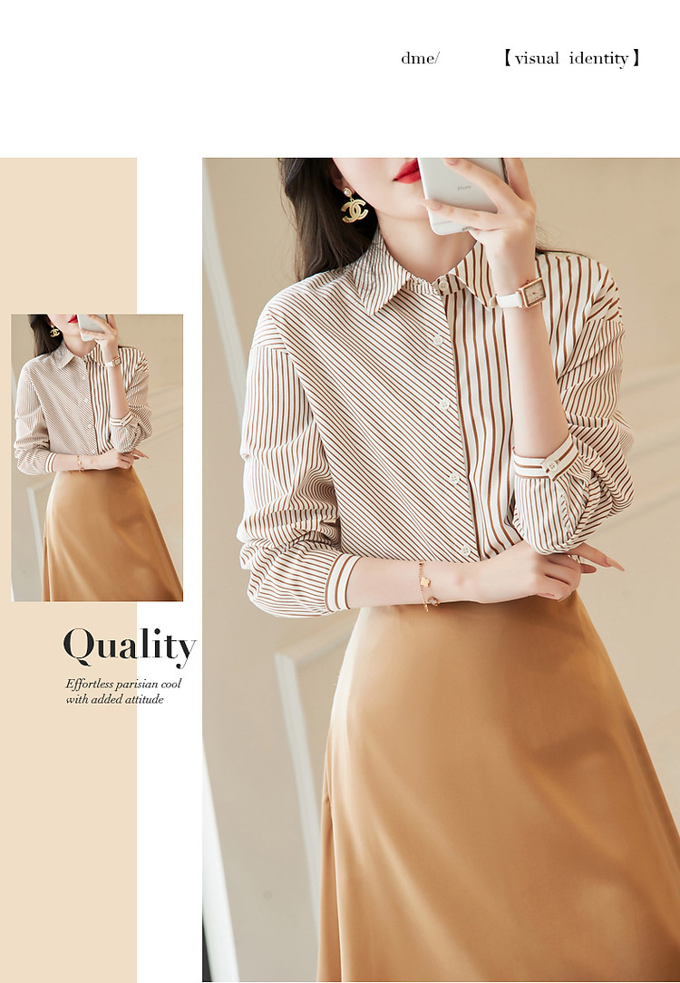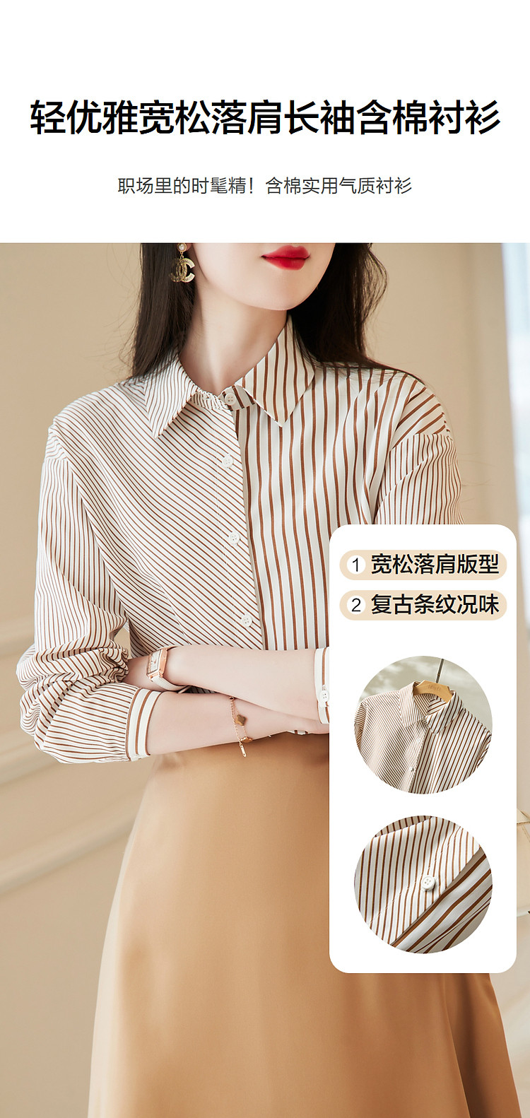 商品名称:【时髦知识分子】春秋简约通勤条纹拼接衬衫舒适含棉衬衣女装上衣 002753