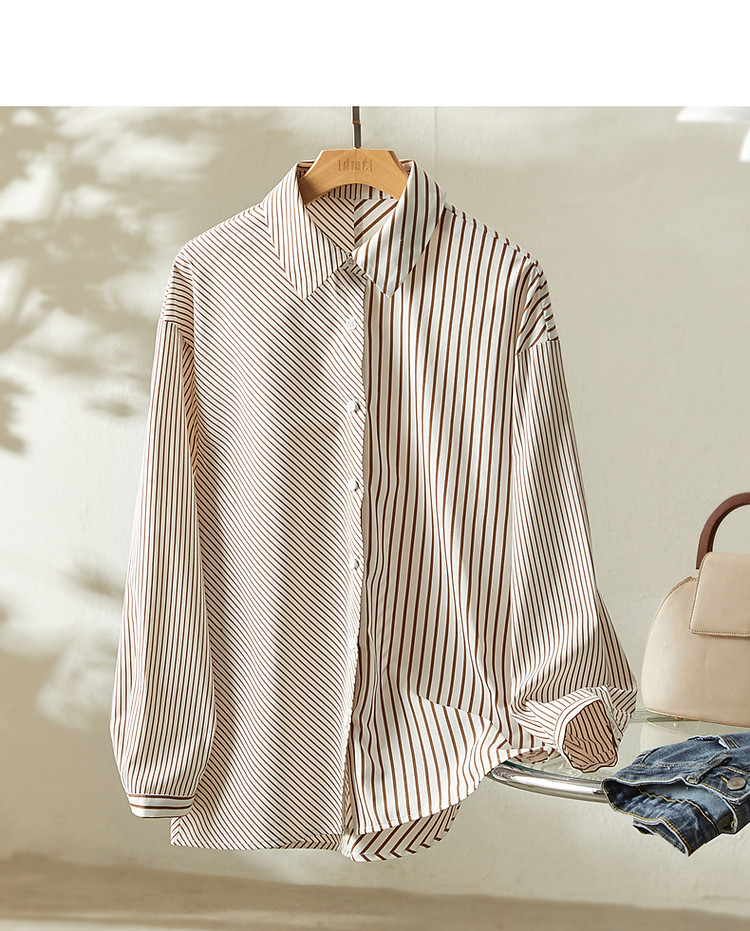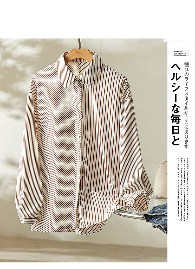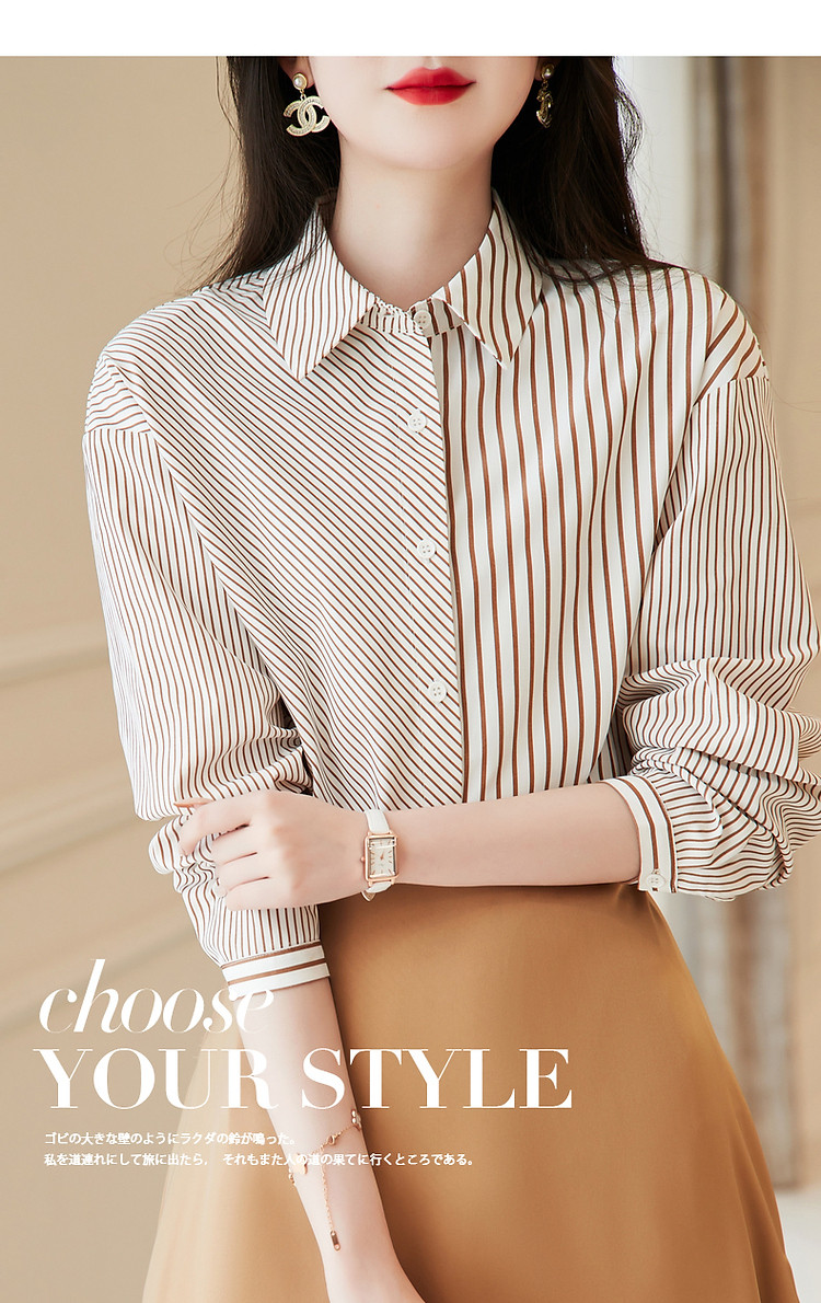 【时髦知识分子】春秋简约通勤条纹拼接衬衫舒适含棉衬衣女装上衣 002753