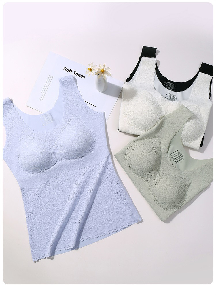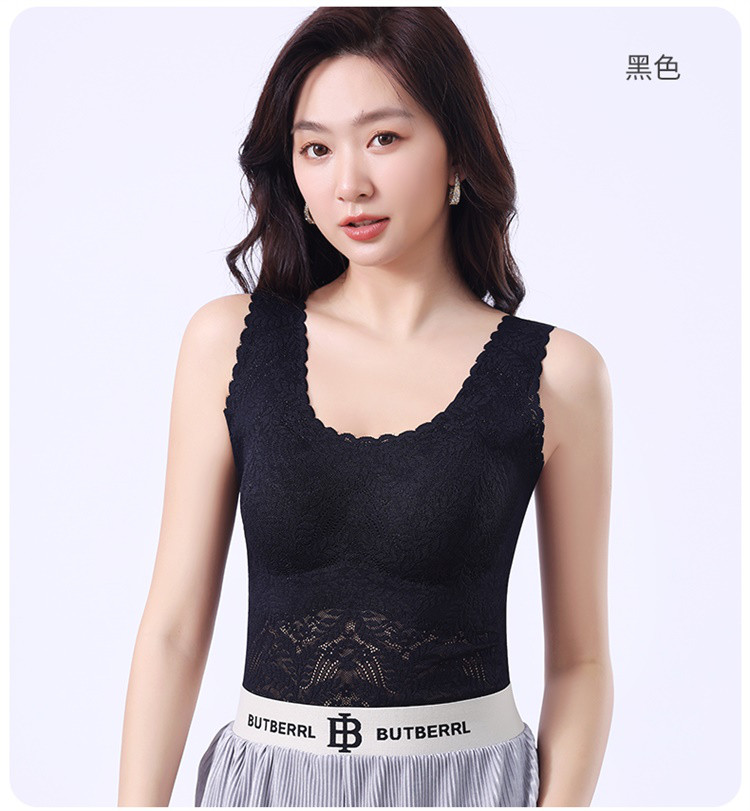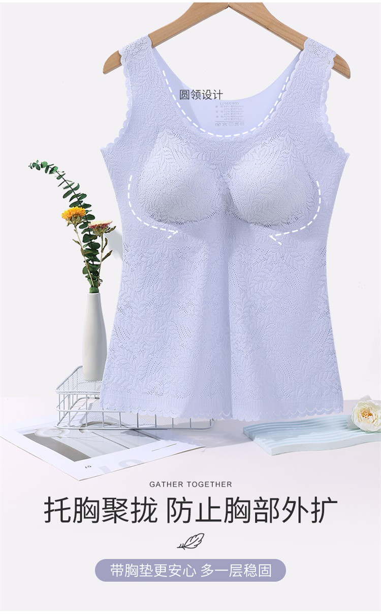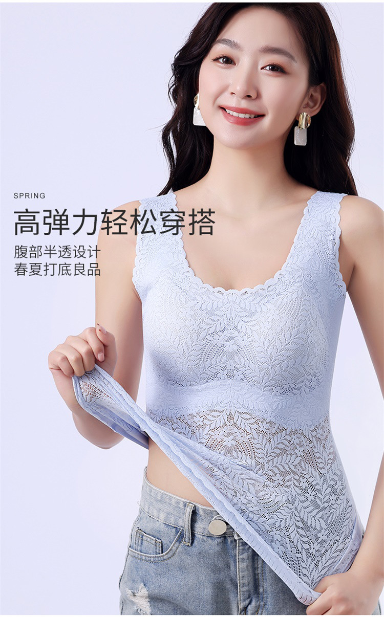 【轻塑形收腹】内衣女蕾丝性感薄款透气自带胸垫打底上衣吊带背心 492638