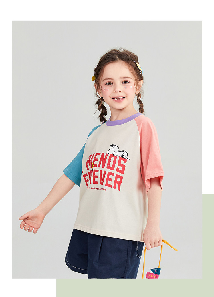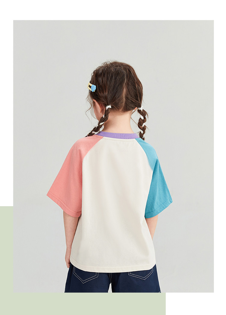 商品名称:【短袖T恤】25年夏季新款中大童圆领上衣男女宝撞色透气短袖 758239