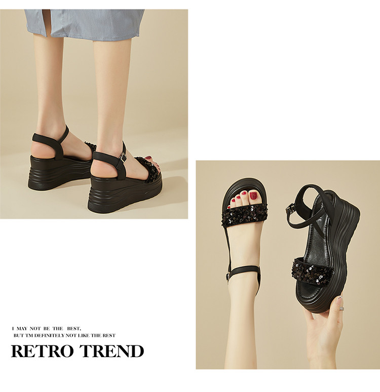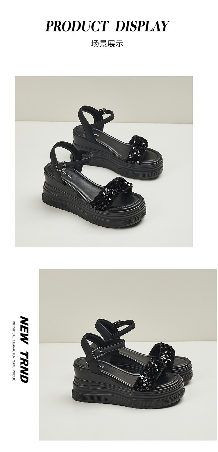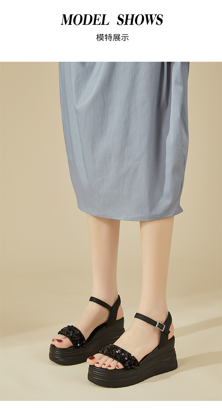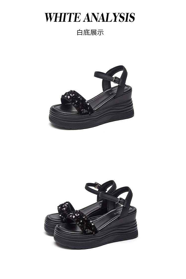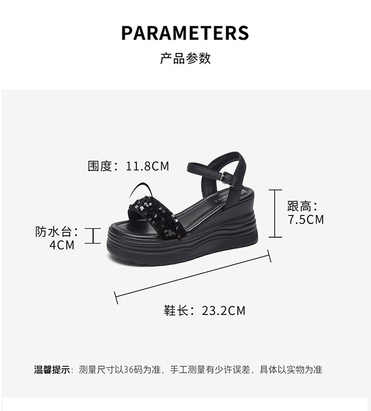 商品名称:【秒增7.5】夏厚底百搭女鞋亮片露趾坡跟凉鞋一字带凉鞋 216983
