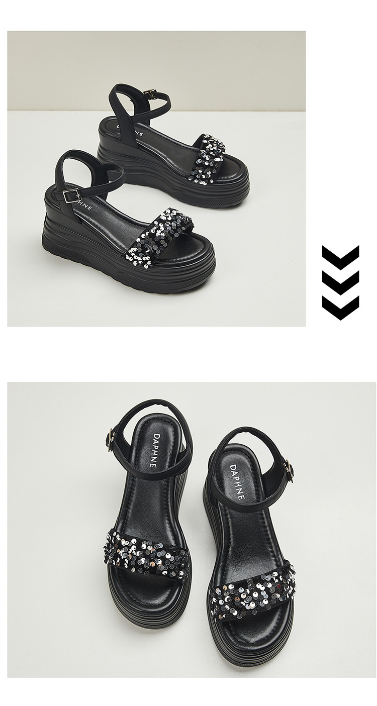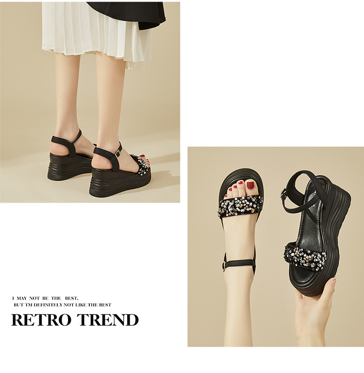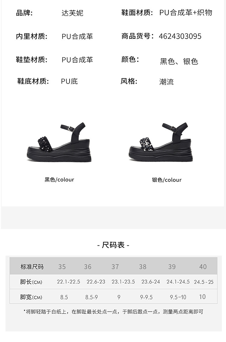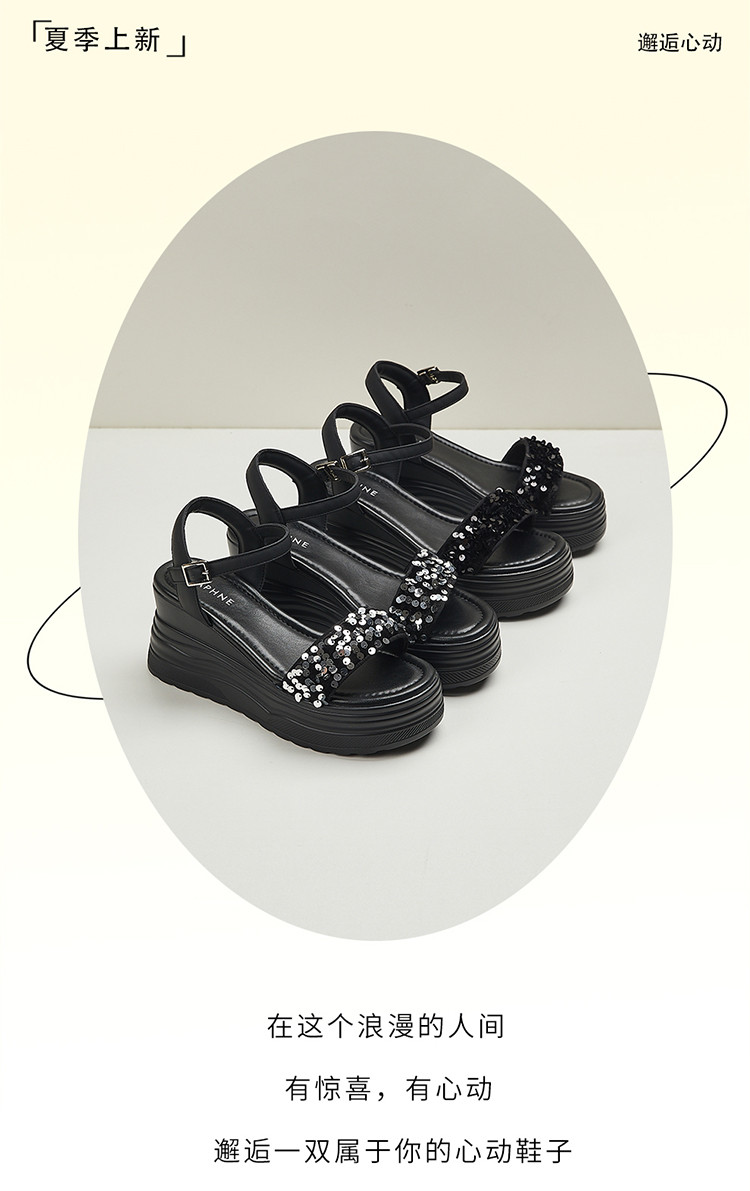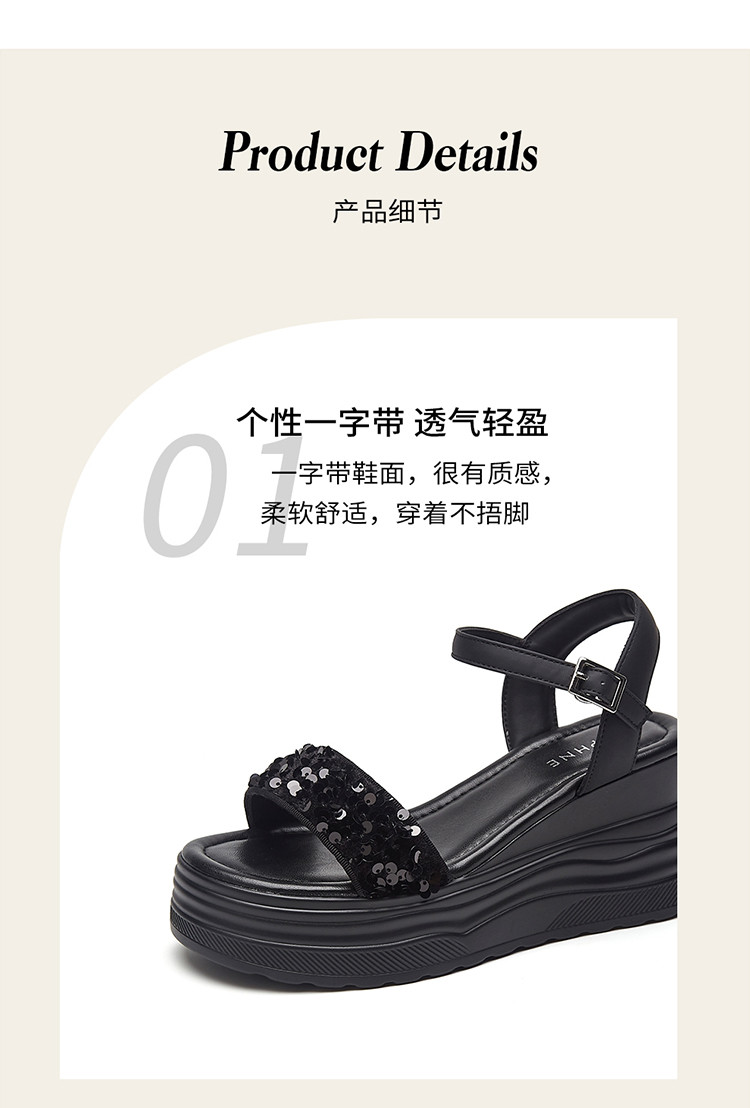 商品名称:【秒增7.5】夏厚底百搭女鞋亮片露趾坡跟凉鞋一字带凉鞋 216983