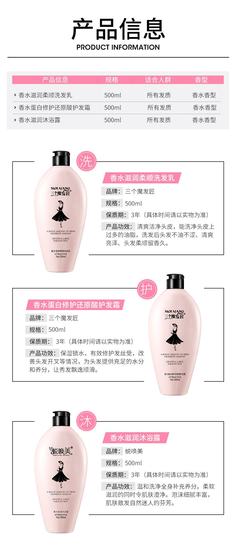 商品名称:三个魔发匠香水滋润柔顺洗发乳沐浴露护发素小黑裙【XYR-XHQ-10016】