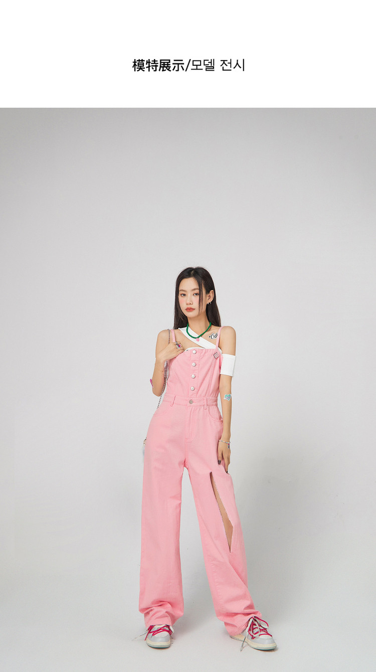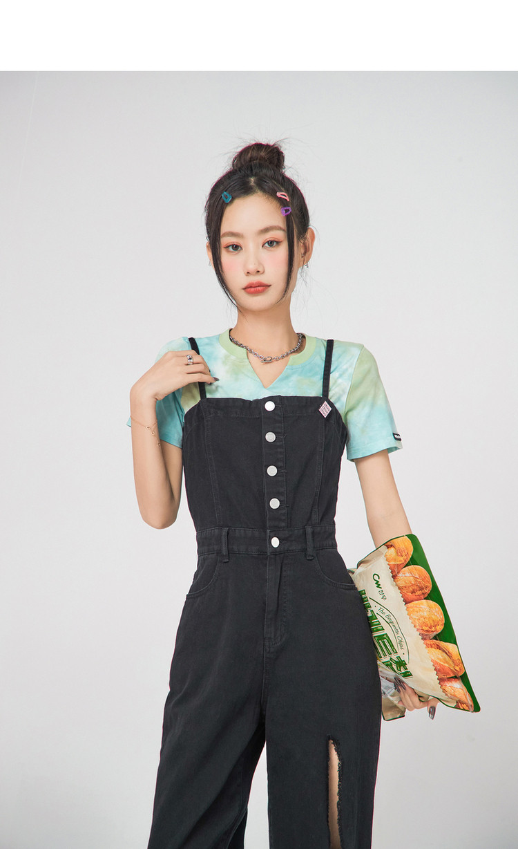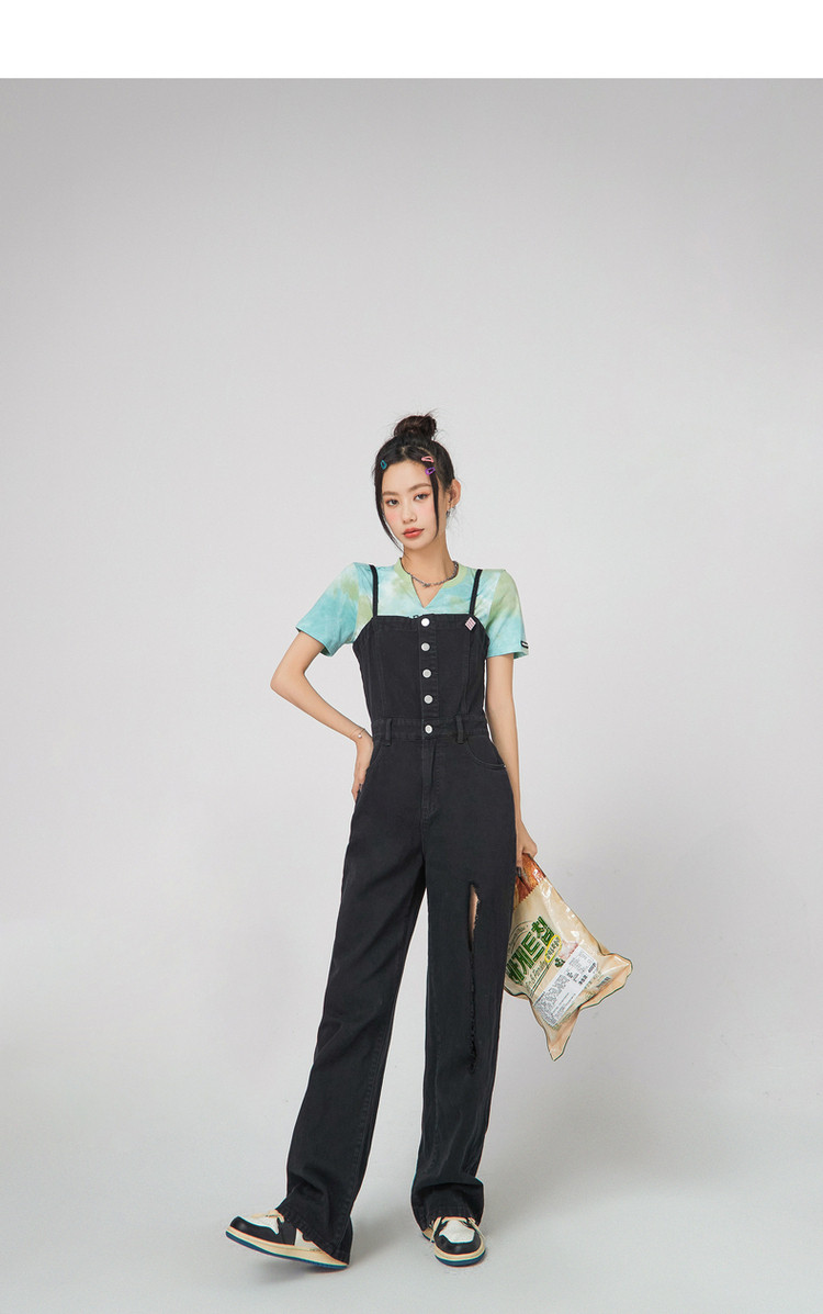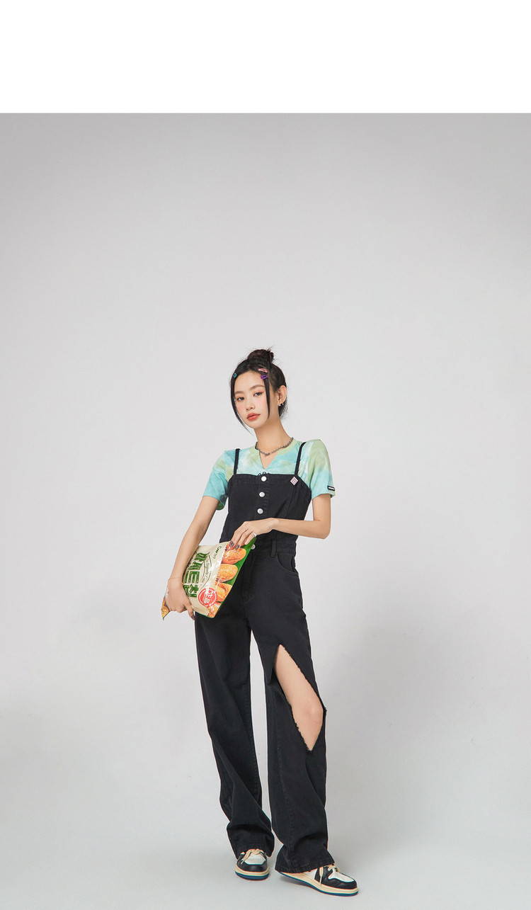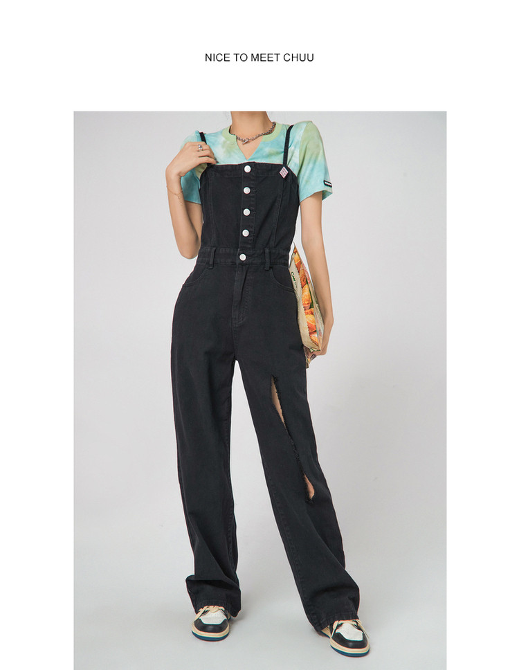 商品名称:设计感时尚破洞连体牛仔裤女夏季小众个性拖地裤子 815699