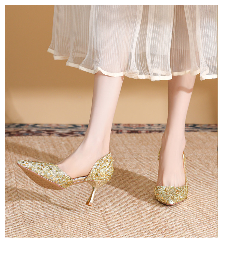夏季气质高跟鞋女细跟通勤鞋轻便一脚蹬时尚女单鞋时装鞋透气女鞋 090199