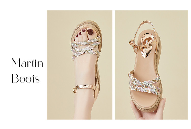 【珍珠一字带凉鞋】百搭中空凉鞋女夏季罗马凉鞋时装凉鞋粗跟女鞋 852631