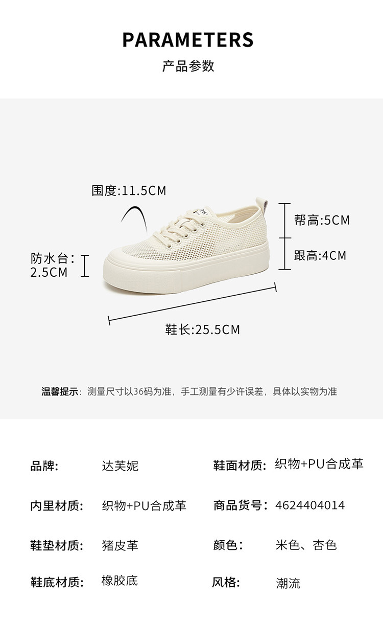 商品名称:【爆款热卖】夏季休闲板鞋女百搭厚底学生小白鞋透气网面鞋女鞋 314007