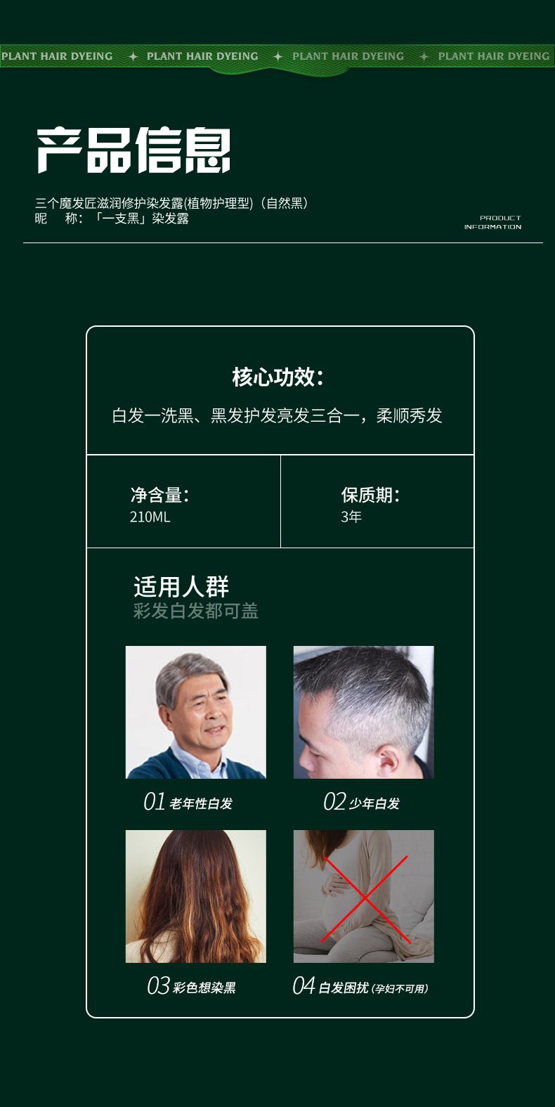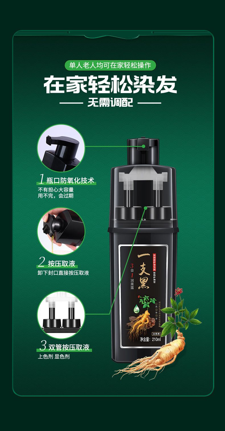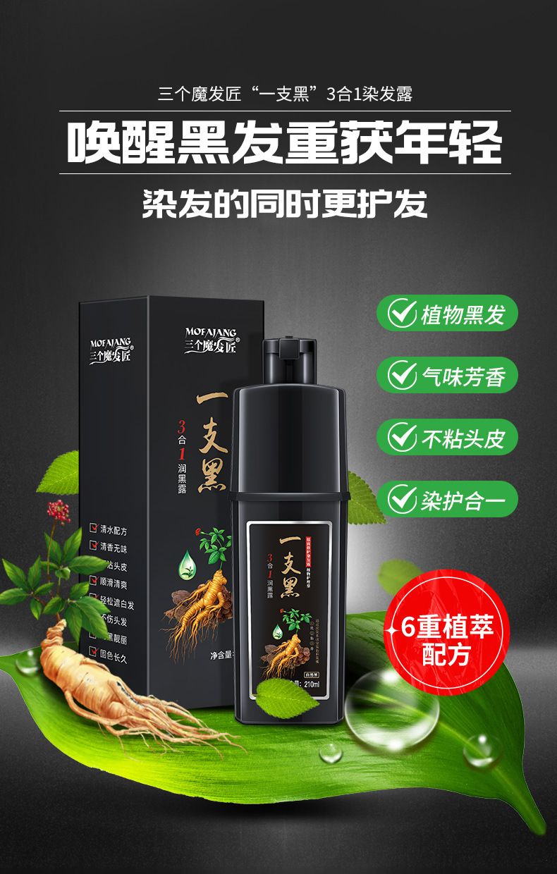 商品名称:三个魔发匠一支黑染发剂三合一护发清水染发膏【XYR-CP-1496】