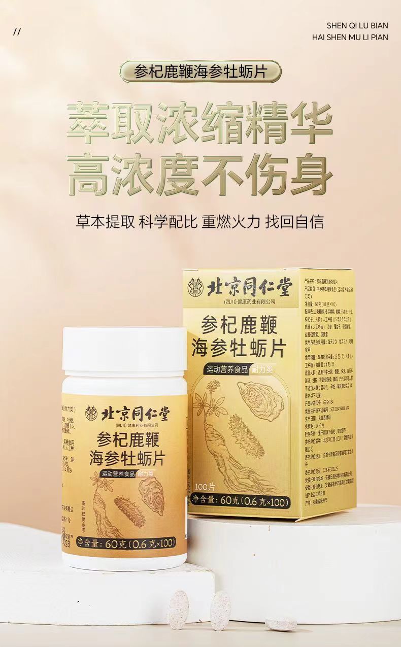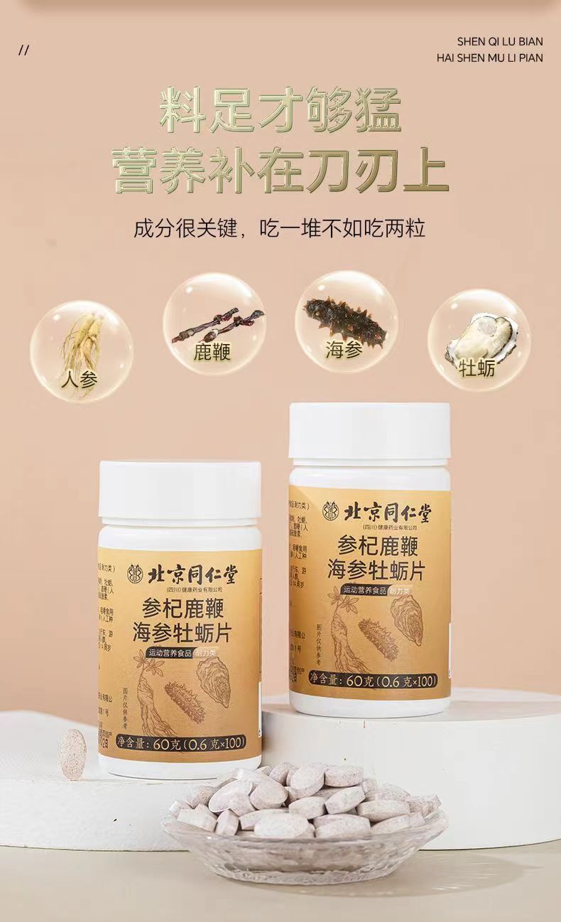 北京同仁堂参杞鹿鞭海参牡蛎片100片覆盆子男士适用肾亏精力不够易疲劳