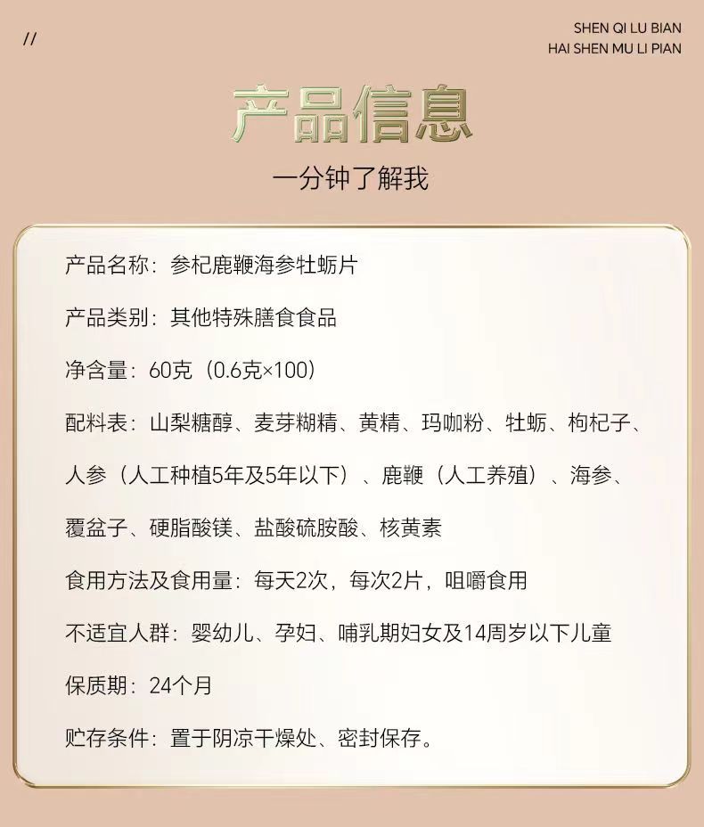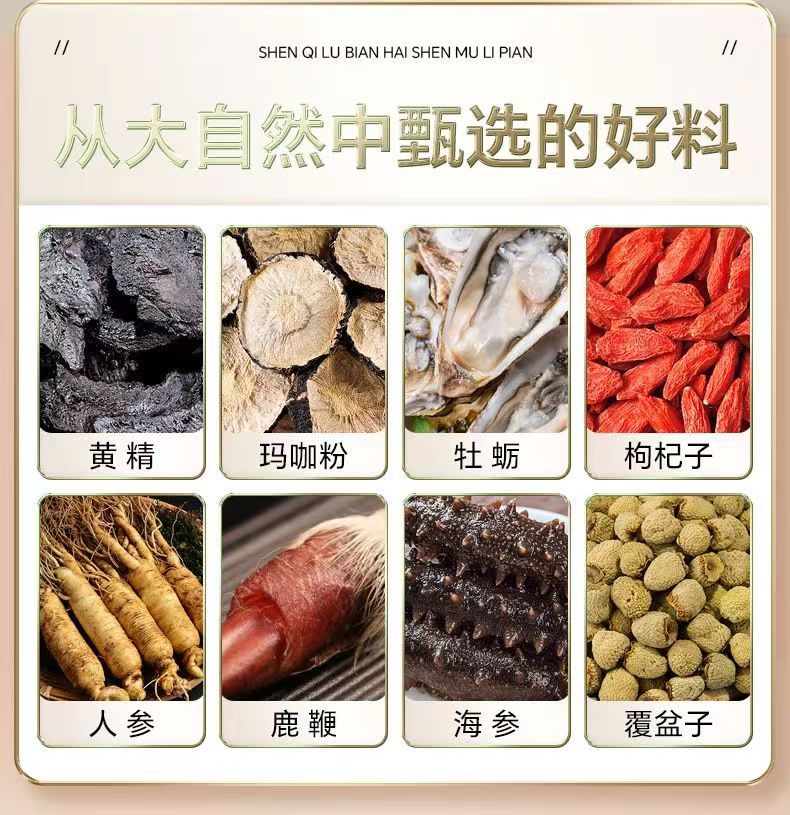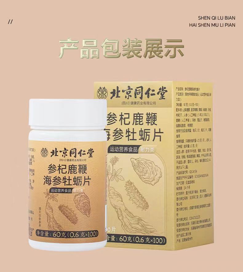 商品名称:北京同仁堂参杞鹿鞭海参牡蛎片100片覆盆子男士适用肾亏精力不够易疲劳