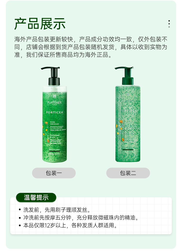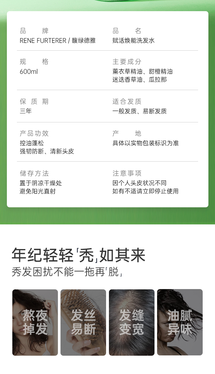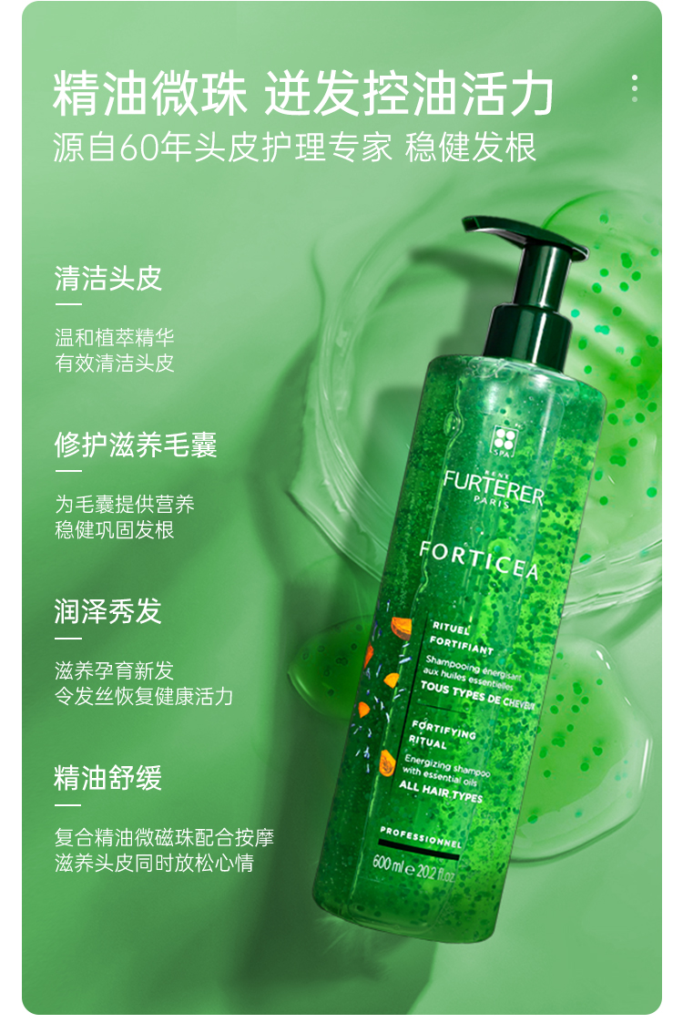 商品名称:Rene Furterer馥绿德雅 防脱发洗发水小绿珠洗发露 600ml 深层清洁