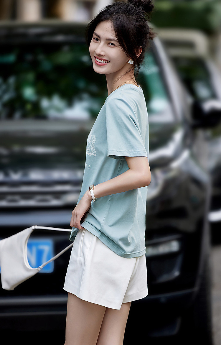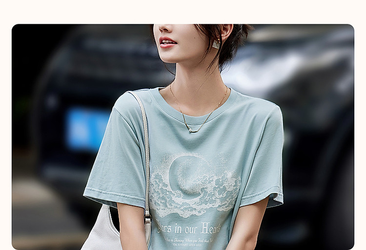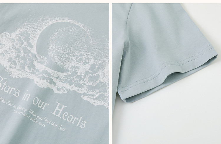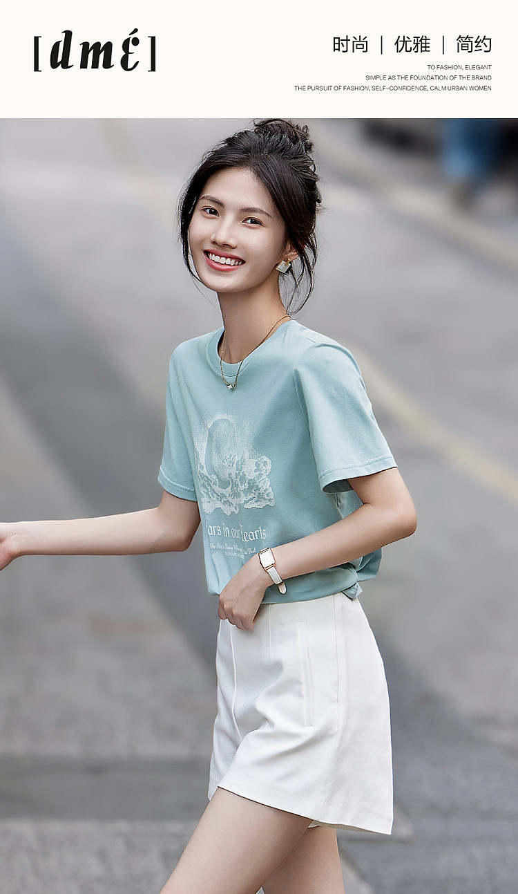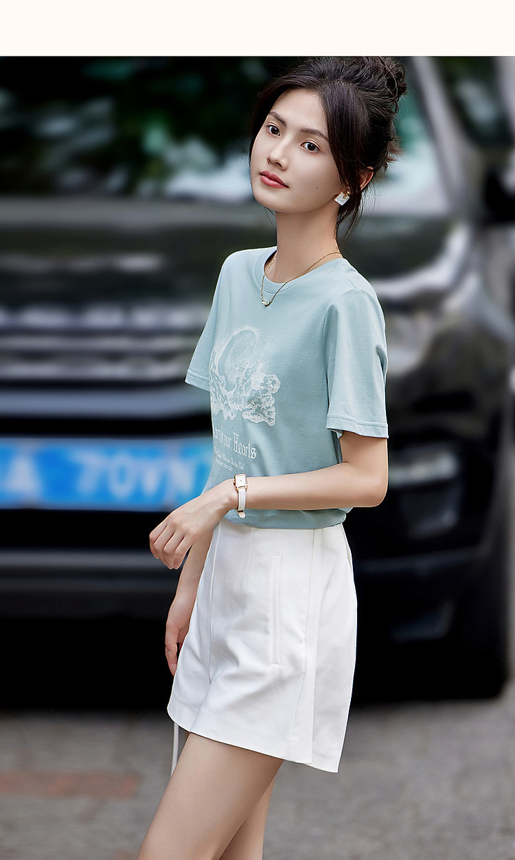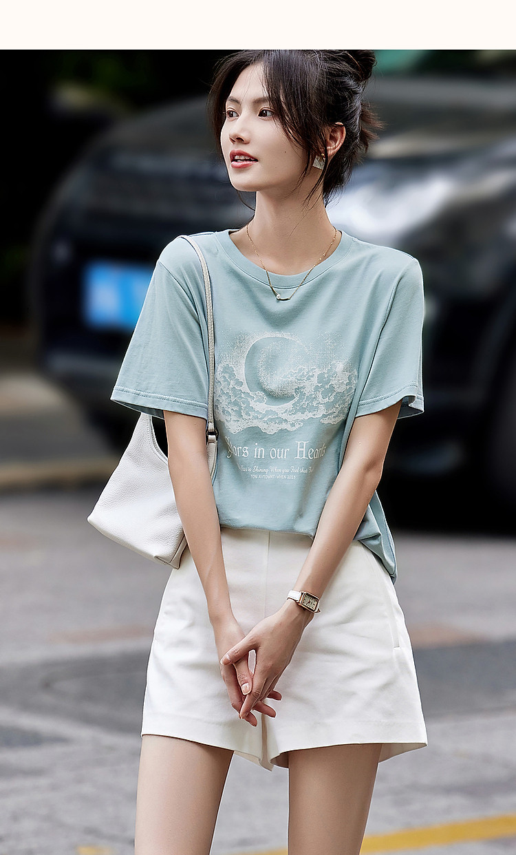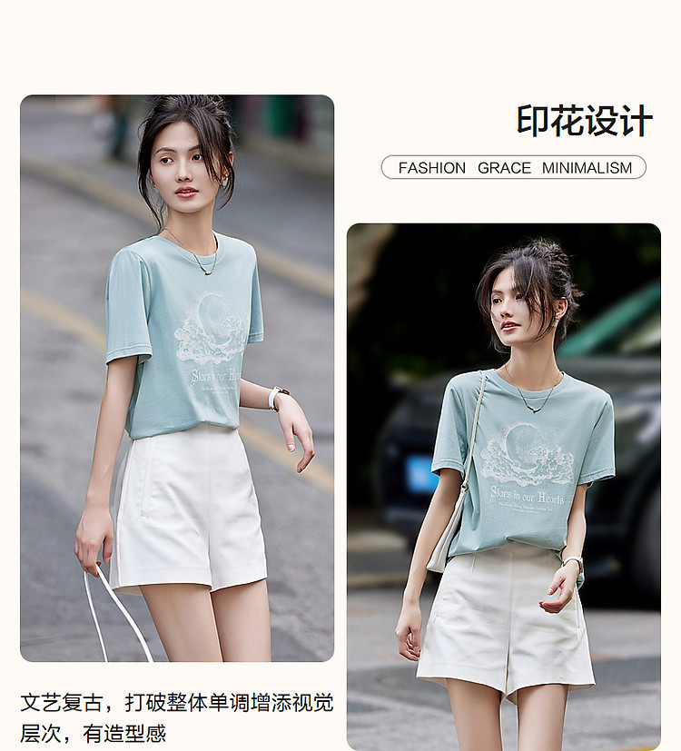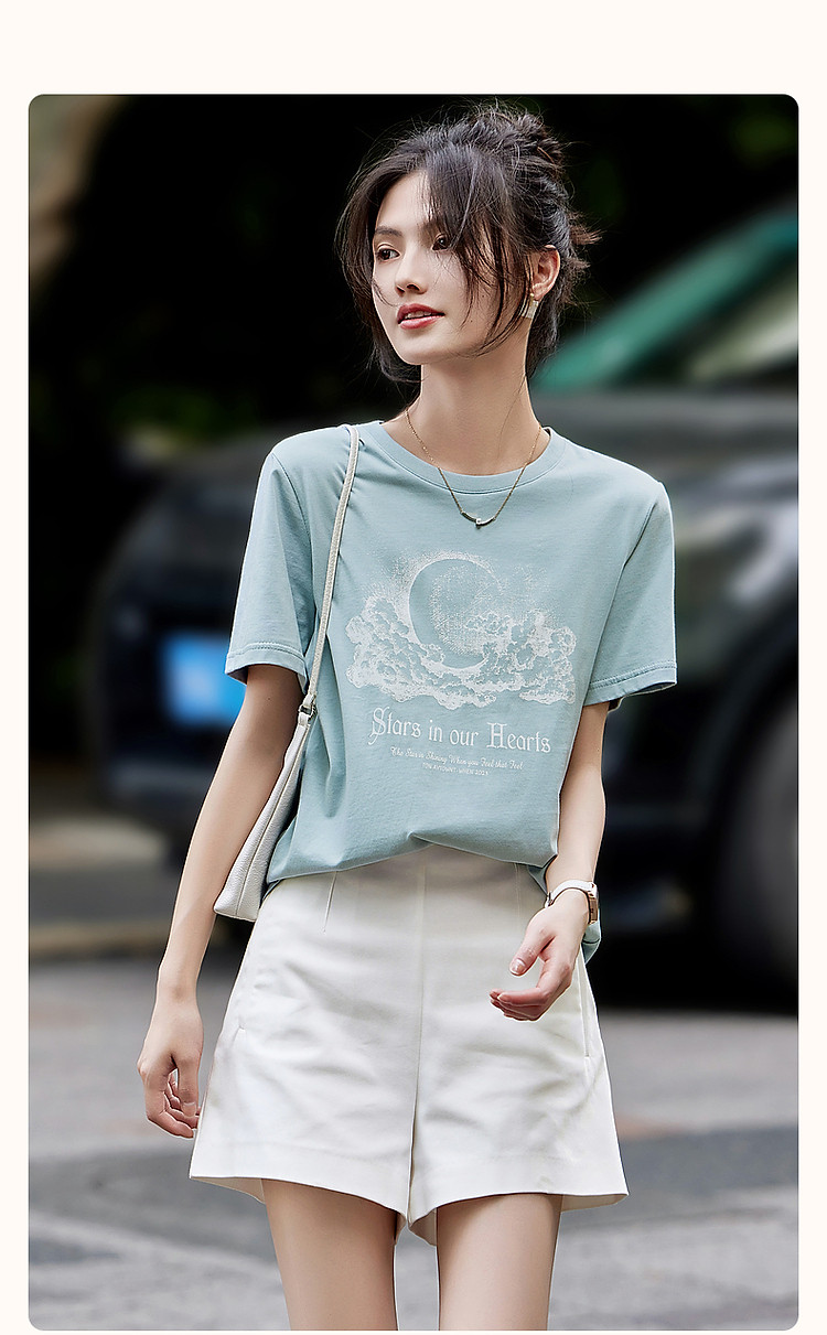 商品名称:【月亮也晚安】夏云肉感纯棉印花舒适遮肉高频好搭短袖女式t恤 574273