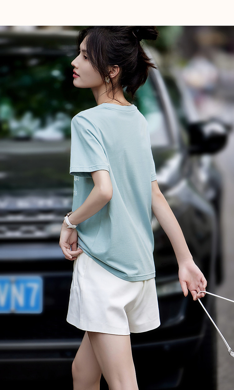 【女装】纯棉短袖t恤女士T恤宽松透气夏季薄款半袖纯色女式上衣 232339