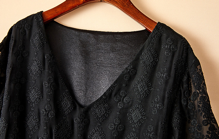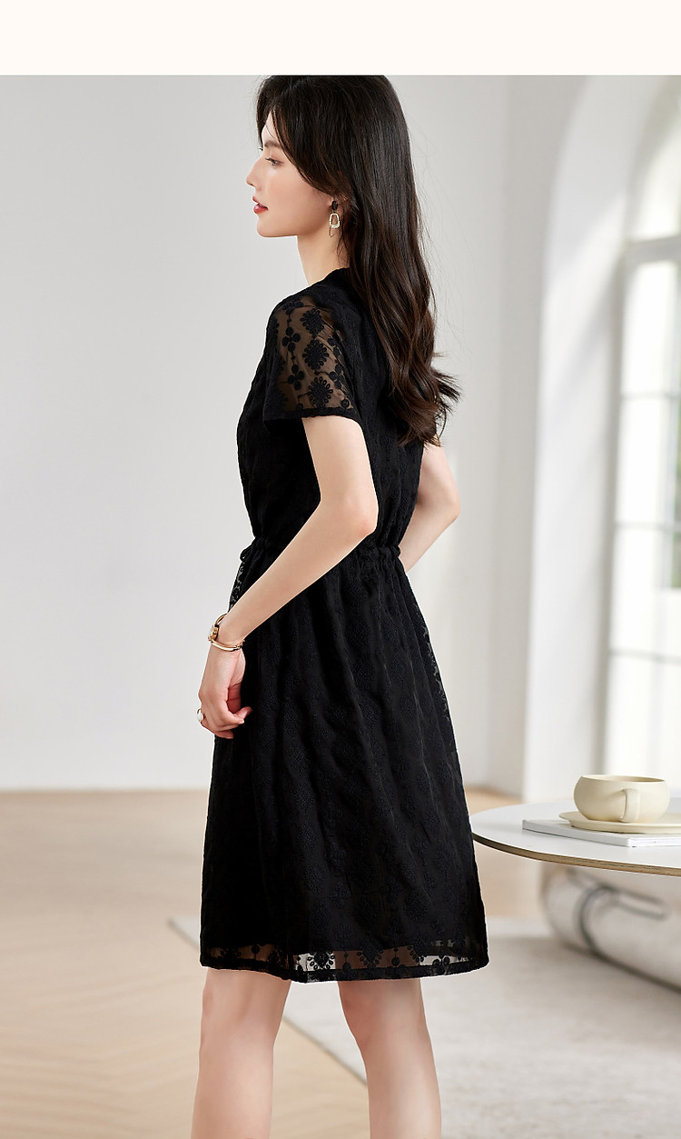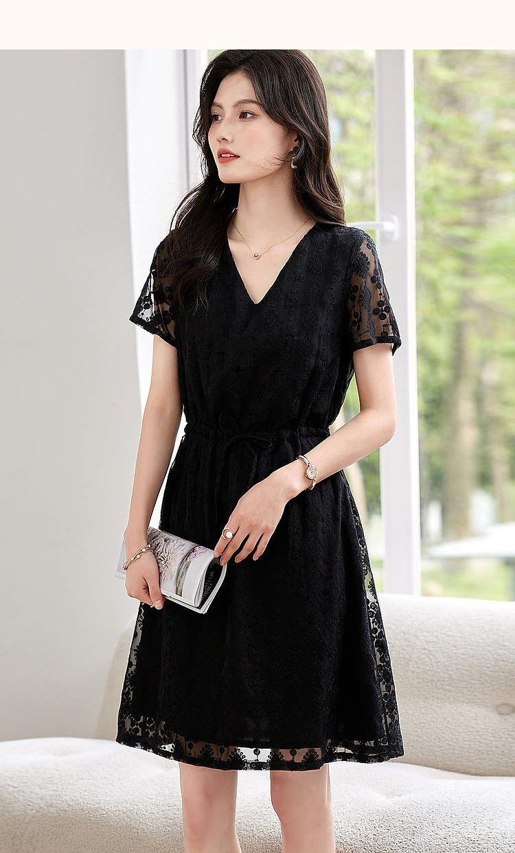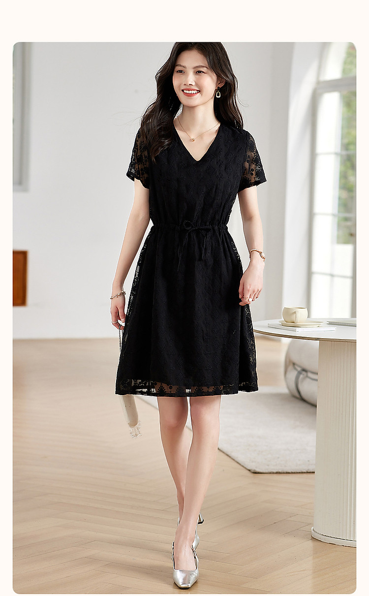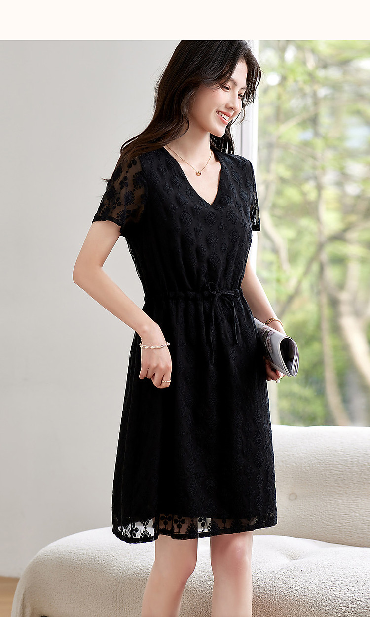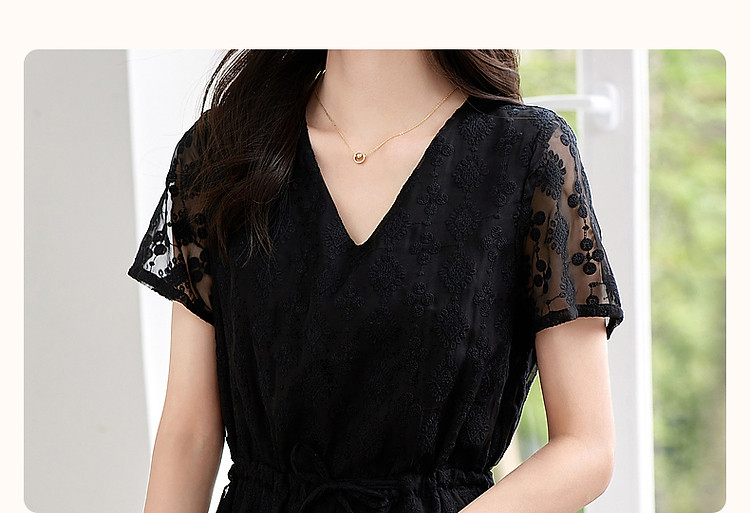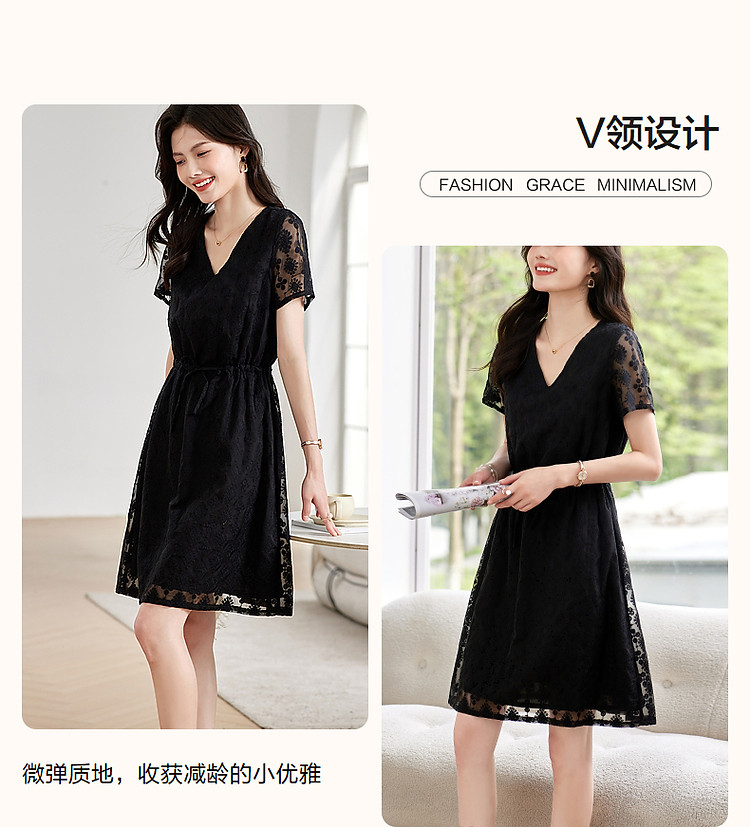商品名称:【重工刺绣仙女裙】夏优雅风V领舒适藏肉短袖连衣裙女中长款 209857