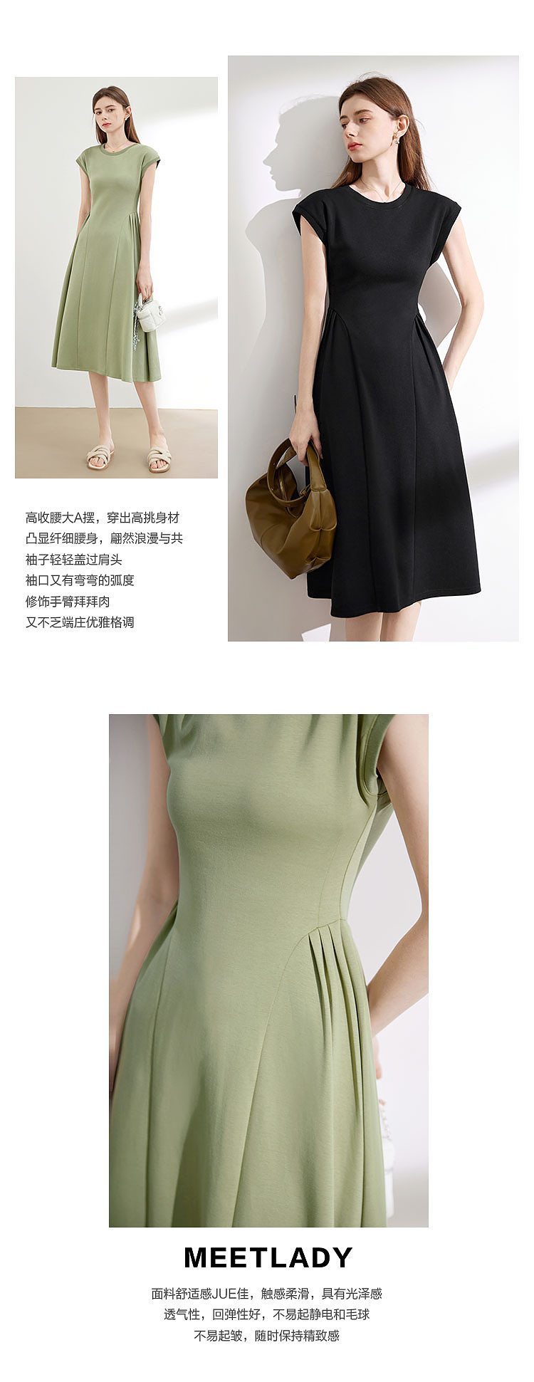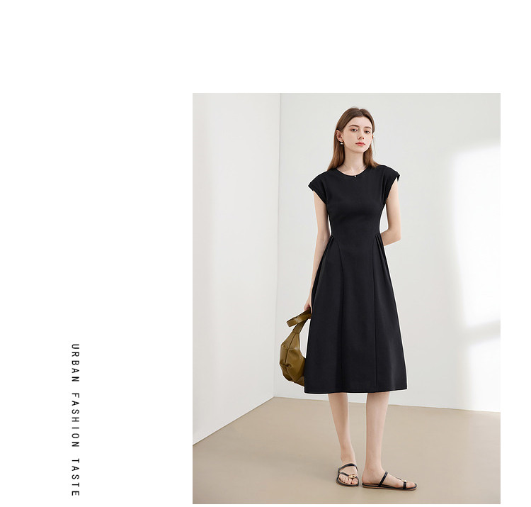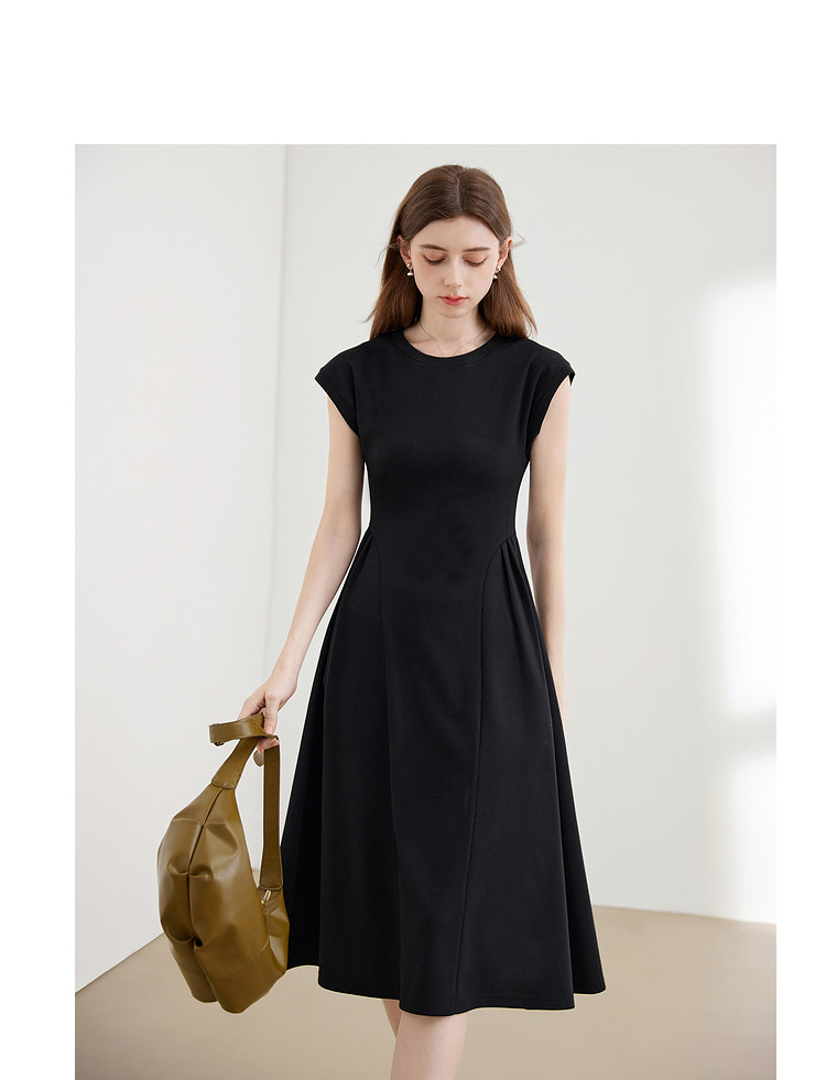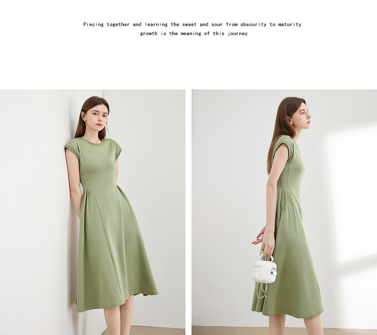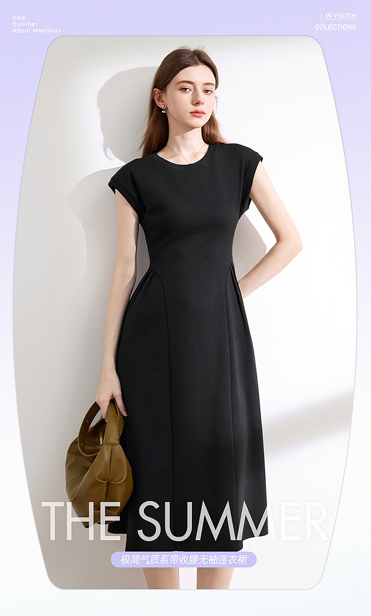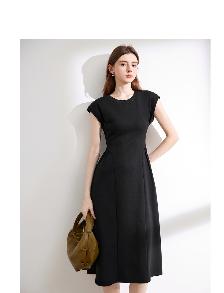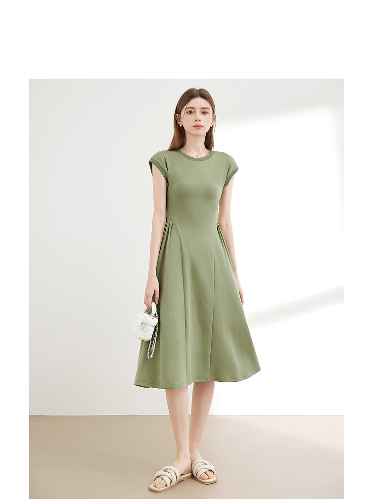 商品名称:【2024夏季】气质通勤薄款针织连衣T恤裙女圆领收腰裙子 963604